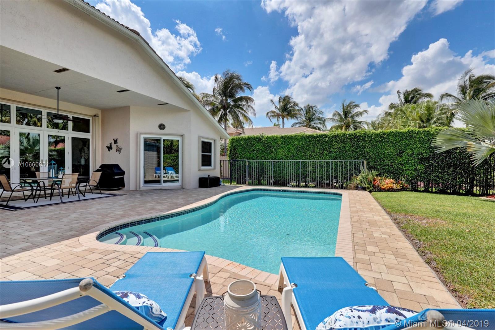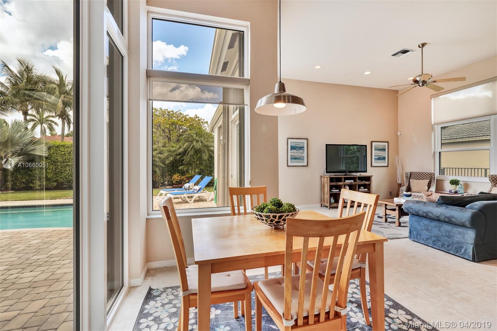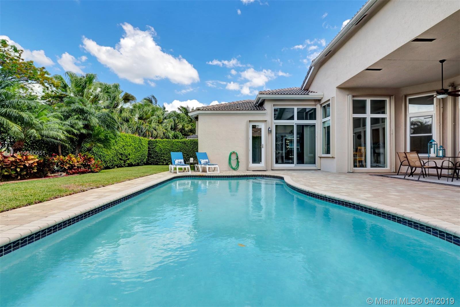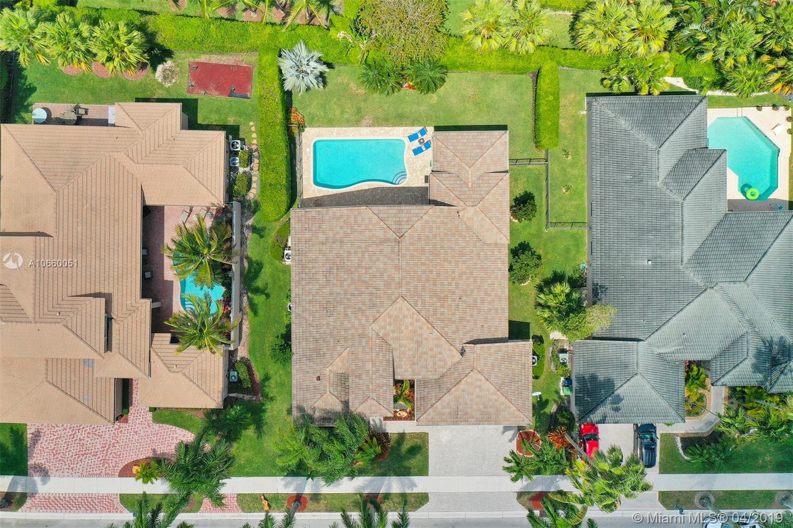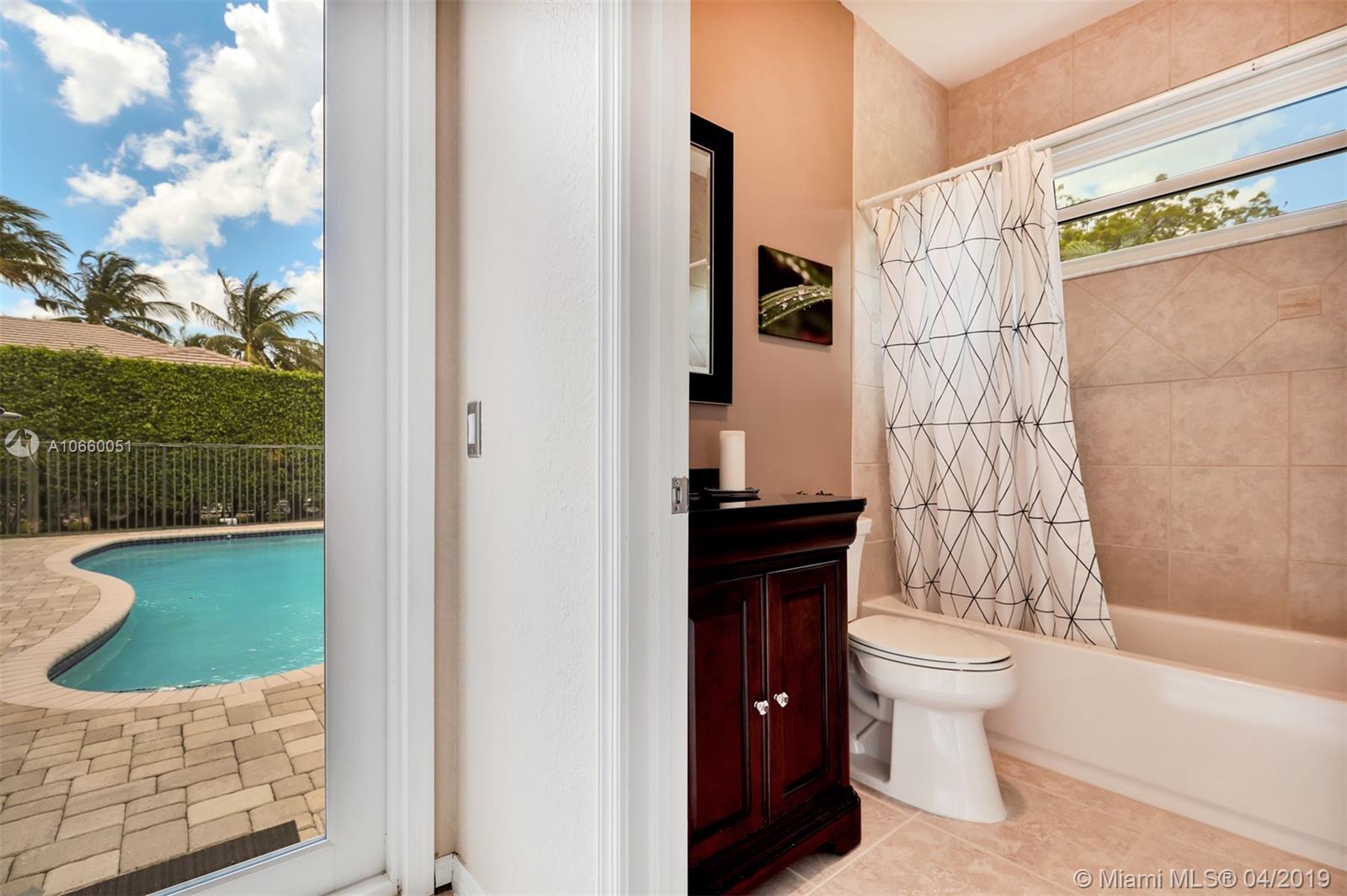 Custom built 3-way split floor plan offers 5BR/4BA/3-car garage. Brick paver driveway and entryway. PGT Premiere Vinyl Impact glass window and doors with Low-E glass (2015) plus accordion shutters. Freshly painted interior and exterior (2019), Ceramic tile floors in social areas; engineered wood flooring in MBR and one bedroom and laminate floors in 3 bedrooms. Newer stainless steel kitchen appliances, wood cabinetry and granite counters. Very private backyard, saline chlorinated (2018) and heated (2014) pool, diamond brited (2013). Newer 2-zone A/C (2015).