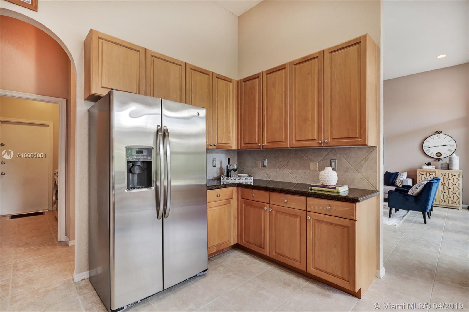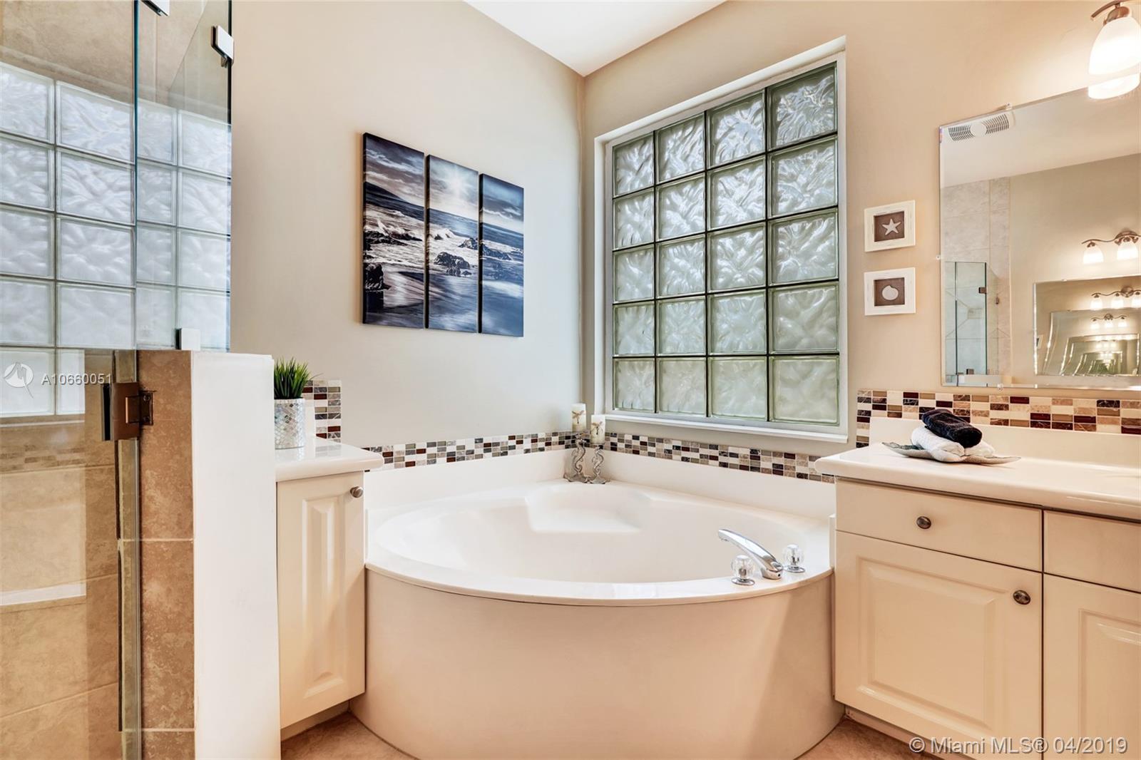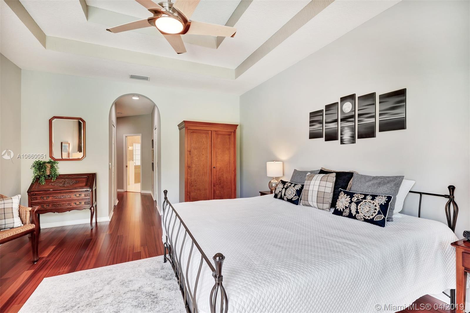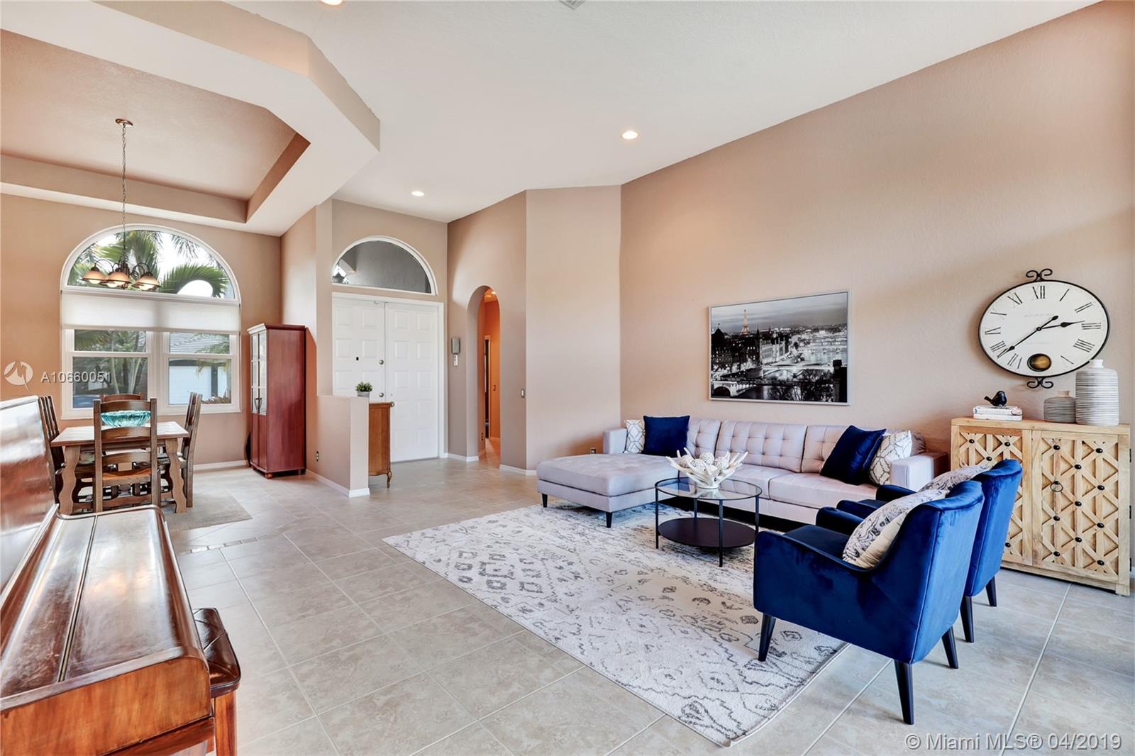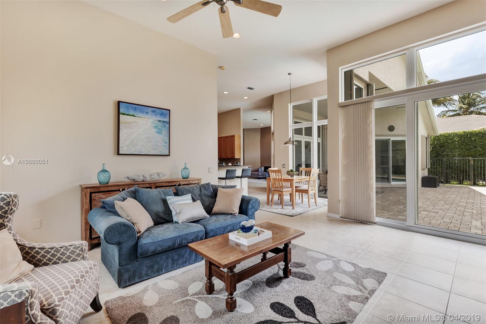 Custom built 3-way split floor plan offers 5BR/4BA/3-car garage. Brick paver driveway and entryway. PGT Premiere Vinyl Impact glass window and doors with Low-E glass (2015) plus accordion shutters. Freshly painted interior and exterior (2019), Ceramic tile floors in social areas; engineered wood flooring in MBR and one bedroom and laminate floors in 3 bedrooms. Newer stainless steel kitchen appliances, wood cabinetry and granite counters. Very private backyard, saline chlorinated (2018) and heated (2014) pool, diamond brited (2013). Newer 2-zone A/C (2015).