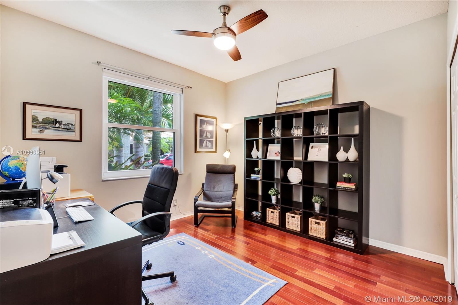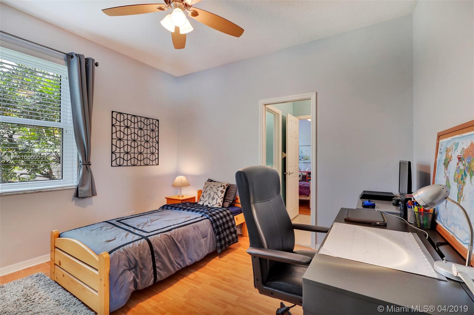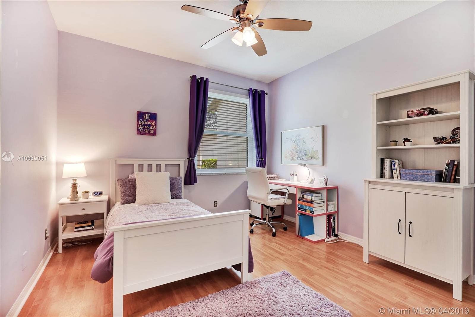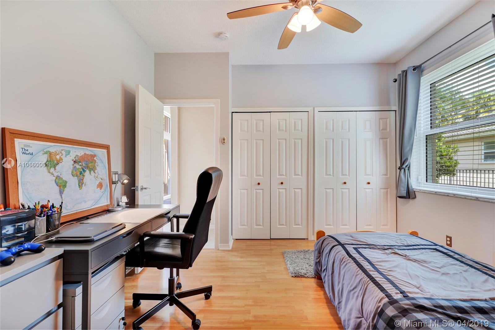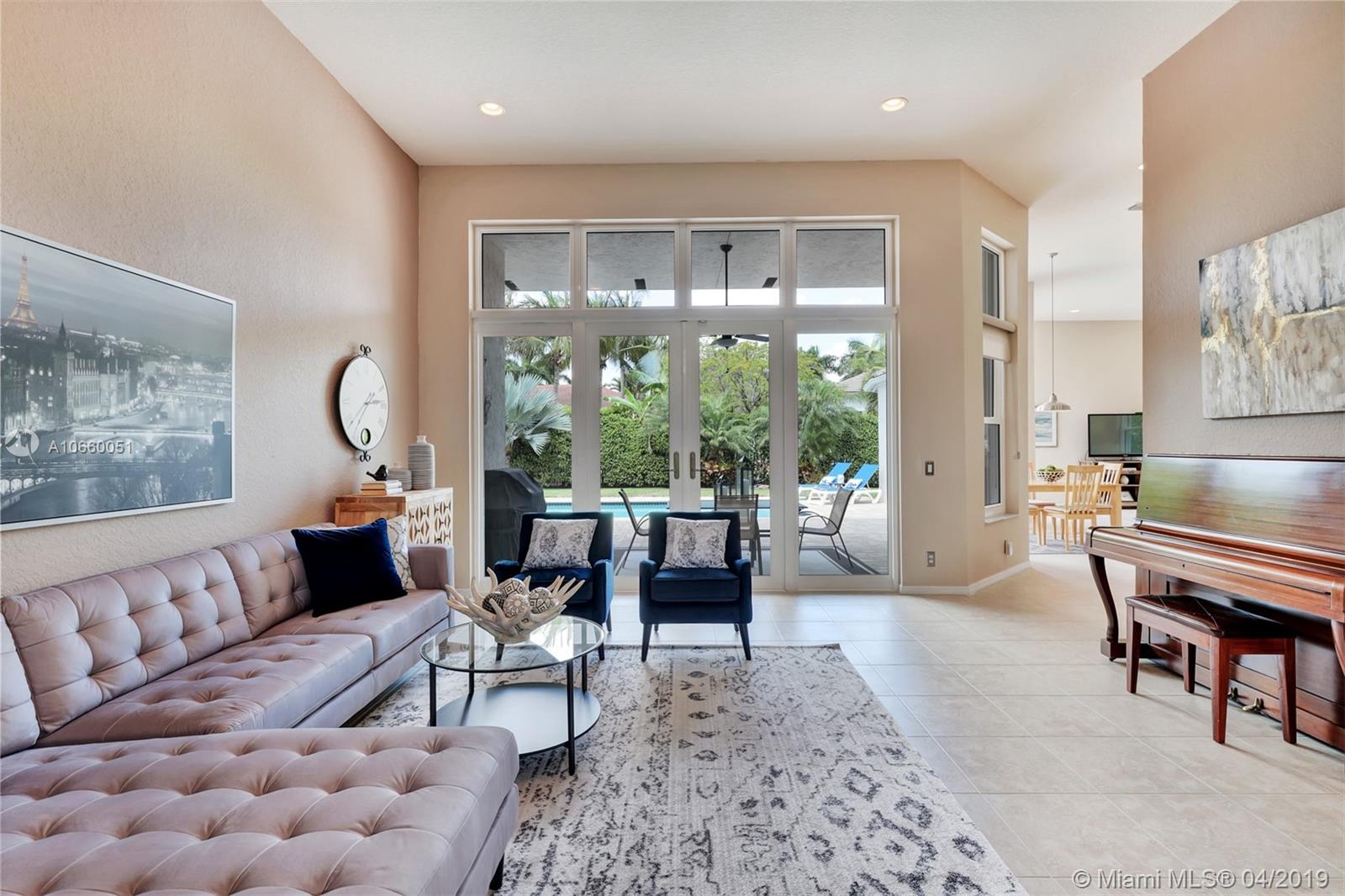 Custom built 3-way split floor plan offers 5BR/4BA/3-car garage. Brick paver driveway and entryway. PGT Premiere Vinyl Impact glass window and doors with Low-E glass (2015) plus accordion shutters. Freshly painted interior and exterior (2019), Ceramic tile floors in social areas; engineered wood flooring in MBR and one bedroom and laminate floors in 3 bedrooms. Newer stainless steel kitchen appliances, wood cabinetry and granite counters. Very private backyard, saline chlorinated (2018) and heated (2014) pool, diamond brited (2013). Newer 2-zone A/C (2015).
