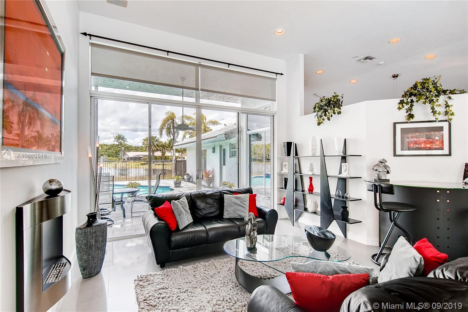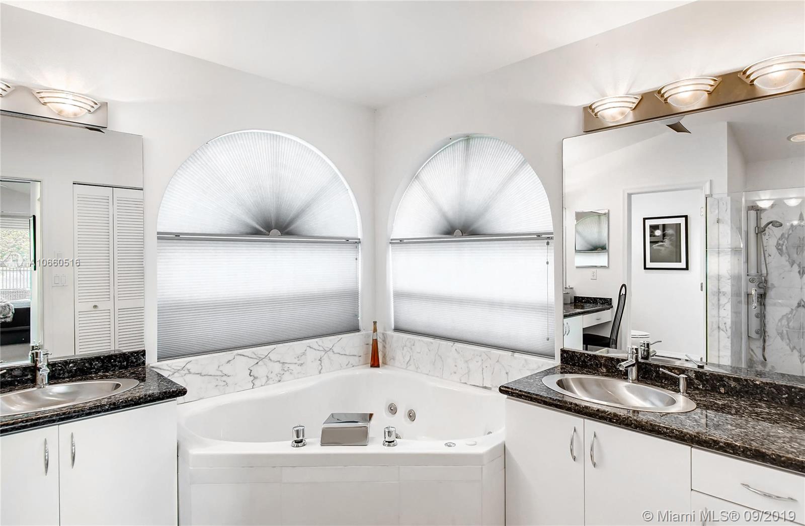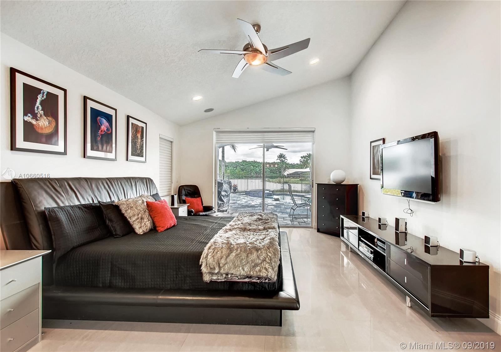 LUXURIOUS WESTON WIDEST (Sunset) LAKE VIEW HOME: ORCHID ISLAND w/community tennis, basketball & playground. Cul-de-sac, exotic landscaping, marble pavers front & back. 18" glass-like Porcelain tiles throughout, granite tops, marble master bath, stainless steel sinks & appliances. ROOF: 2007. Stone entertainment wall, 71' TV surround sound, music, intercom throughout. Each window & door alarmed + motion, fire & smoke sensors. Huge side yard, 16,101 sq. ft. Pie-shaped lot. Waterfall pool faces directly west for year-round sunsets. Large Jacuzzi tub in Master, single Jacuzzi in the second bathroom. Toilets are all Kohler & separated by doors for privacy. All closets have systems. TURNKEY.