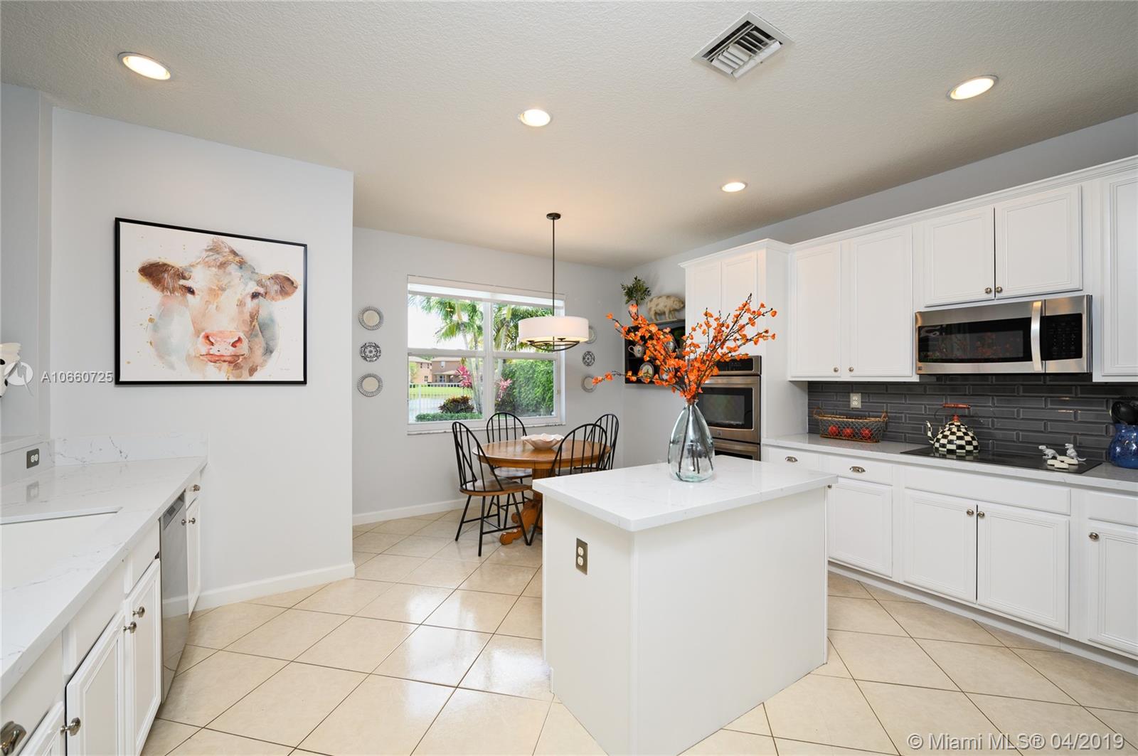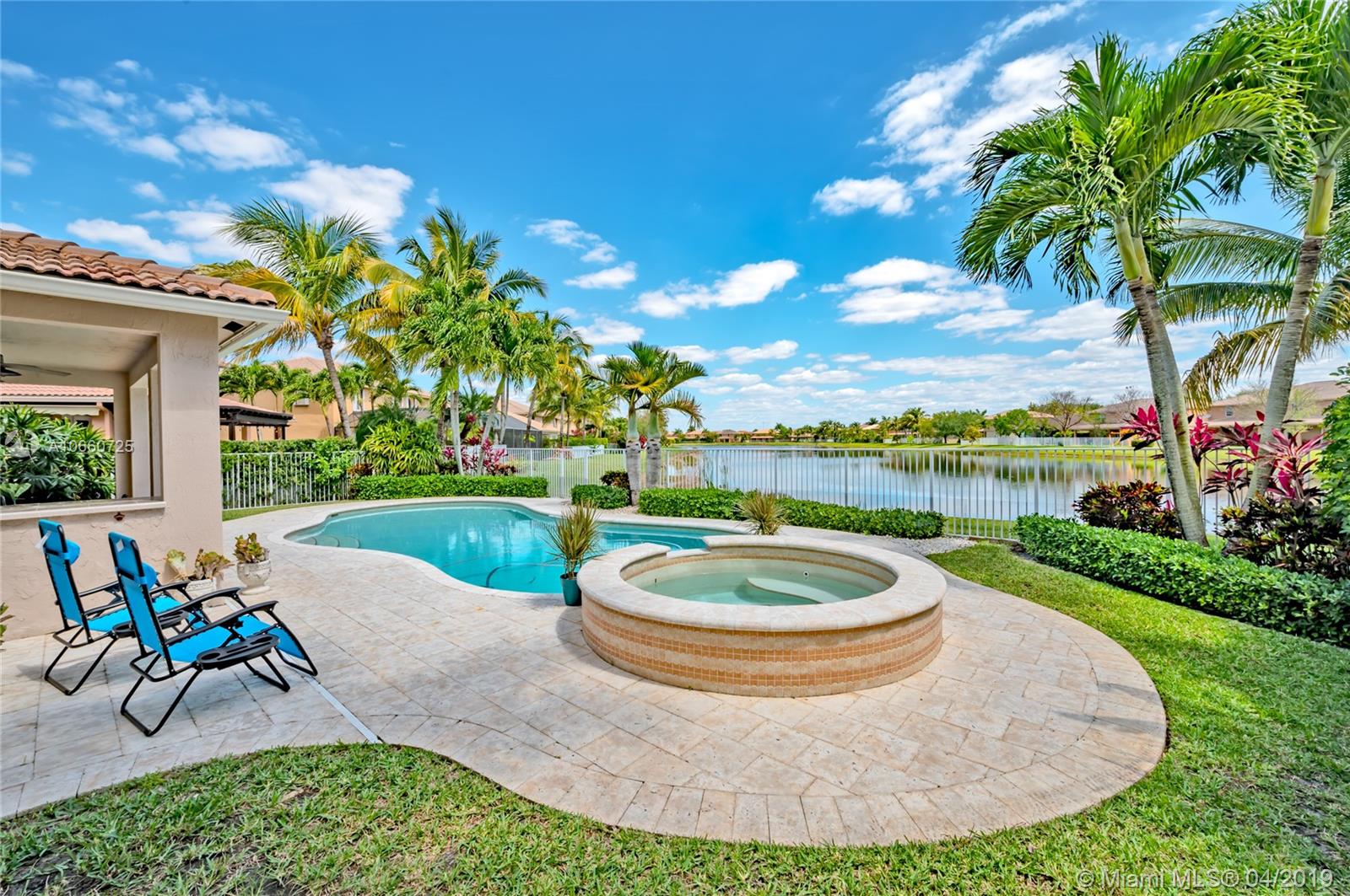 New on the market. Beautiful Hibiscus model home located in the exclusive community of Isles at Weston, located in the prestigious City of Weston. With some of the nation's top schools and the regional park only moments away. This amazing home has 5 bedrooms and 3 full bathrooms with 3 car garages with an amazing large 18x38 pool & spa. This home sits in the widest and best part of the lake and has accordion shutters throughout. This home has a formal dining and living room, while the kitchen has been recently renovated with gorgeous and modern counter tops and SS appliances with a large pantry and eat in café nook. There is a convenient guest suite downstairs with a full bathroom, while the master suite is very spacious and has overlooking views to the lake.
