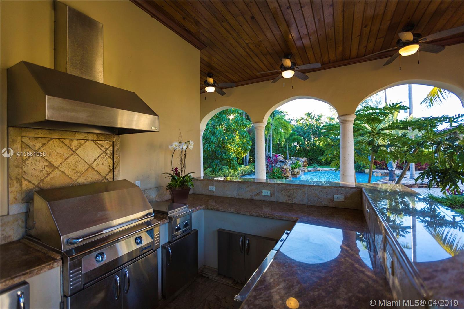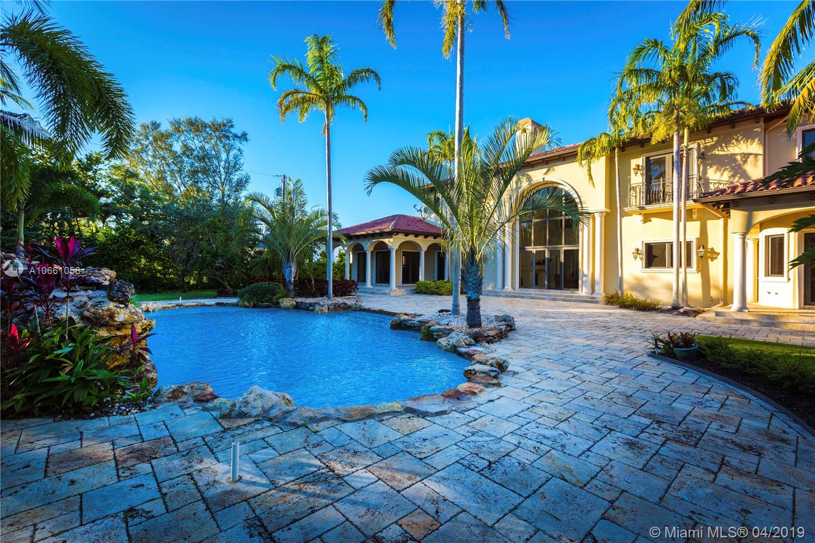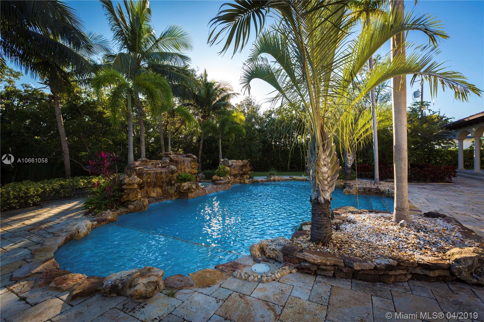 Impressive deep northern buildable acre exposure on quiet street In Pinecrest. 6-bed 8.5-bath + media/ library, Chicago brick driveway, 3 car garage and entire compound gated. Home protected by impact windows/doors, camera system, and generator. Stately foyer and living area with 25ft ceilings, grand staircase, marble & wood floors, fireplace, and an impressive chef kitchen equipt with high end appliances and gas. Oversized 1,250sqft master on first floor with steam shower/jaccuzzi spa and sitting area. Incredible outdoor entertaining boasting a heated 22x47 salt water pool, 3 waterfalls and large gazebo complete w/ summer kitchen and full bath. Take the day off and come see for yourself, THIS IS THE ONE!