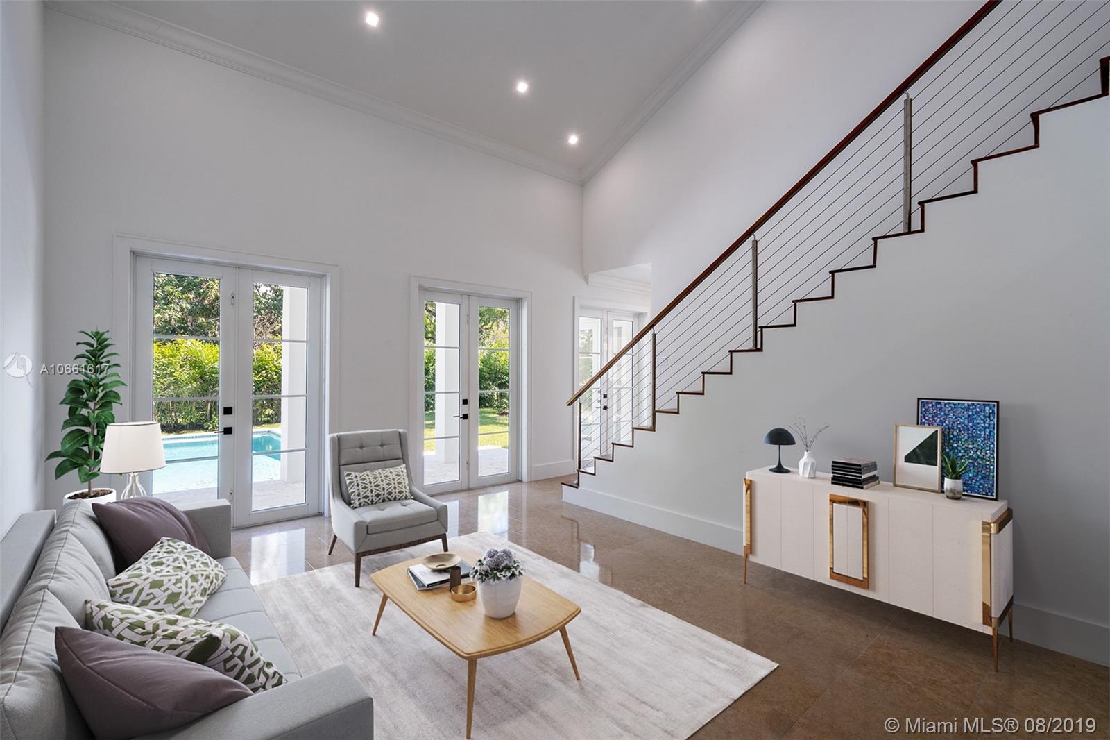 Built in 2005 but feels like new. Check out this beautiful home in South Gables with high ceilings on first and second floor, impact windows and doors, lots of natural light. Large and open living spaces. As you walk in you will find the formal dining, formal living and big office with full bathroom which could easily be converted into a comfortable bedroom. Gorgeous kitchen opens to family room, laundry area and nanny's bedroom & bathroom. This home has master suite upstairs with 3 other bedrooms. High end finishes throughout. Located on a very quiet street. This is the perfect home. Very easy to show.