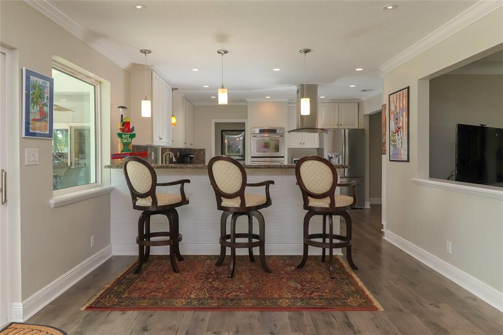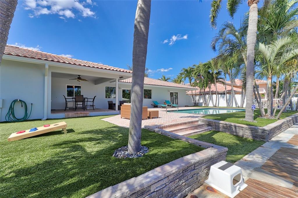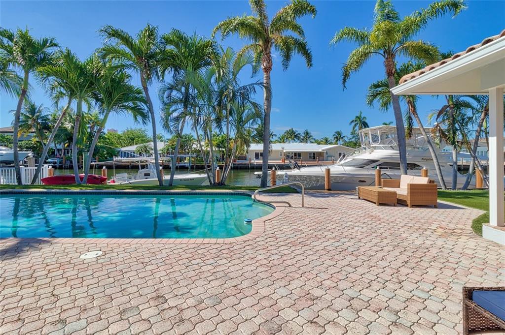 PARADISE FOUND! This 100 foot lot (no wake zone/no fixed bridges) on a wide canal, with a new 90 ft dock with updated electric. Located in the very desirable Bayview school district, this home has been extensively remodeled with the following updates made within the last few years: Back yard re-done with sports turf for carefree maintenance (drip system for palm trees), retaining wall installed, new floors in most rooms, new paint inside (with modern new doors, baseboards and beautiful crown molding) and outside (with new gutters), new impact windows and doors throughout, recessed lighting in most rooms, silhouette blinds on all windows, vinyl fencing, salt water pool, and professionally landscaped yard, extra large garage. 3,000+/- sq ft under roof. Come make this house your home...