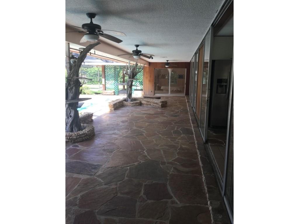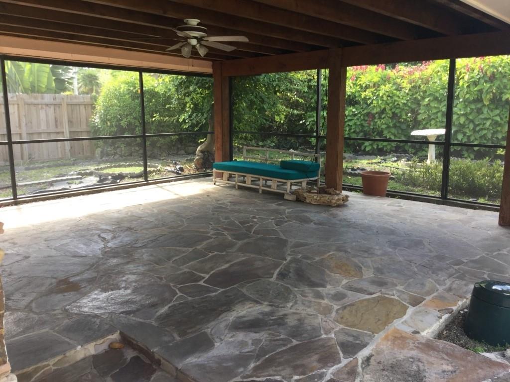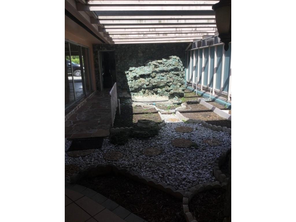 Custom home with large screened front garden, impressive waterfalls, automatic gate, stone accented front of house/garden/waterfall, mature landscaping and more. Unique design allows for free flowing air from the front garden, through the house, and into the patio pool providing an open air environment many months of the year, and results in reduced need for air conditioning. Must see to appreciate. A needed kitchen remodel, repairs, new paint, and buyer updates will result in another showcase home in sought after Pinecrest; price reflects as is condition.