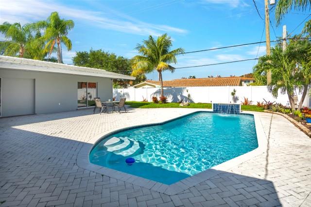 Beautiful 3 bed 2 bath corner lot with a large pool. This home has been updated with new kitchen cabinets, quartz countertops and all new tile floors. All new appliances. Remodeled baths. Very open living/kitchen space overlooking a large back yard and inviting pool with waterfall. Great home for entertaining with a complete private fenced yard. Centrally located and close to downtown Ft. Lauderdale, beach, shopping and dining.