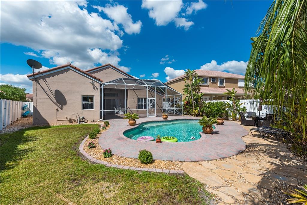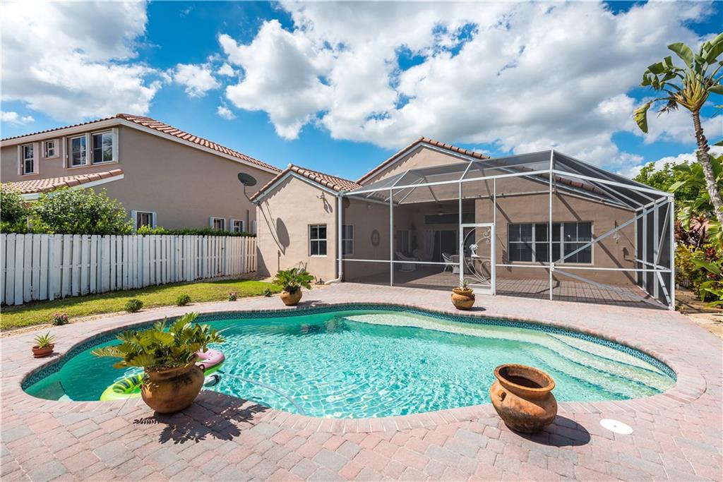Brand New Barrel Tile Roof less than 9 months old. This home has a tropical paradise vibe that has been meticulous cared for and well upgraded. Step in backyard to a spacious screened in patio perfect for entertaining & bbqs. As you enter the pool area along the brick pavers you are surrounded by lush landscaping, privacy fence, sitting areas, green grass, and a custom pool that has several seating areas for taking it all in. The interior of the home was remodeled in Kitchen with granite tops & wood cabinetry. Modern floors were recently added as well as interior paint. Master and Kitchen showcase plantation shutters for the extra touch. California closets in all bedrooms, Pool motor less than 2 years old, Washer/dryer new, AC less than 5 years. A+schools. Walk to elementary & parks.