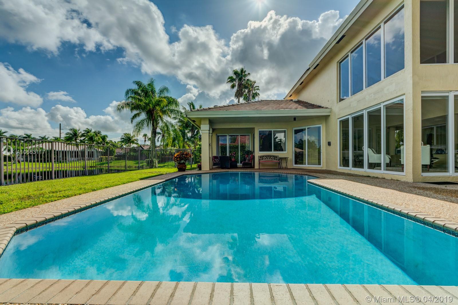 Masterfully renovated lakefront home in a gated community in Weston. This property sits on a private cul-de-sac lot and boasts 4 bedrooms, 3 full and 1 half bath plus a study with over 3,600 sq ft. f living space. Formal dining area and living room with double-volume ceilings, large family room with cozy fireplace and gourmet kitchen with casual dining area and breakfast bar. Kitchen features include custom 42" cherrywood Thomasville cabinets, granite countertops, and stainless steel appliances. Master bedroom located on the second floor with en-suite luxury bath with dual sinks, frameless shower & whirlpool soaking tub. All living areas have high impact windows and doors and all social areas have marble flooring. Additional features include a pool and covered patio. A+ Schools.