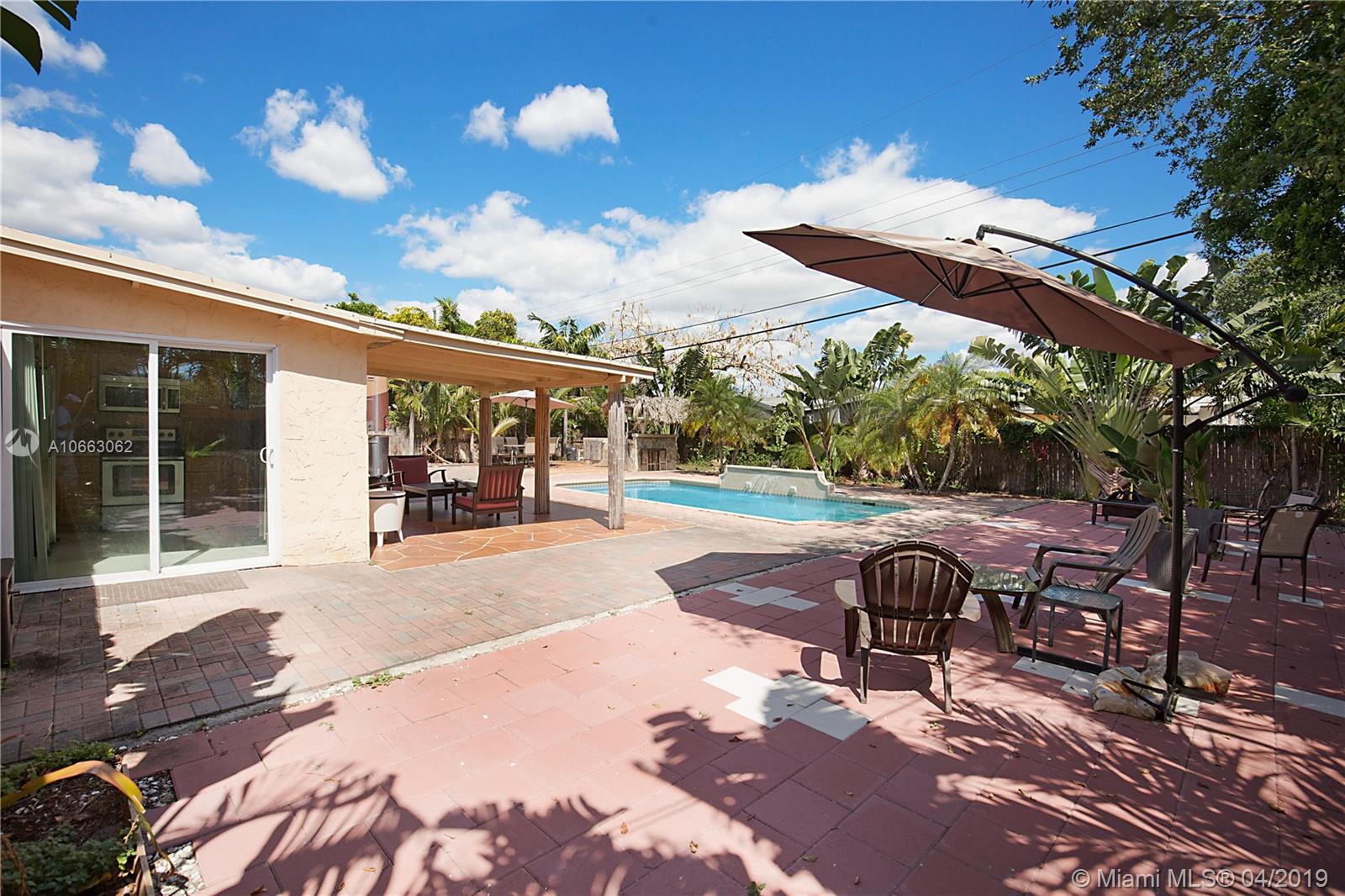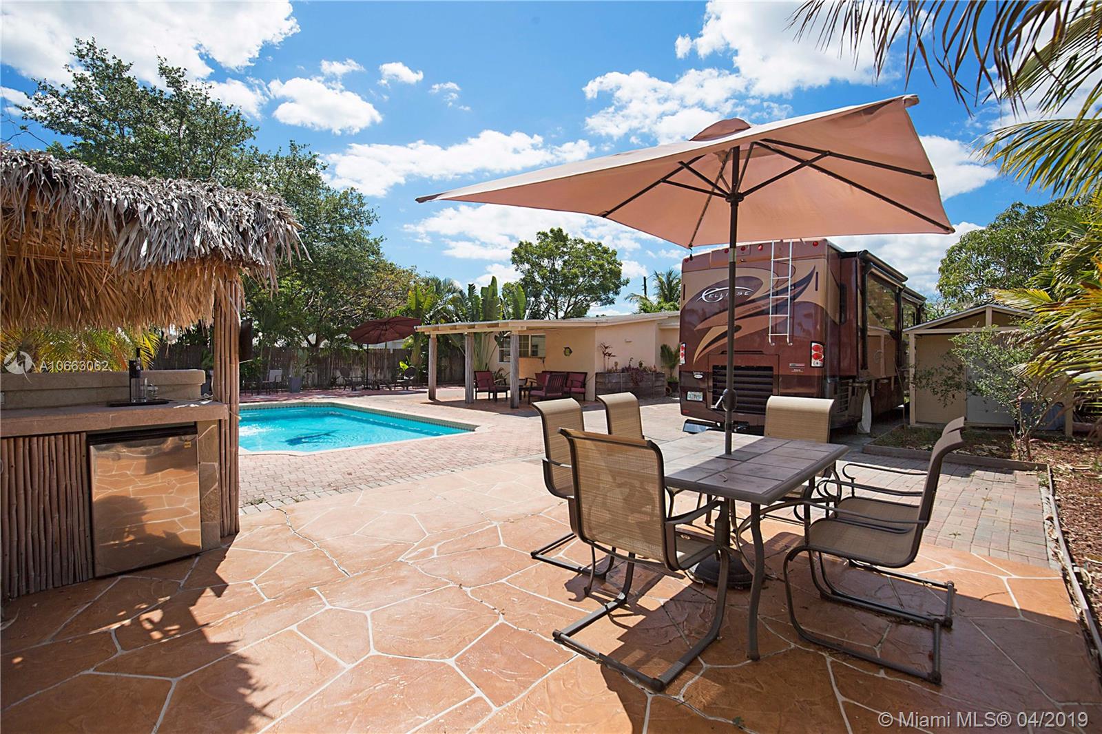 Hidden Gem in Pompano Beach & is located just over a mile from the beach! This home features 3 Bedrooms/ 3 Bathrooms. The front yard has an expanded front driveway. Wide side gate opens to fit a LARGE RV/Boat! Interior features Family room & spacious dining area. Split floor plan. Two master bedrooms w/ baths attached. 1st Master Bedroom features walk-in closet w/ built-ins. Kitchen is tastefully remodeled w/ newer appliances & wine refrigerator. Your outdoor space is private & makes you feel as if your on vacation! Fully Fenced. Salt water pool. Built in Tiki bar with BBQ, smoker, charcoal oven, kegerator for beer on tap, and plumbed sink. Shed/workshop w/ A/C & electric. Home automation/security system. Updated Electric. New WH. 2-Mounted TV'S stay! Video tour available upon request!