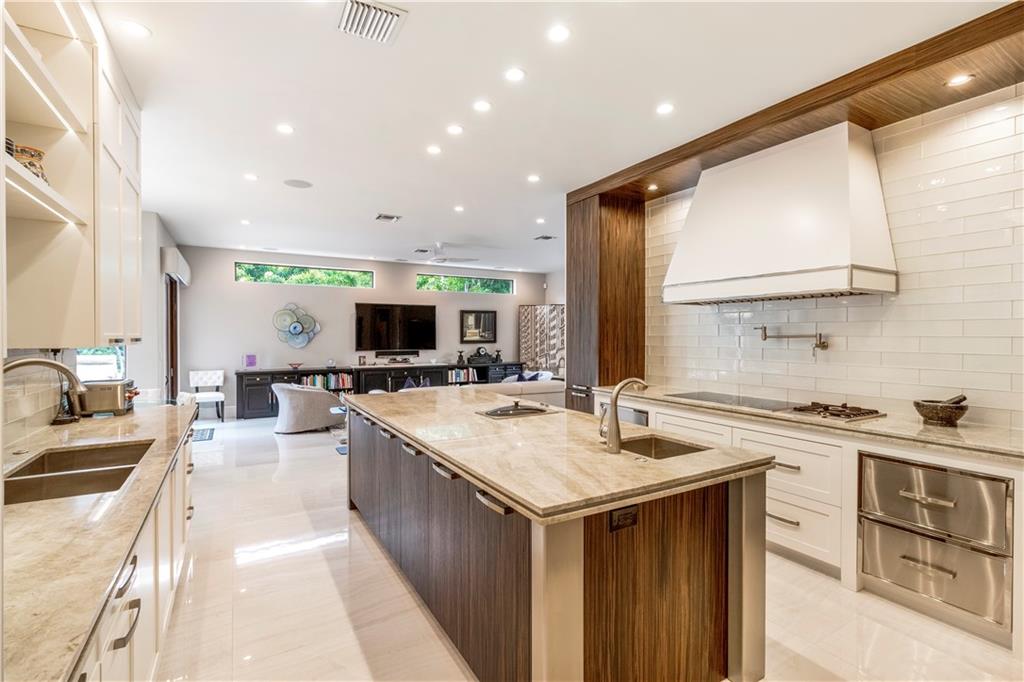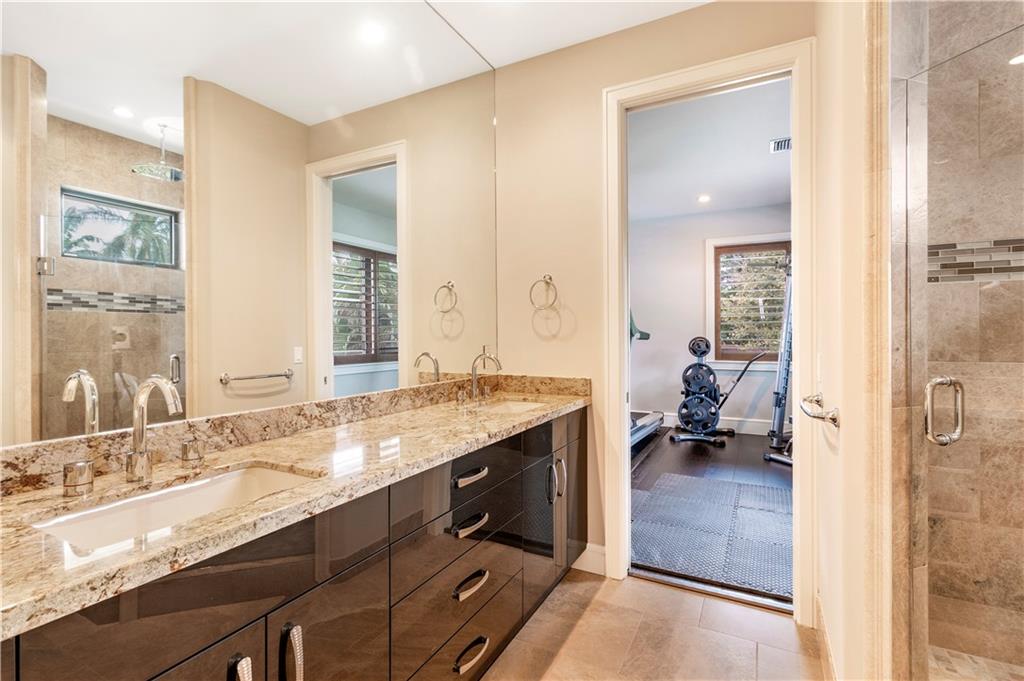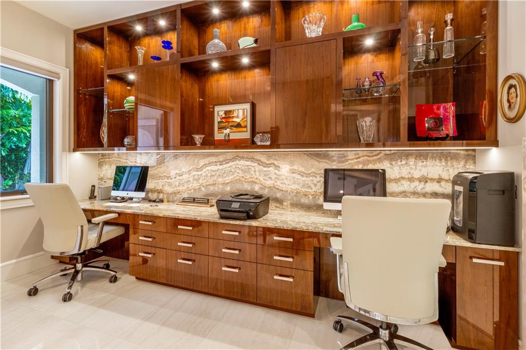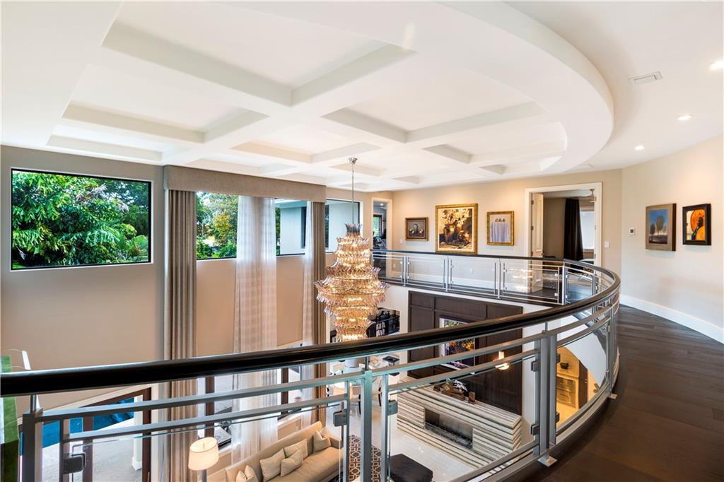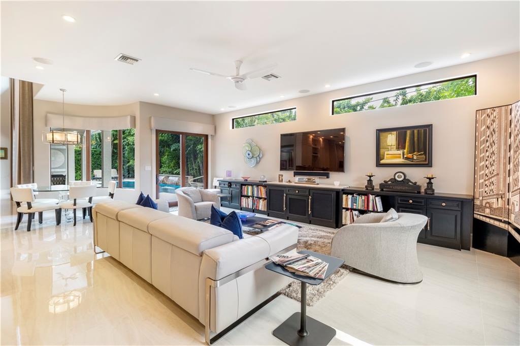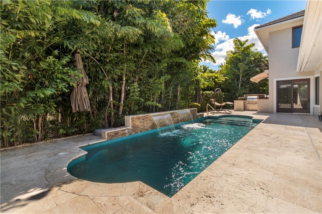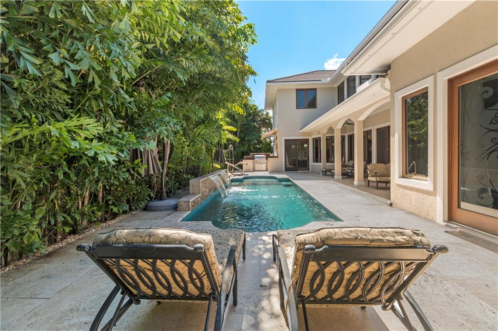 Prepare to live a life of sophisticated luxury in an oasis of serenity. Modern design, a luminous open floor plan & soaring ceilings contribute to the luxurious allure of this highly detailed residence. Situated in the subdivision of Coral Ridge & surrounded by lush mature landscaping for ultimate privacy. The tropical lifestyle is enhanced by multiple doorways integrating indoor & outdoor living spaces. The covered loggia overlooks the heated salt water pool with cascading fountains & custom summer kitchen. The center of the home evolves around a custom culinary kitchen that opens to a large family room. The 1st floor master suite & lavish bathroom provide the ultimate retreat. Custom office, formal dining rm, butler's pantry, sound system throughout, full home generator. Sq ft from IMAPP