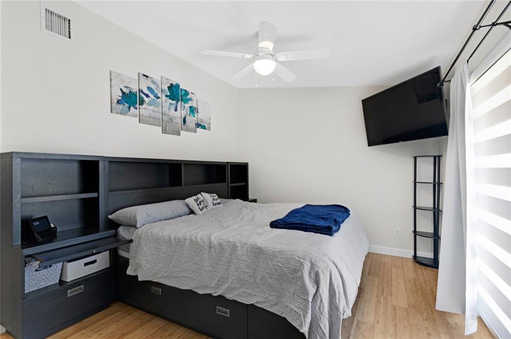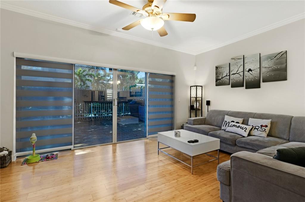 One of Victoria Park's best located and best priced townhouse listings. Steps to Dining, Shopping, and entertainment while having the peace and security of a gated community. Tastefully updated with sustainable bamboo flooring, new appliances, smart house features and luxury window treatments, this home is located in a small, self managed, stable complex with low HOA dues. Open concept first floor living area with a private pavered patio for enjoying the Florida sunshine, two suites upstairs. Impact windows upstairs and panels on the first level. Protection for all windows. Gated community with call box and parking for two cars. HOA includes grounds keeping and the metal roof. Close to beautiful Fort Lauderdale Beach and downtown.