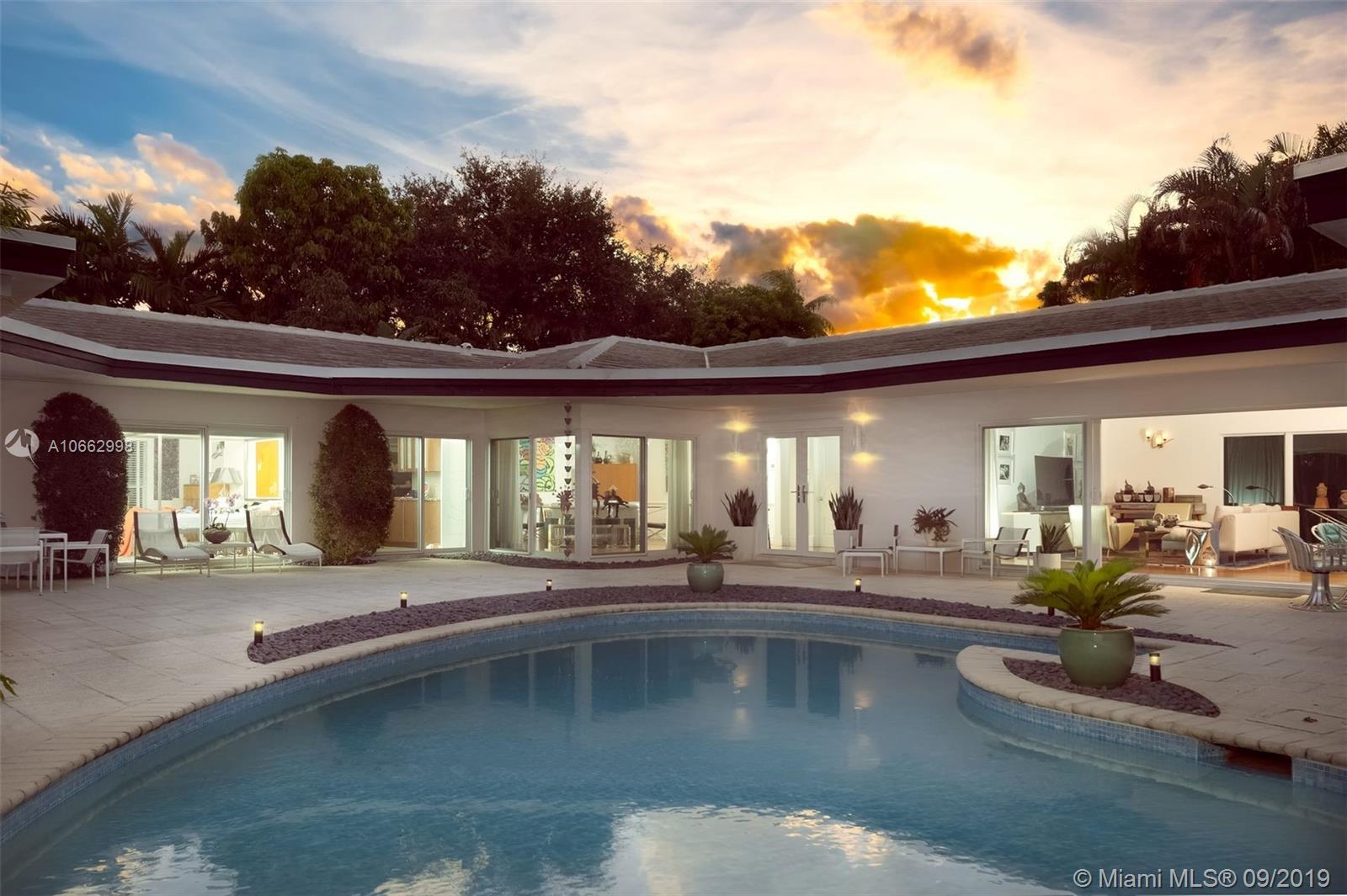 MID CENTURY MODERN 4 BD 5.5 BTH. FEATURED IN ELLE DÉCOR FOR ITS CLEAN ARCHITECTUAL LINES & INTEGRATION WITH NATURE, MOST INTERIOR ROOMS HAVE VIEWS & ACCESS TO COURTYARD BRINGING THE OUTDOORS IN. DOUBLE SIZED LIV RM & DIN RM FOR GRACIOUS ENTERTAINING. BIG EAT-IN KITCHEN WITH CATERING KITCHEN AND NEW APPLIANCES. ALL BEDROOMS WITH ENSUITE BATHS. 2 CAR GARAGE, POOL AREA HAS 2 CHANGING ROOMS & FULL BATH + COVERED ENTERTAINING AREA. ROSEWOOD FLOORS, NEWER ROOF, IMPACT WINDOWS, ALARM SYSTEM. TRUE SOUTH FLORDIA LIVING WITH A PALM SPRINGS AESTHETIC. ARCHITECT IS MARCUS J. PINSKER.