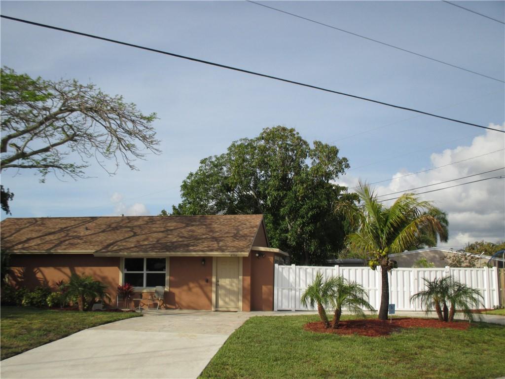 Wow! 2012 Fully Permitted Re-Construction from the Slab and Brick Walls Up. All new-ish systems at 7 yrs old. Nu... Roof, Trusts, Insulation Drywall Plumbing, 200 AMP Electrical, IMPACT Windows, 2" x 8" Facia Boards, Upgraded Int. Trim, AC system. This 3/2 is the only one in Crest Haven with 8' to 12' VAULTED Ceilings thru-out home. 24" Tile laid on the diagonal thru-out, 5.5" Base Boards, 6 Panel Doors Nu Kitchen Cabinets Granite Counters in Kit. & Bathrooms SS Appliances, Stack-able Washer Dryer. For the Exterior: Corner w/ Lot Circular Drive RV Parking Magnificent Royal Poinciana Shade Tree Fully mature Mango Tree Fenced-in Back Yard Landscaped Bedding w/ Beautiful Foliage. This home has the WOW Factor & will impress your most particular Buyer(s). Move in condition today! No HOA Fees.