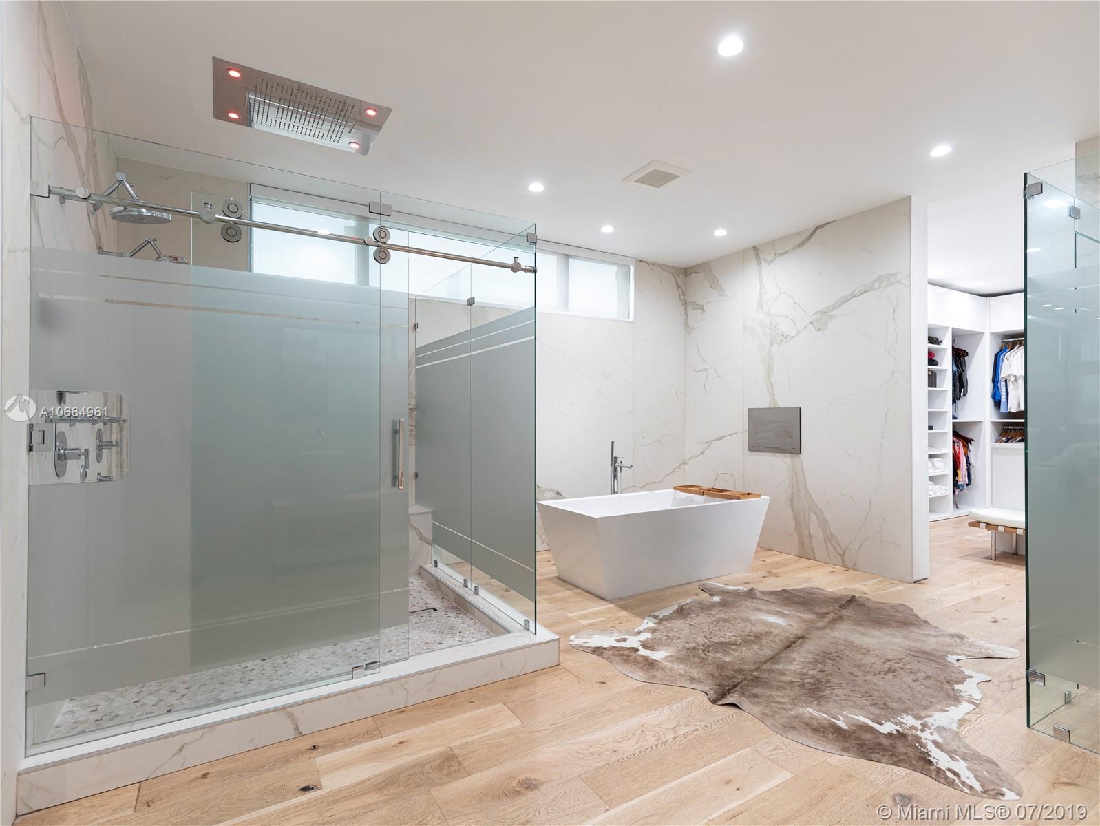 Situated in one of Coral Gables most privileged locations, this ultra-modern home is designed by Calil Architects, Coral Gables premier modern home architects. Comprised of 3 levels & feat. stunning Biscay Bay views from its unique 800 sq ft. approved rooftop loft. This home is equipped with floor-to-ceiling impact sliding doors that span across the width of the house. High ceilings, white glass floors, impact windows & doors, glass elevator, heated pool, full gourmet kitchens, entertainment area with fire pit, 80x13.5 ft dock with space for a 100 ft boat complete this modern residence. Roof loft is being enclosed by 1 inch glass railings. Sq ft includes possible bonus room, ideal for guest/maids quarters with added game room (1,200 sq ft). Home is scheduled to be completed in 2019.