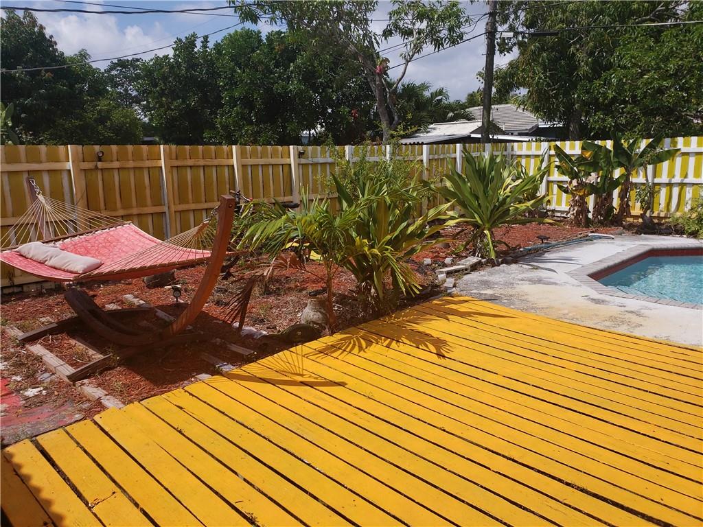 Convenient to Wilton Manors, Downtown and Beach. Screened front porch and double decked pool area allow for year round indoor/outdoor relaxation and entertainment. Tall fence around entire property provides added privacy and security. Minimal maintenance landscaping. Instant Hot Water. Solar powered exterior lighting and gate. Master bath jacuzzi. New Roof and HVAC 2017.