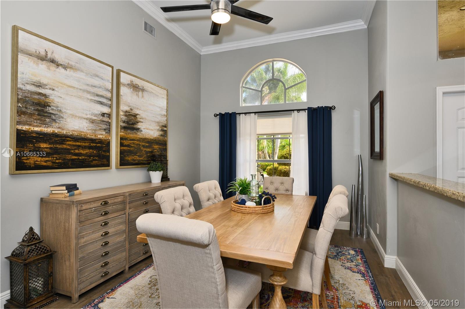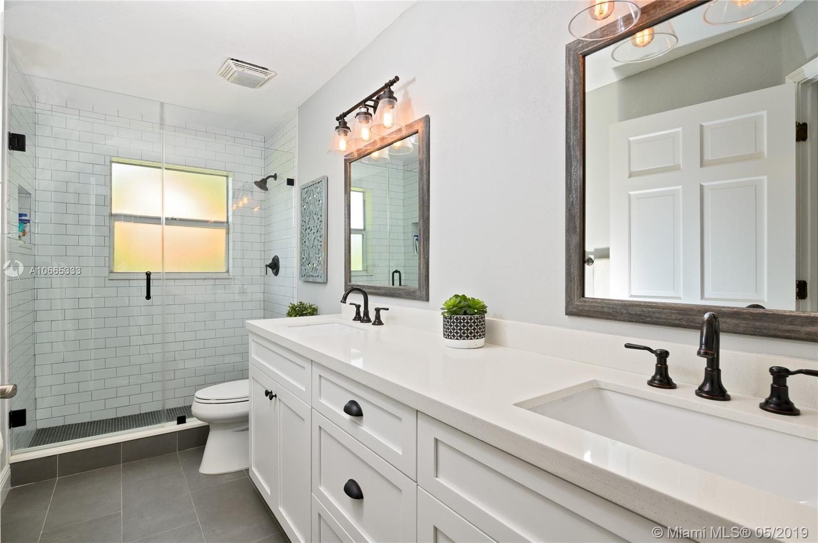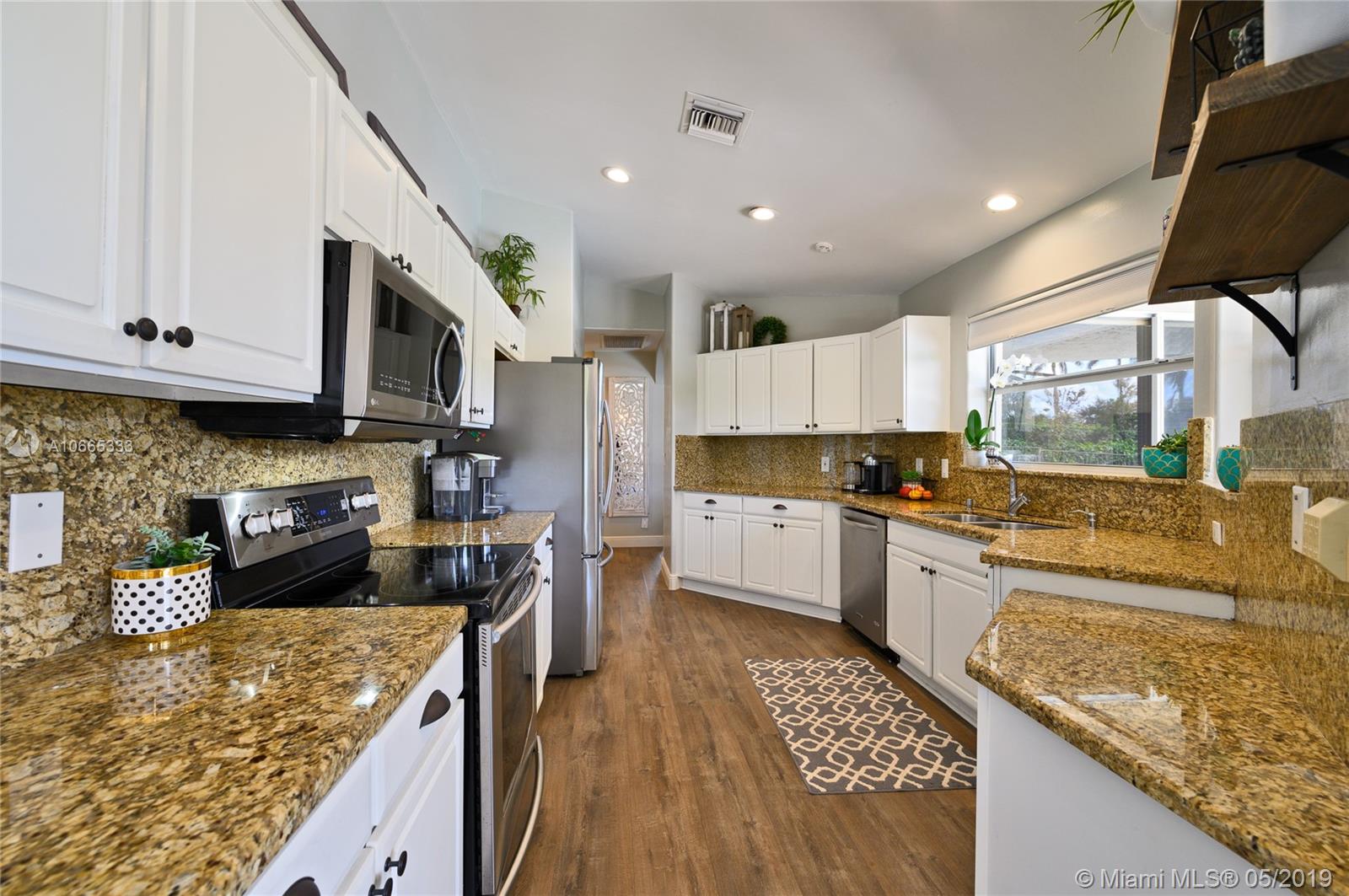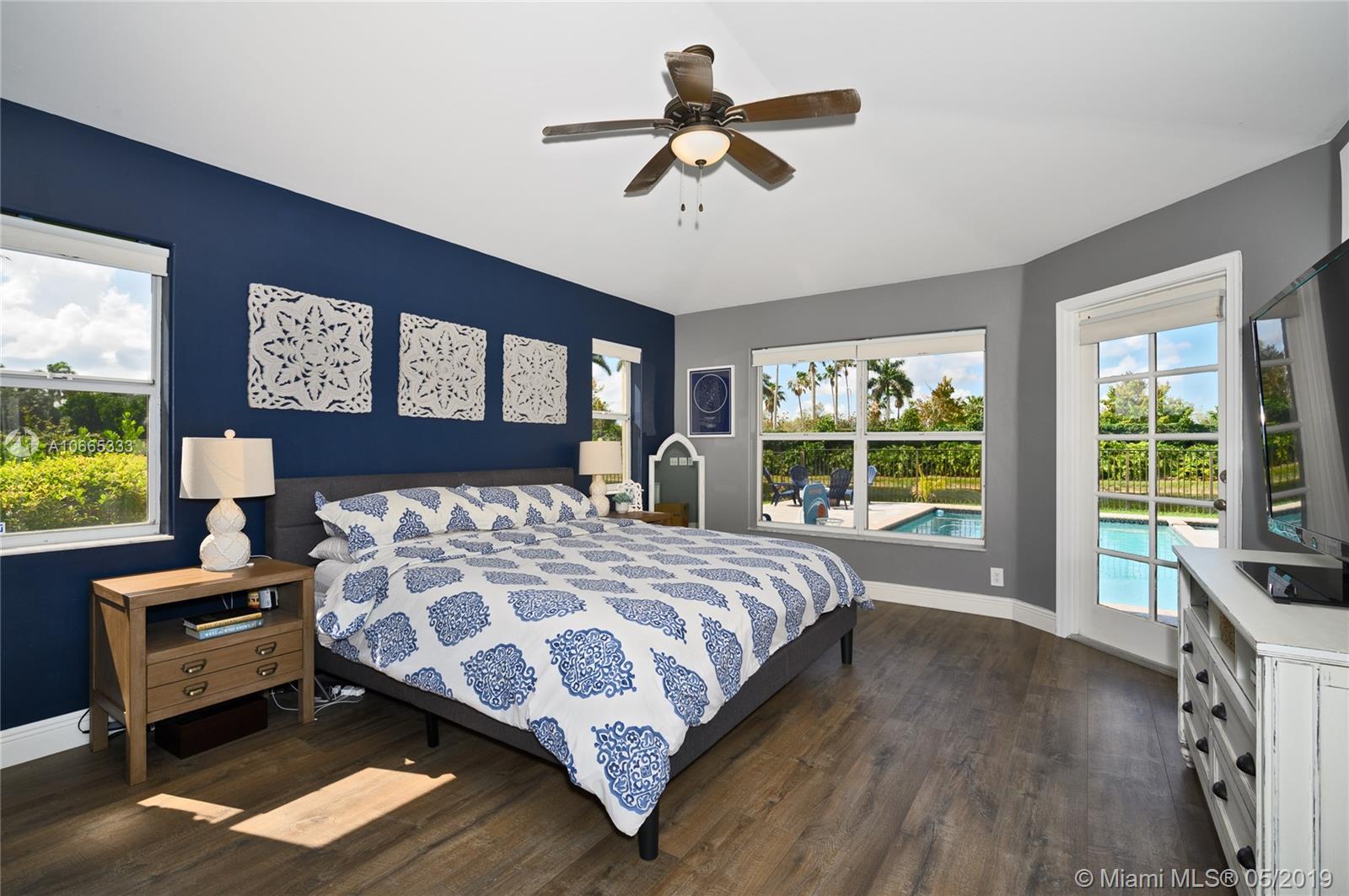 Inviting grand lot in Cul de Sac in exquisite gated Sunset Springs. Captivating water views from the moment you enter. Timeless sunsets. Nicely renovated, many upgrades! New roof, less than 6 years old, 2 A/C units approximately 5 years old, large pool with Spa with newer pool heater and motor. Bathrooms newly renovated. New floors throughout the house, popcorn ceiling removed. Kitchen with all stainless steel appliances almost new, granite countertops. Serene landscape, freshly updated. Biggest one story four bedrooms, 2.5 baths in the community. A+ school. Community has tennis and basketball courts, playground. Ready to move in!