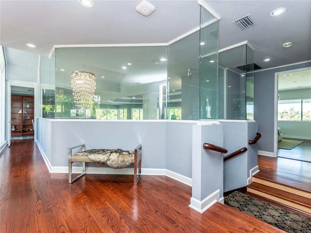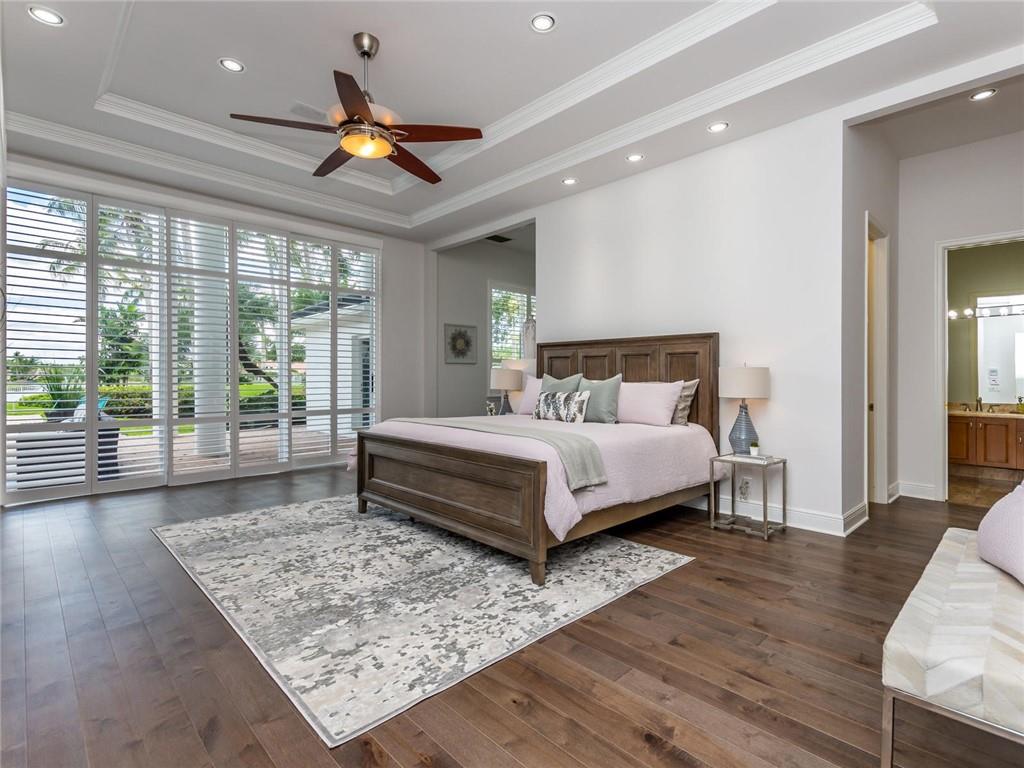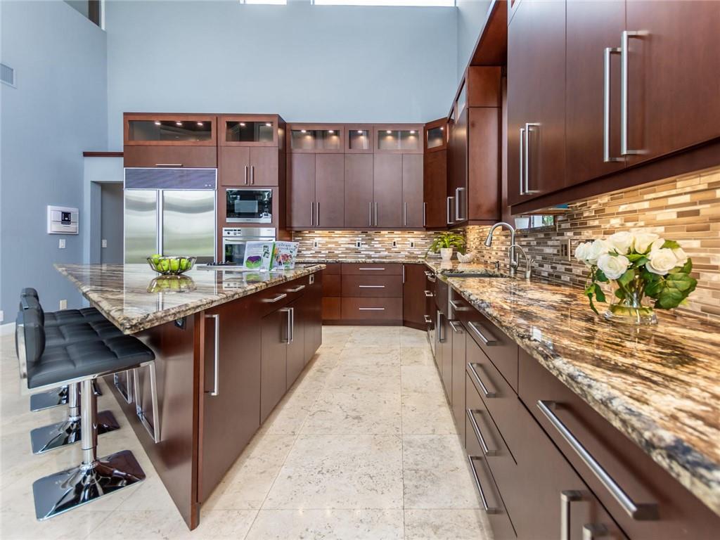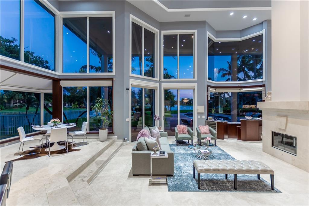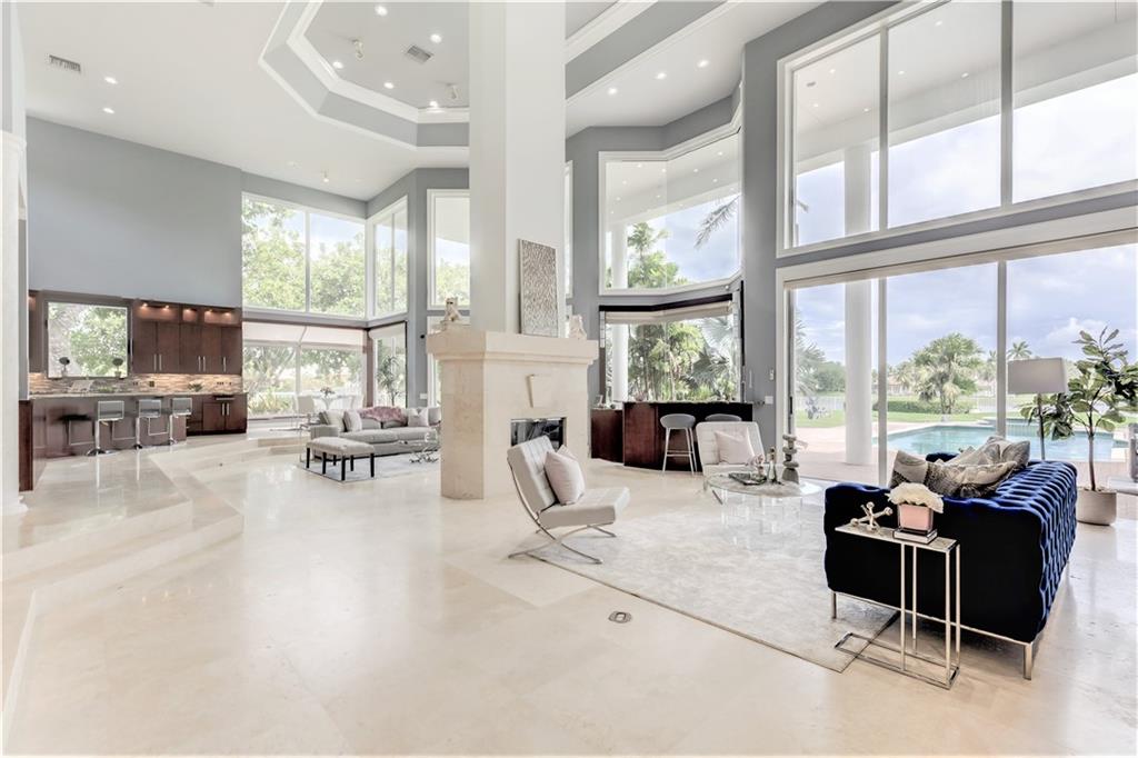 Stunning 5BD+DEN/8BA/3CG residence on spectacular 1.38 acre fully fenced lakefront lot with panoramic water views from everywhere! Over 5500 sq ft with soaring 30ft double-coffered ceilings, dramatic floor-to-ceiling walls of glass, 40ft heated pool/spa! New roof 2019! Expansive open floor plan, modern chandeliers, 24" saturnia marble floors, double-sided marble fireplace, mahogany & onyx wet bar & dining buffet. Newer Chefs kitchen w/Miele appliances. Downstairs Master w/Sitting Room, His/Her Marble Master Bath, 3 walk-in closets, plus 2BD/2BA perfect for guest/maid. Upstairs is the 3/3 kids wing, 2nd family/media & unique glass-enclosed office. Sep outdoor Cabana bath, Newly redone driveway, exterior painted 2019. Price reflects concession for impact. Showings per CDC Covid19 guidelines.