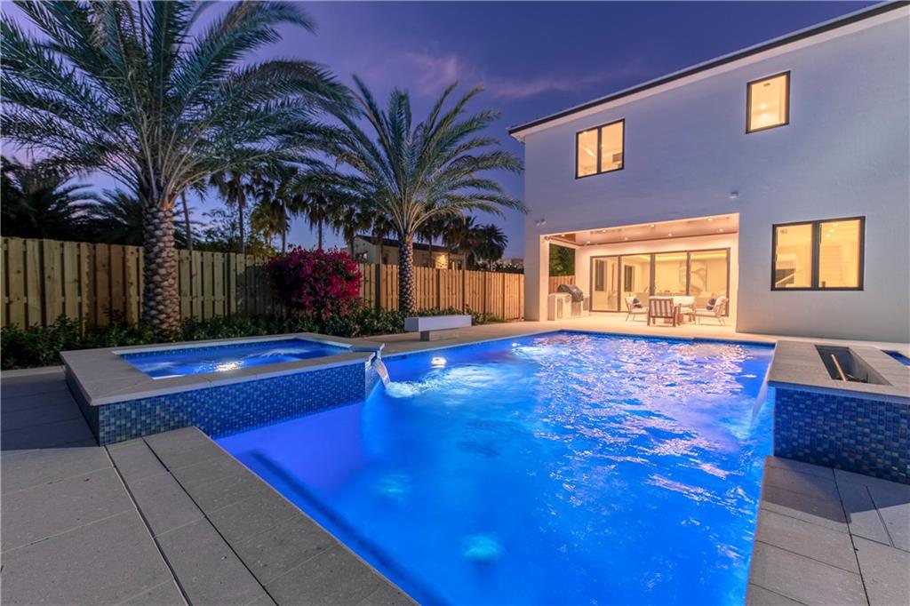 NEW CONSTRUCTION in the quaint neighborhood of Idlewyld. This transitional modern style home built by Brookman-Fels is warm and inviting. A gourmet kitchen opens to the family room overlooking a custom pool and a tranquil backyard experience complete with a summer kitchen. Detailed lighting and artistic finishes are subtle and elegant which create a relaxed aesthetic. A downstairs den/library overlooks private patio. The gourmet kitchen includes Thermador appliances, a beautiful refrigerator with a wine column, gas range and double ovens. The master suite has a balcony with views of the intracoastal as well as an incredible spa-like bathroom with floating double vanities, 2 water closets, a soaking tub, and frameless glass shower enclosure. A gorgeous home in a charming neighborhood.