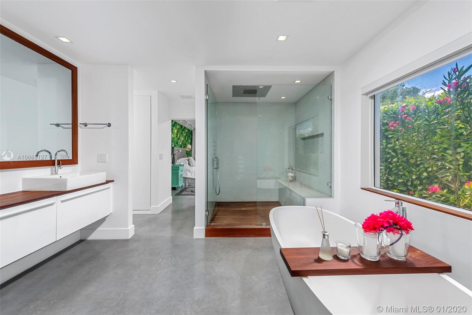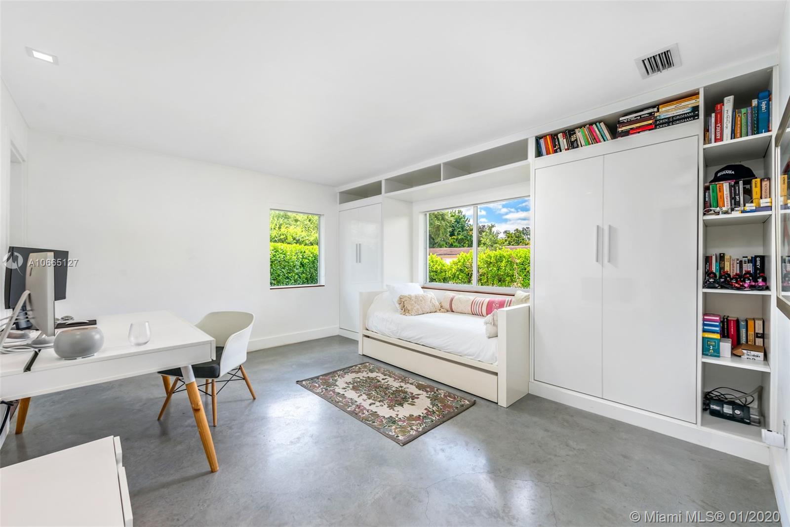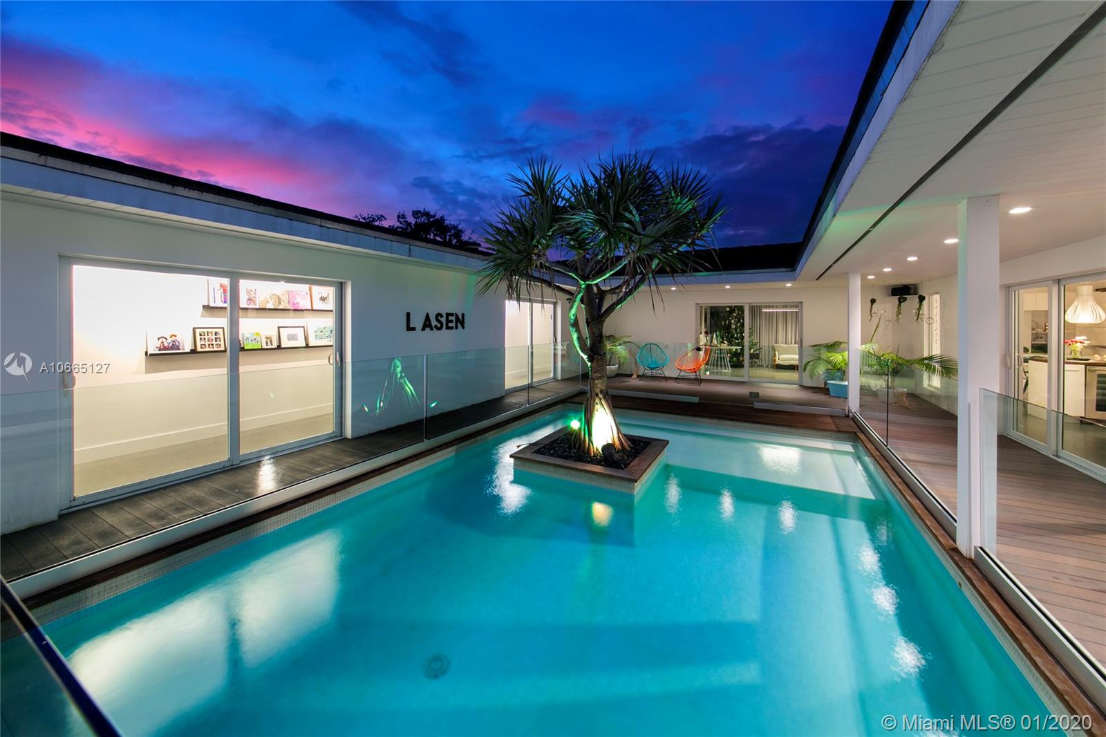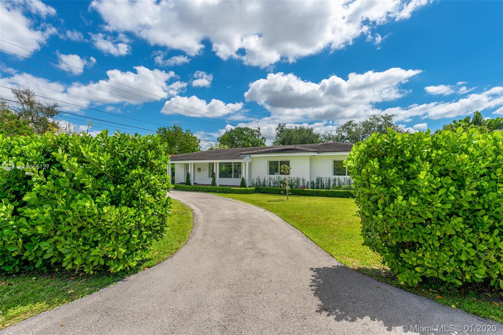 A meticulously renovated architectural gem that sits on a generous 17,400 SF lot in the heart of Coral Gables, this ultra-chic and modern estate is a must-see. This home offers open-concept living and a unique central courtyard that encompasses a resort-style, serene pool. Special features include Italian cabinetry in the kitchen with top-of-the-line appliances, IPE wood accents, and polished cement flooring throughout. The elegant master bedroom comprises large windows, a stunning en-suite bathroom, and an oversized walk-in closet. Guest bedrooms are sizeable and naturally lit, with en-suite bathrooms. Additional spaces include a separate dining room, family room, and media rooms. Minutes from Merrick Park and fine dining restaurants.