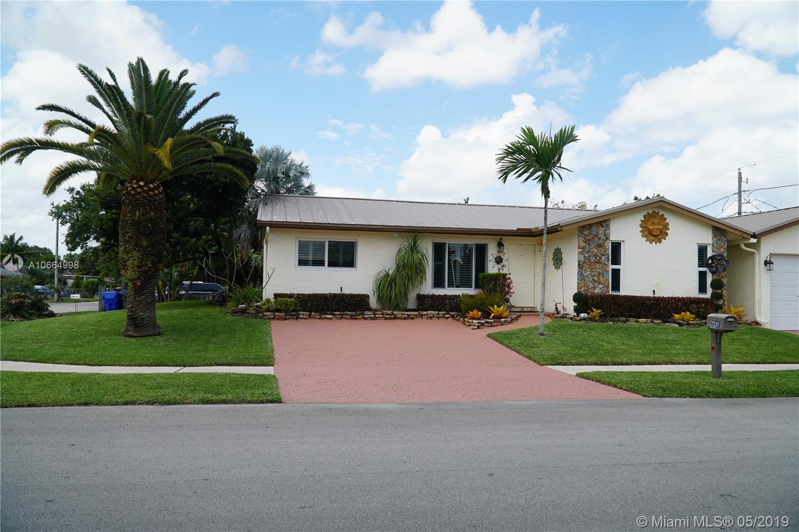 ACCEPTING BACK UP OFFERS! Beautiful home in a quiet neighborhood. Hurricane impact windows and doors, parking space in the front and 750 sq. ft garage. Additional parking space for RV or Boat. 12 x 12 extra storage shed. Plantation shutters through the entire house. Beautiful kitchen, lots of cabinets and granite countertops. Metal roof installed in 2017 and AC unit in 2015. Solar hot water with tank enclosed in shed. Water filter system. House was painted 3 years ago. No HOA. Queen Murphy Bed in 1 bedroom. Front Load washer and dryer included. They are in excellent condition! Gorgeous landscaping with mature trimmed trees. Sprinklers included. The septic tank was cleaned last year. The new drain field is 10 years. Your Dream home near lots of shopping, restaurants, and Hard Rock Hotel.
