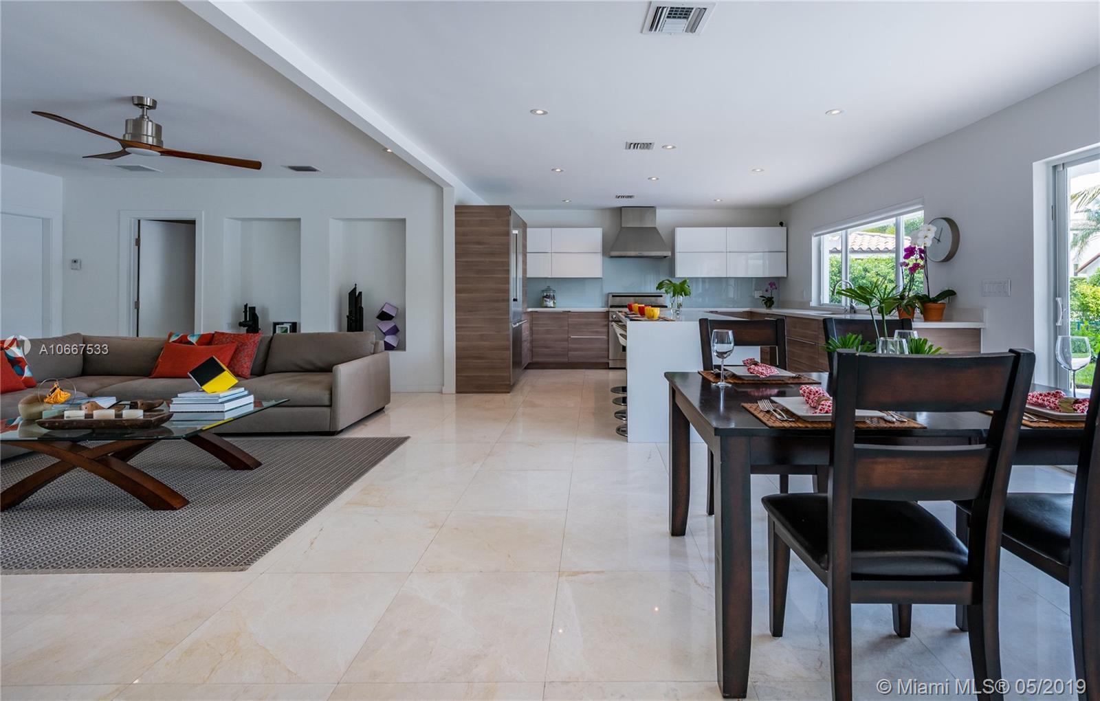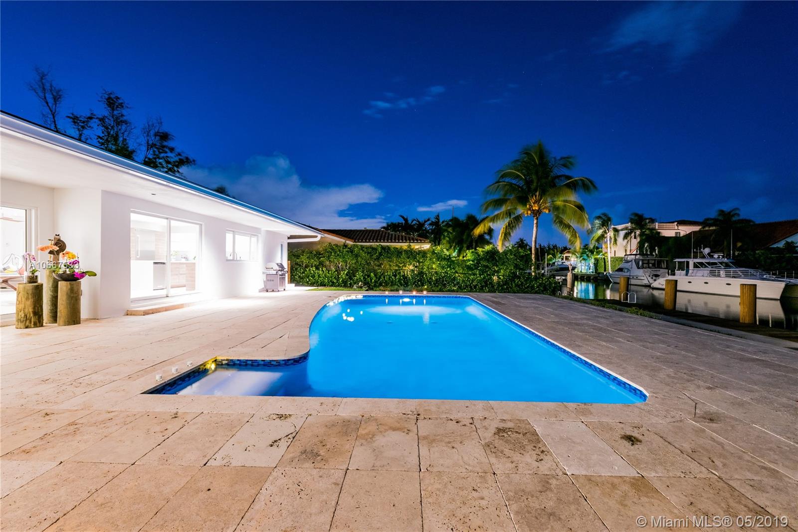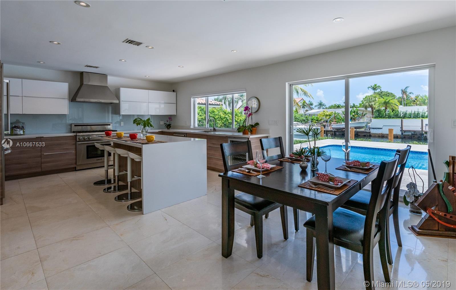 QUINTESSENTIALLY KEYSTONE! Easy, carefree, luxe living in this splendidly modern, totally renovated, corner lot waterfront home on gated Keystone Point’s prestigious Island 5. Venture off in your vessel from the new 70’ dock with 20K lb lift and 100’ frontage- 3 minutes to the bay and just 10 minutes to Haulover Inlet. Staying ashore? Savor the spacious outdoor oasis with sparkling pool and grand entertainment space. Bright and light inside with impeccably updated open flow living, dining, gourmet chef’s kitchen, new impact windows and doors, baths, plumbing, electric and roof. Expansive master suite retreat overlooks the Little Arch Creek waterway with a French door to slip out for a midnight swim. There’s simply no other home on the market like this one. QUINTESSENTIALLY YOU!