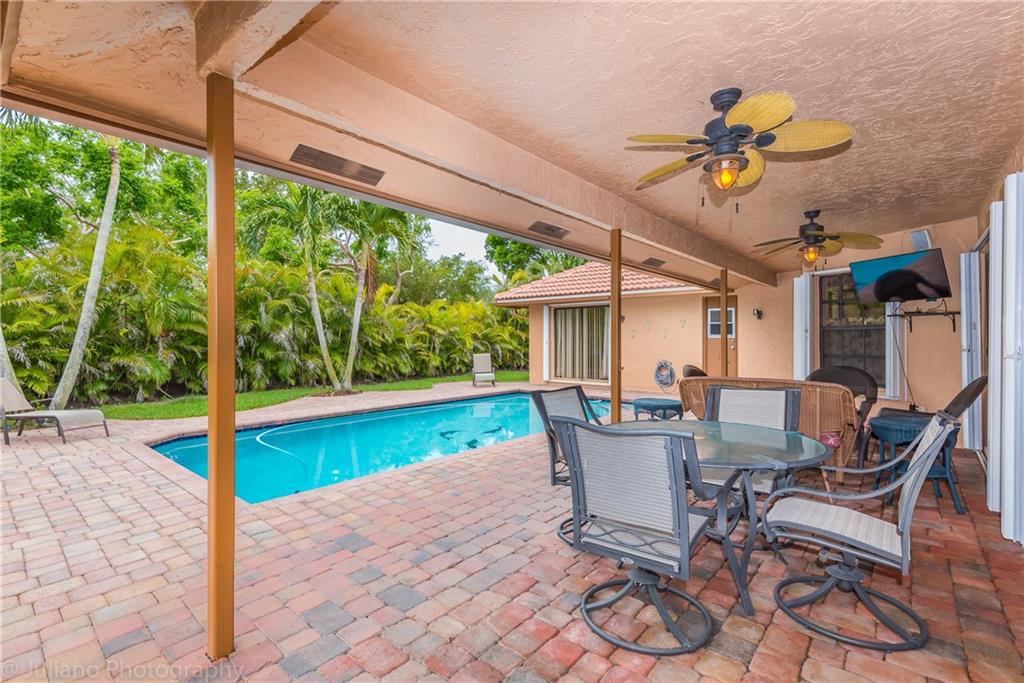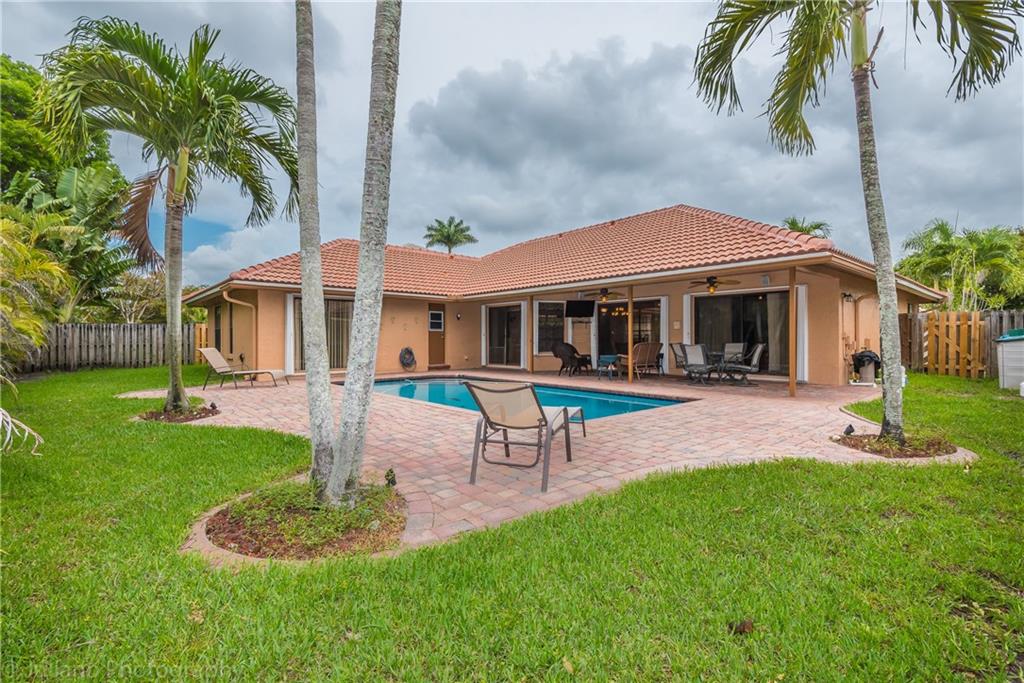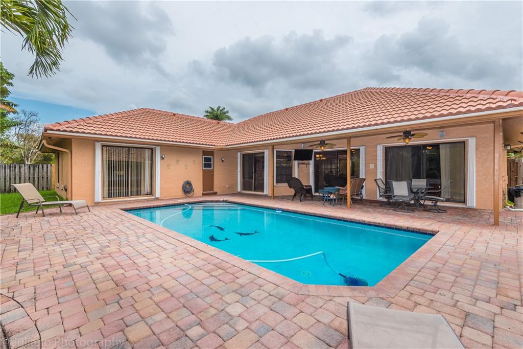 This is a must see! Spacious 4 bedroom pool home meticulously cared for with many upgrades including a bonus room which can be used as an office or playroom. New roof 2017! Separate, dining room, living room and family room. Eat in kitchen with stainless steel appliances, silestone quartz counter top and large bar that opens to family room. Split floor plan with large master bath! Tile and laminate flooring throughout home!. Covered paved patio opens to sparkling pool and lushly landscaped fenced yard. Paved driveway! Hurricane shutters! Close to Major highways, world class shopping and restaurants, Highly rated schools. Low maintenance fee! This one wont last!