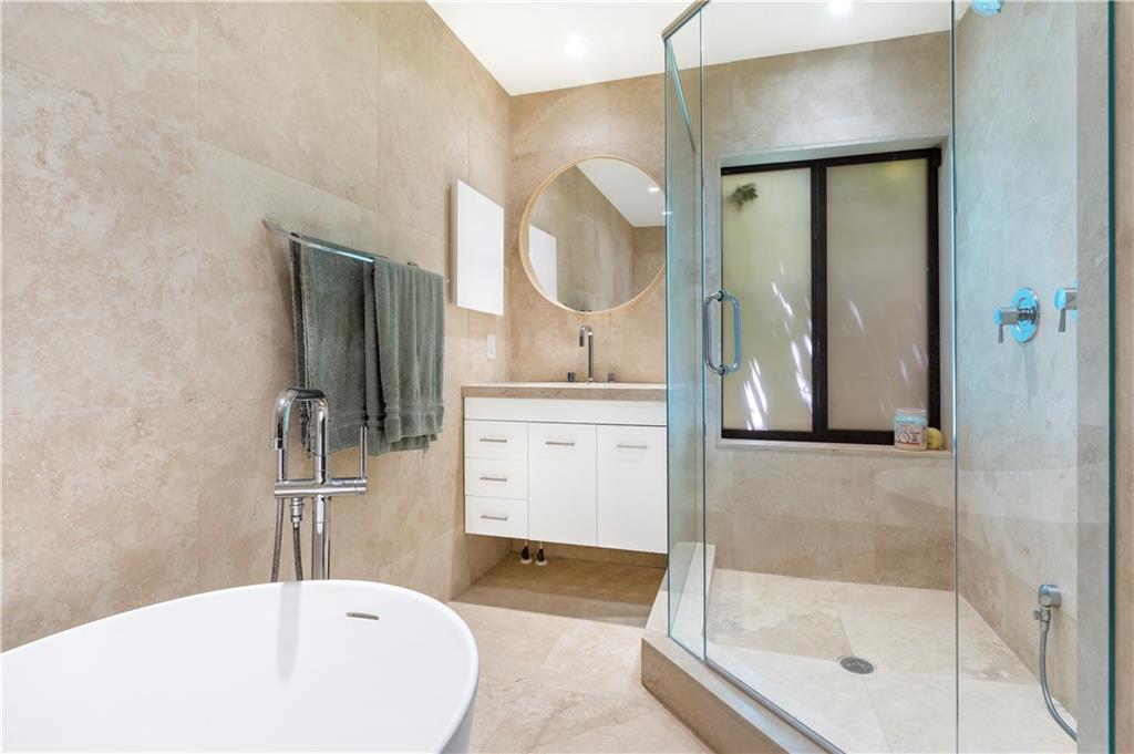 Unsurpassed luxurious finishes throughout this fully renovated Victoria Park pool home. Exuding elegance and warmth, this residence masterfully combines the original character of a mid-century home with high-end contemporary finishes. Venetian plaster walls illuminated by skylights in the vaulted-ceiling living room, solid Carrera marble bathrooms, upgraded Thermador gas range, impact glass throughout and newer tile roof. Master Bedroom with large walk-in closet and en suite bathroom with separate shower and free standing tub. Outside, exquisite mature tropical landscaping frames a heated salt-water pool and screened-in gazebo. Absolute privacy, superbly located within walking distance to Las Olas Blvd and restaurants & nightlife on Federal Hwy corridor. Sq Ft from BCPA