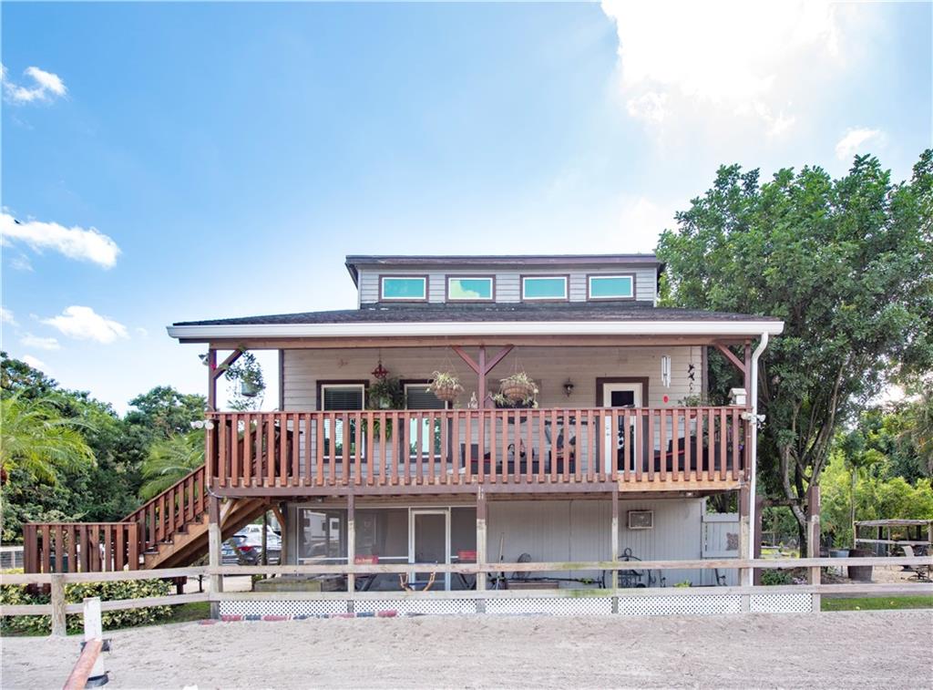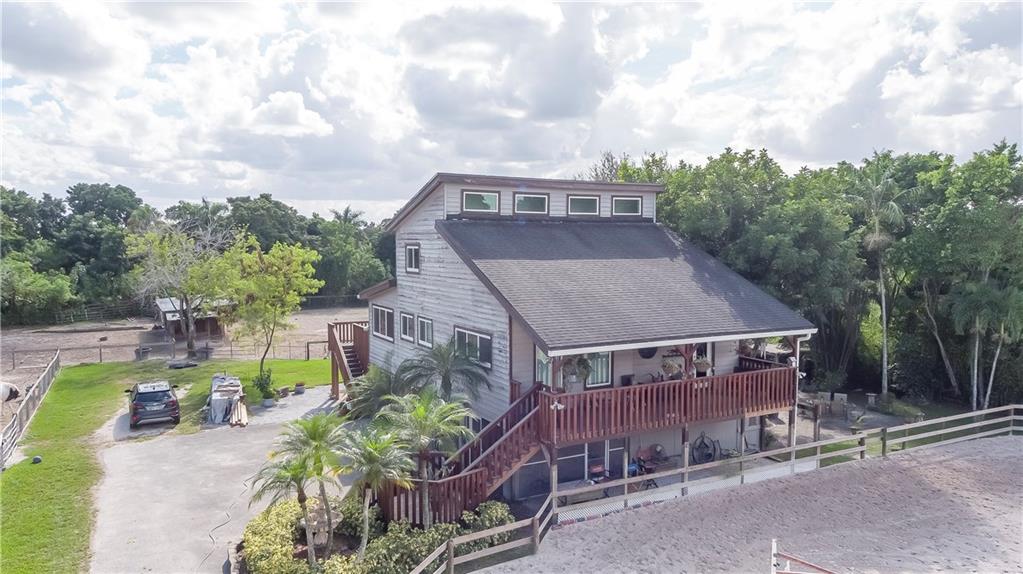 Don’t miss this equestrian property in highly sought after Live Oak area of Davie! Don't miss this almost 2 acre fully fenced horse property with a beautiful and unique renovated house! House has newer bathrooms, stunning new kitchen and impact windows and doors throughout. First floor features a private bedroom and half bath perfect for a groom or guests, as well as tons of storage and an additional covered and screened area to watch riders in the arena. Brand new Brazilian wood deck/porch in front and back of home. Owners have done all major improvements to this home. Gorgeous 8 stall barn with water and electric. Lovely riding arena and plenty of turnout for your horses. The property is very private and yet conveniently located close to highways, shopping,restaurants and great schools!