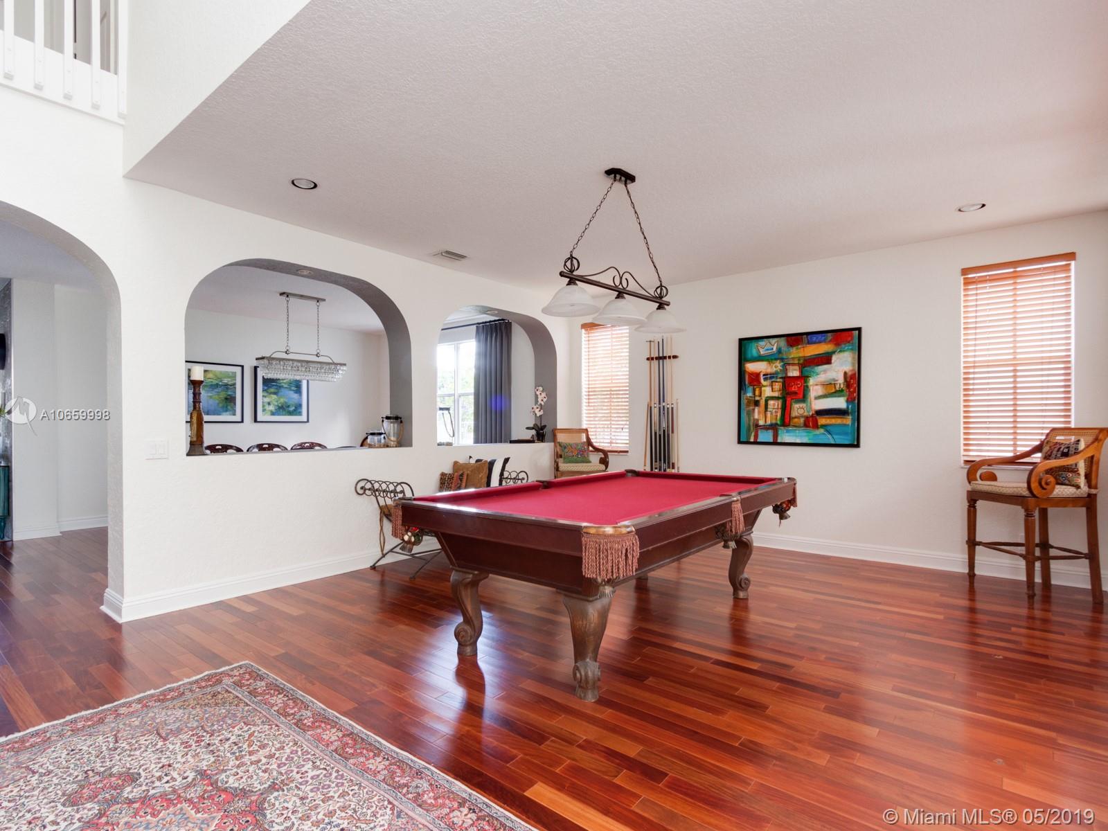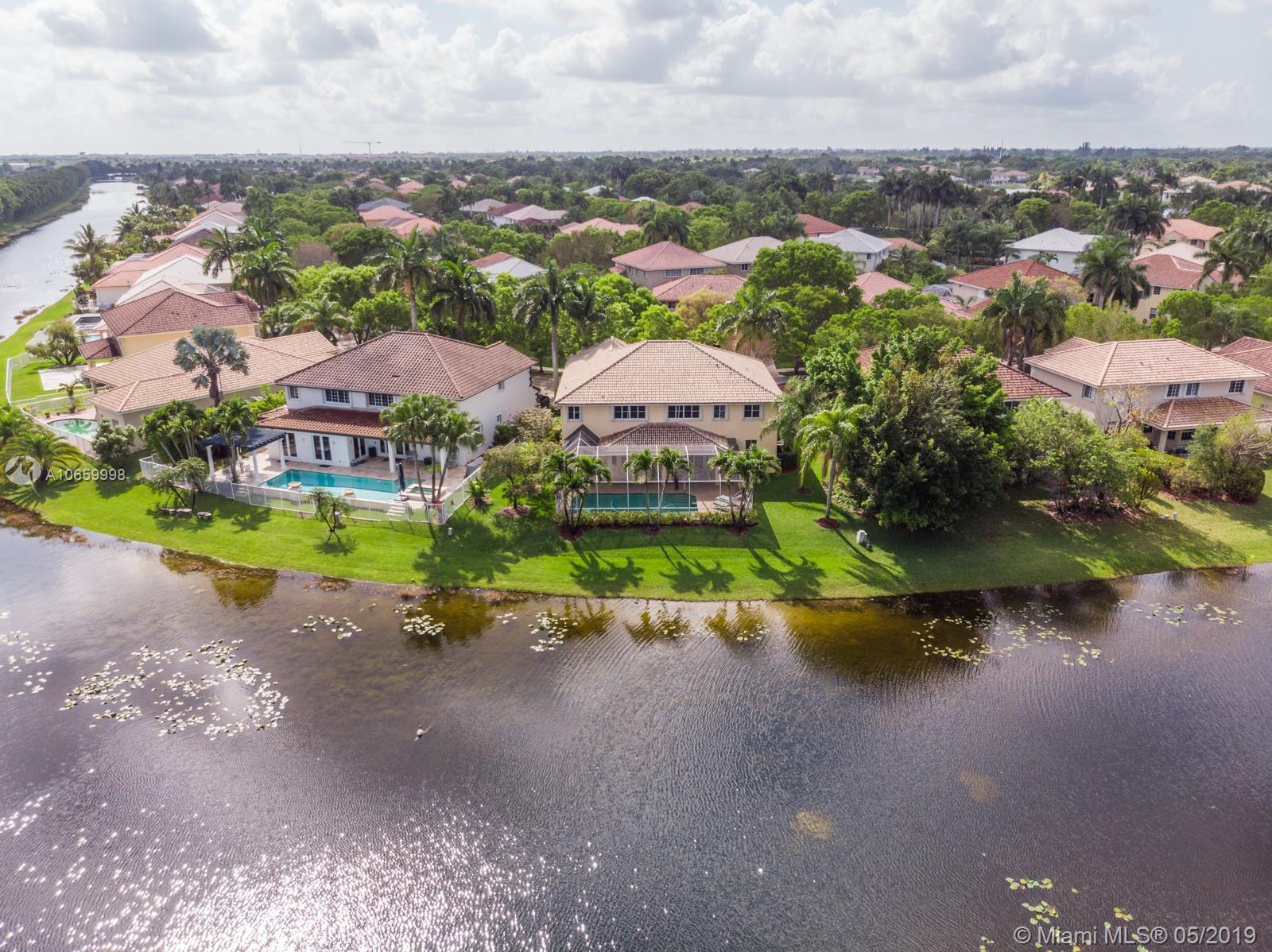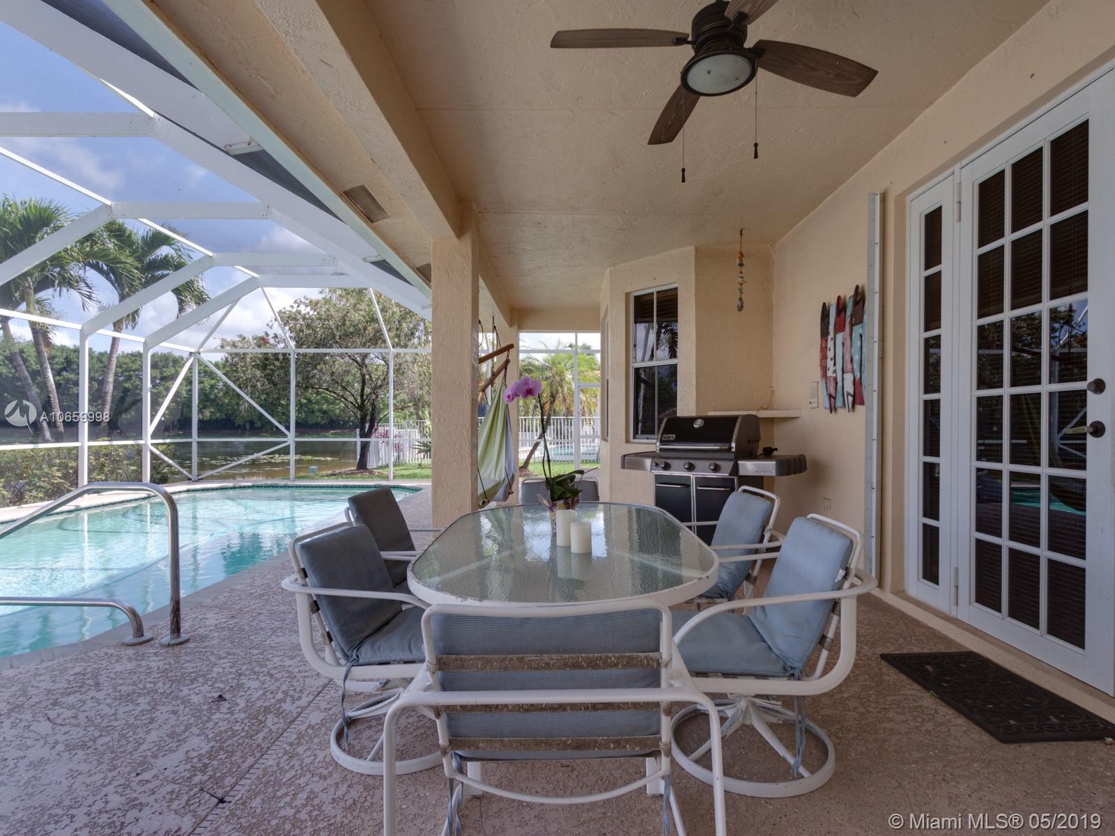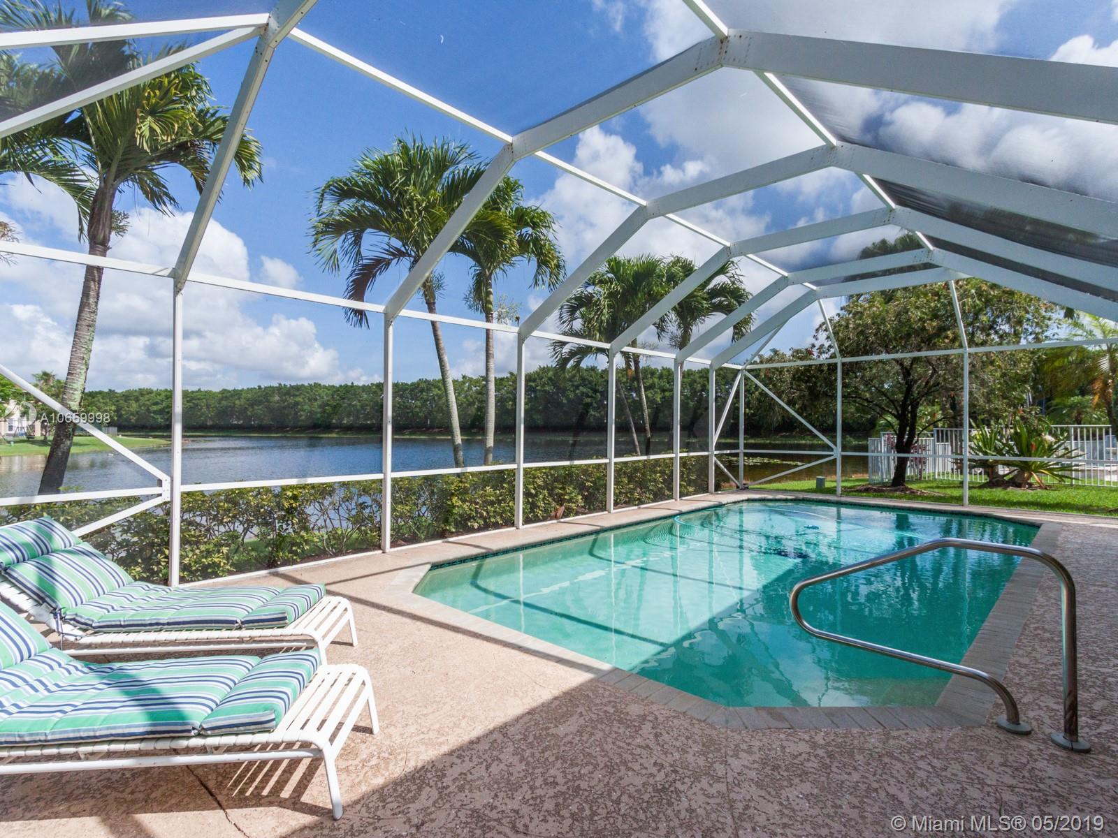 A unique property that boasts 100+ feet of premium lake frontage and a large screened in heated pool, this spacious 6/4 home features nearly 4,000 sq feet under air and a 3-car garage. Master bedroom has large sitting area/office/gym and huge walk-in closets. The Ridges is a wonderful secure gated community. Your family will appreciate the convenience of a short walk to A+ rated Weston elementary, middle and high schools. Well kept community pool, clubhouse, playground, basketball and volleyball courts. Great location near area shopping, restaurants and highways.