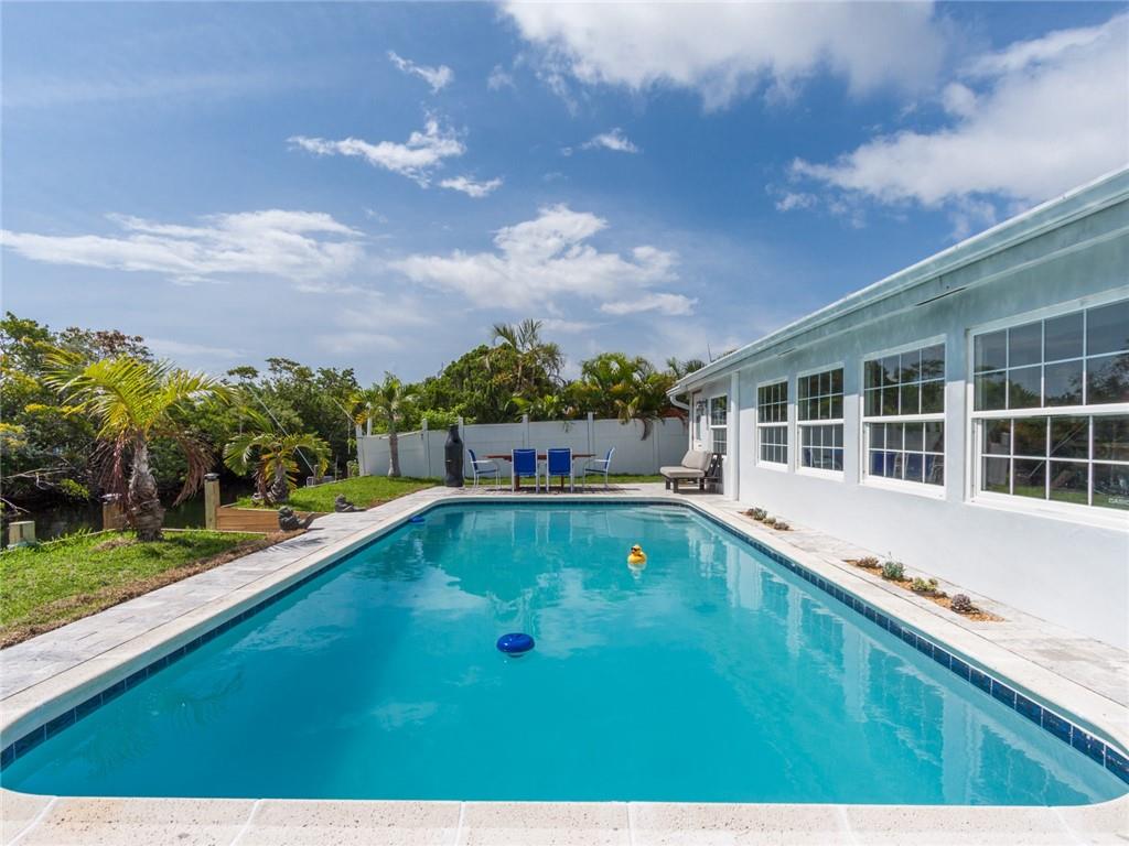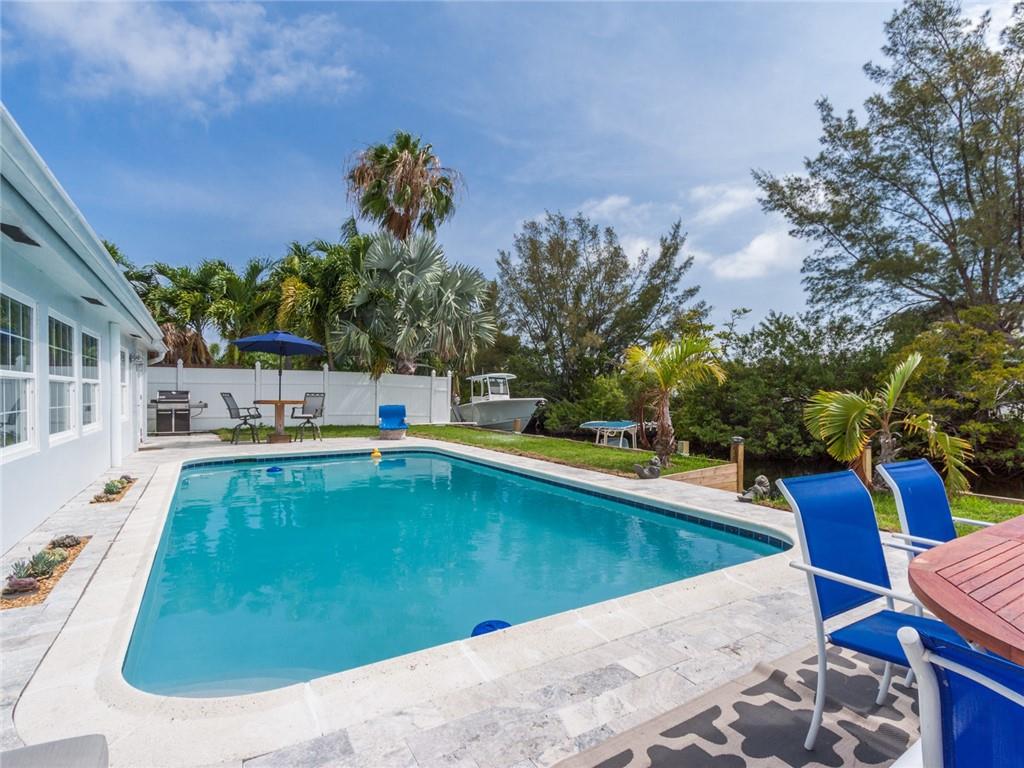 HUGE PRICE DROP!! Beautiful and spacious waterfront home with 4 bedrooms, 2 remodeled baths AND additional office/den and Florida room!! With the split floor plan and additional rooms, this house really feels large and sprawling!! Tons of windows throughout give the home a natural bright feel. NEW ROOF 2016, A/C 2016, SEAWALL 2019, NEWLY RESTORED BACK YARD, POOL AND DECK, COMPLETELY REMODELED BATHS, NEW APPLIANCES THROUGHOUT, AND LARGE GARAGE. The large back yard is your own oasis with a brand new seawall, deck, landscaping and refinished pool. This home really packs in a lot and has tons to offer. 1 FIXED BRIDGE (FEDERAL) See attached complete list of improvements