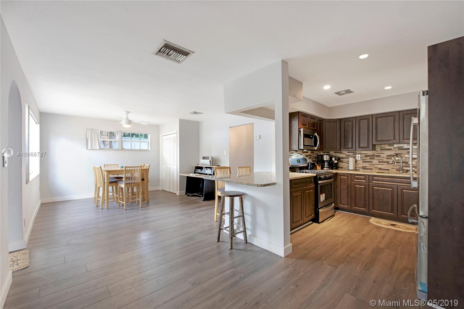 Wonderful 4 bedroom, 2.5 bathroom house in Hollywood! This home offers a charming layout that makes you feel right at home upon entry, wooden flooring, spacious dining room, updated kitchen with stainless steel appliances, large corner snack bar, beautiful wooden cabinetry, and ample counter space. Commodious bedrooms, gorgeous master bath with modern dual sinks and lovely cabinets and mirror, and other great features you will be sure to love!