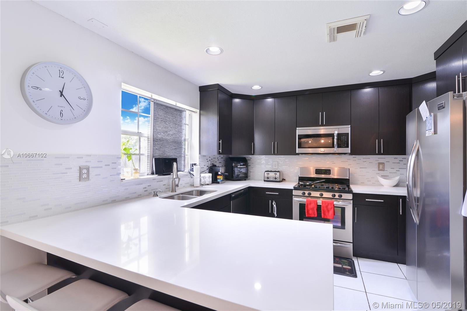 Beautiful 3/2.5 one car garage Cul De Sac Homes in desirable gated community of Marbella. This tastefully upgraded home feat. High ceilings w/ a spacious layout, open concept eat-in kitchen w/ S/S appliances, quartz countertops & elegant dark wood Cabinets, Tile floors throughout 1st level and laminate Wood floors on the 2nd level, vaulted ceilings in Master Suite & paved patio with Pergola in the fully fenced backyard with room for a pool. This Home’s exterior was recently professionally painted and gutters were installed. Conveniently located w/ easy access to highways, shopping, dining & entertainment. This planned Community feat. 24/7 Security, green areas with lush landscaping and a pedestrian friendly environment ideal for families of all ages.