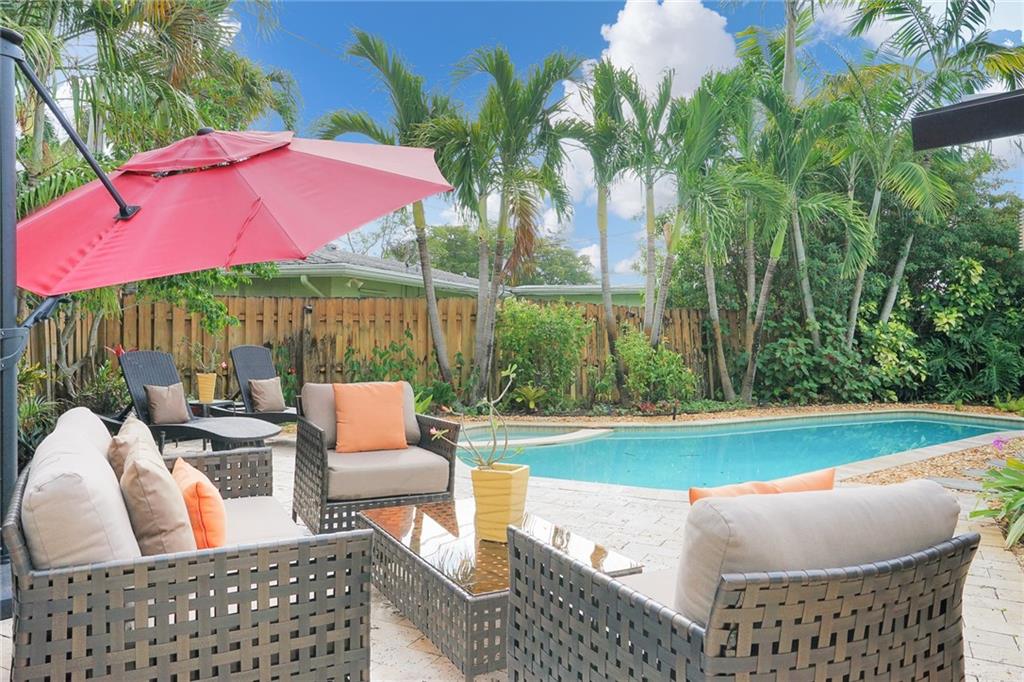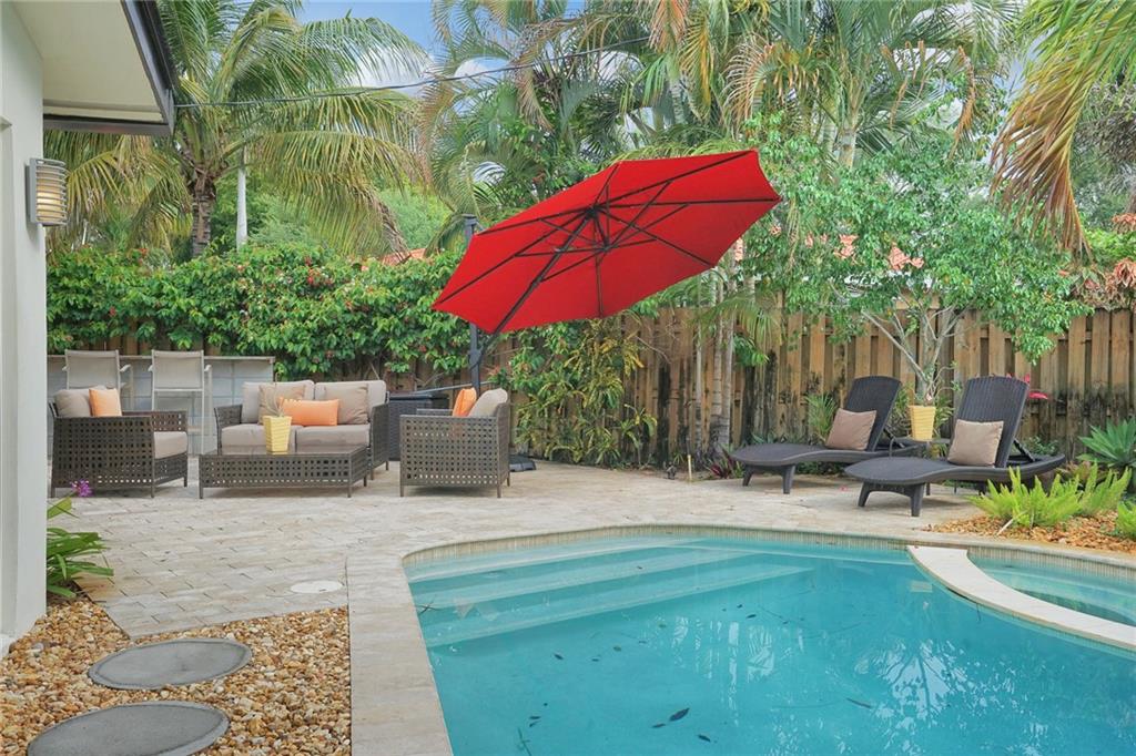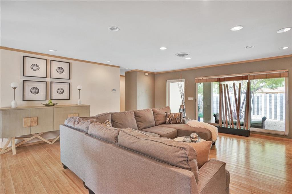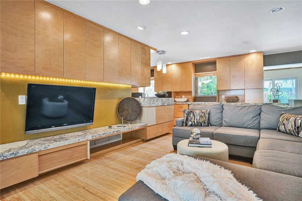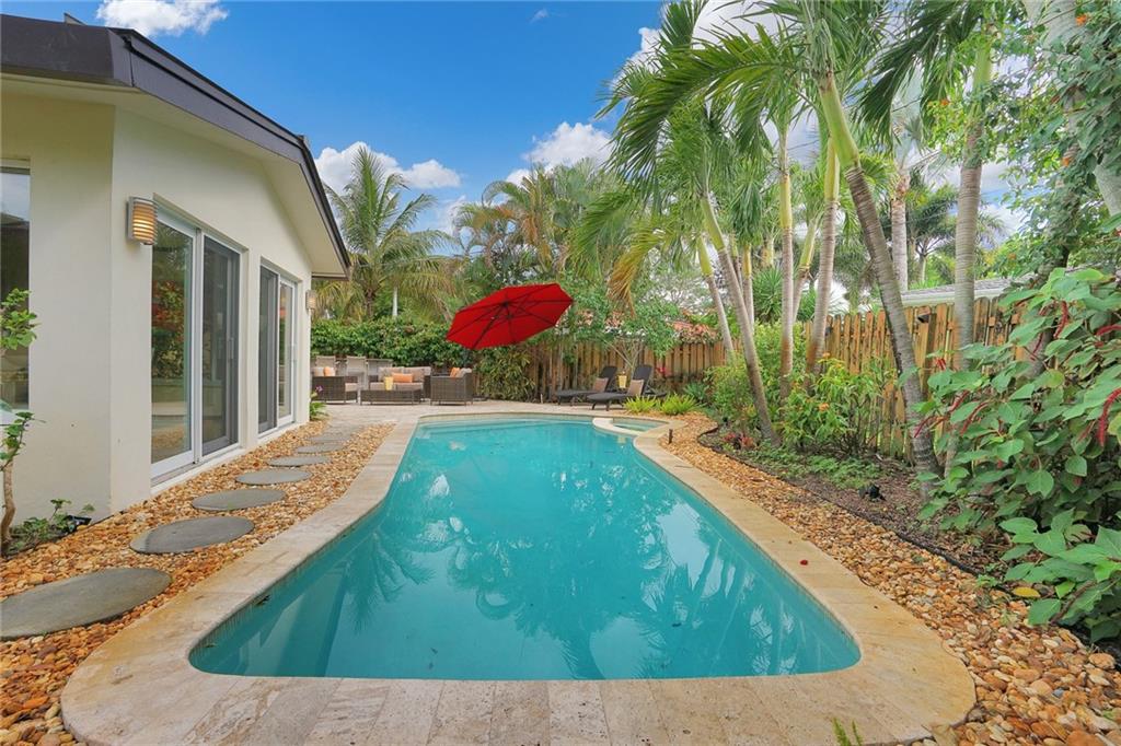 MID CENTURY BEAUTY; W/ CLEAN LINES THRU-OUT HOME. 23 CONCRETE BLOCK COLUMNS W/ CONCRETE WALL FORM THE FRONT "ZEN LIKE" COURTYARD W/ LG RECTANGLE & CIRCLE STEPPING STONES. WALK IN FRONT DOOR & SEE POOL. FLOOR TO CEILING WINDOWS IN LIVING ROOM W/ CUSTOM "BIRD'S EYE" MAPLE CABINETRY W/ STUNNING BLACK & WHITE GRANITE FORM THE FLOATING TV ENTERTAINMENT CENTER & CONTINUES THRU TO STUNNING 30X10 CUSTOM KITCHEN W/ MIELE & KITCHEN AID STAINLESS STEEL APPL. 23 RECESSED LIGHTS IN KITCHEN & LIVING ROOM. FORMAL DINING W/ WALLS OF IMPACT GLASS OVERLOOK POOL. "SPA FEELING" MASTER BATH W/ SOAKING TUB & SEAMLESS GLASS SHOWER DOORS & FLOATING CABINETRY. BAMBOO FLOORS IN MAIN AREAS & 23" GREY STONE TILE IN BEDROOMS. METAL ROOF & 2 CAR GARAGE & FEATURES A BUILT IN CONCRETE & GRANITE POOL BAR.