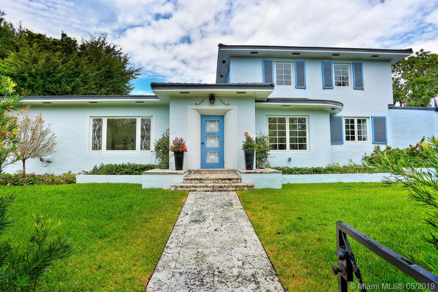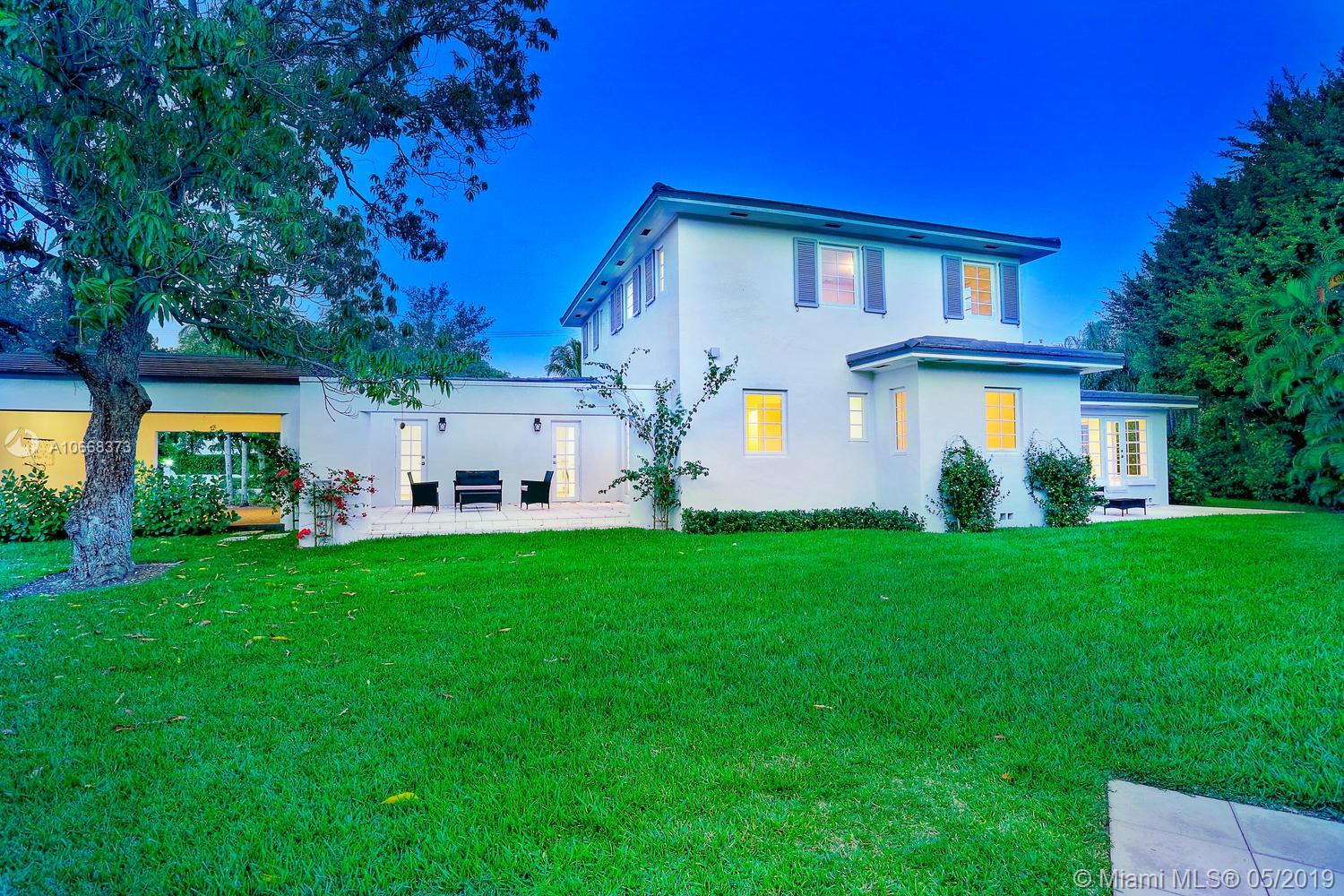 Streamline Moderne, an international style of ArtDeco architecture, is what classifies this Coral Gables Historic Residence Masterpiece. Located next to the Granada Golf Course, this rare Art Moderne design home boasts 4 bedrooms and 4.5 bath in the main house, original Italian marble & wood floors throughout, a fully renovated open kitchen, original wood burning fireplace, and all hurricane impact windows. A 2 story detached structure in the back provides a 1/1 guest suite upstairs and a "man cave"/possible game room downstairs. This home is situated on a 13,944 sqft lot providing ample space to build your custom pool already approved by the City of Coral Gables. This rare and distinguished home is one of a kind. If you are looking for a timeless and classic Coral Gables home, this is it!