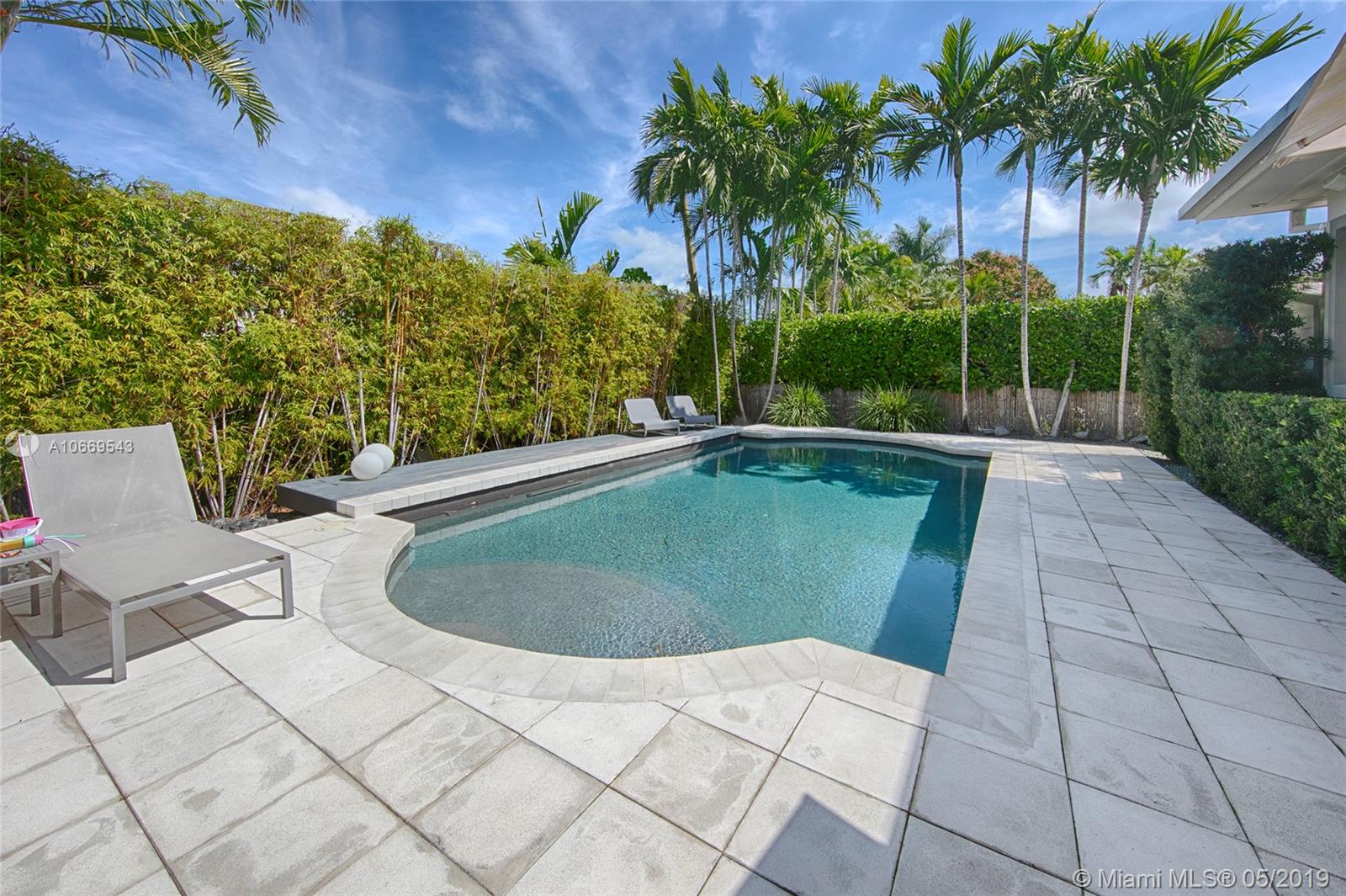 Impeccably renovated, this stunning residence sits on one of the most desirable streets on the south side of coveted Bay Harbor Islands. Open & spacious floorplan, 36x36 porcelain floors thru-out living, dining, & huge family room overlooking pool/patio & lushly landscaped garden. True chef's kitchen w Gaggenau & Miele appliances, cabinetry by Snaidero & charming built-in banquet. Gracious master w wood flooring boasts large master bath, & huge walk-in closet. All bedrooms filled w lots of natural light, impact windows/doors thru-out, 1 car garage w a/c. Large covered dining area perfect for enjoying the outdoors. Bay Harbor Islands is one of South Florida's hidden treasures & an incredible community to call home. A+ schools, walk to beaches, renowned shops, & restaurants.