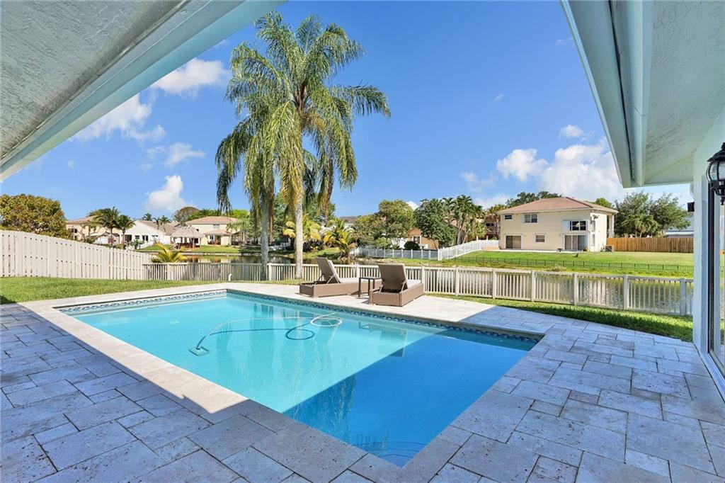 MUST SEE 4/2 home on water in Shenandoah. Home has been fully remodeled including a breathtaking white kitchen with quartz counters and stainless appliances. Throughout the house you can enjoy crown molding, laminate floors, frosted interior doors and fully remodeled guest bathroom. Renovations outside include custom impact front door, paver driveway, a travertine deck with infinity edge to the newly resurfaced saltwater pool. Don’t miss out on your chance to live in this highly desired neighborhood featuring a huge park with new shaded playground, a splash pad, soccer fields, walking trails and even work out equipment. Some extra upgrades include new water heater, new impact garage door and opener, new variable speed AC system, pool pump, custom built shed, fenced in yard and more.