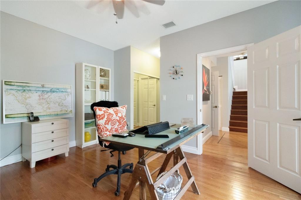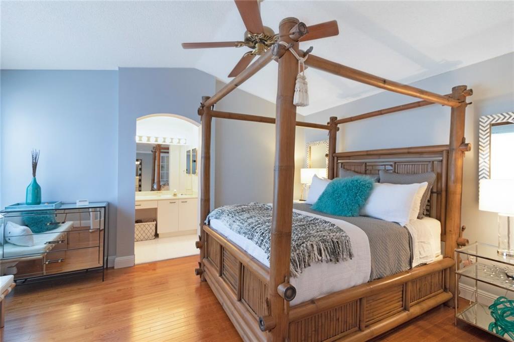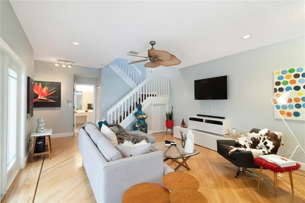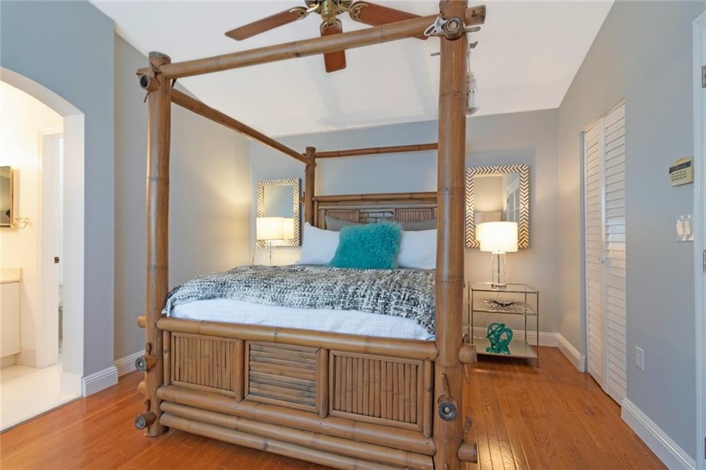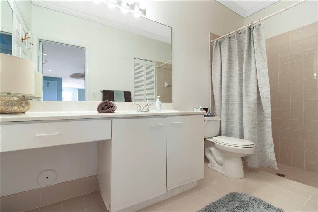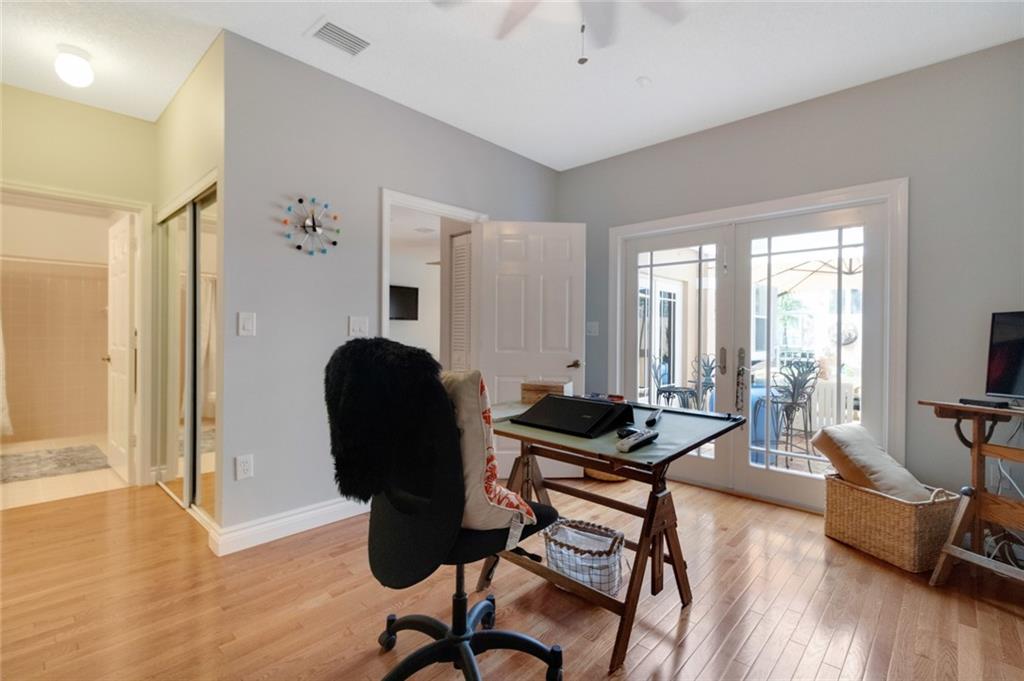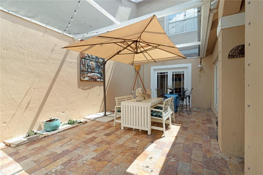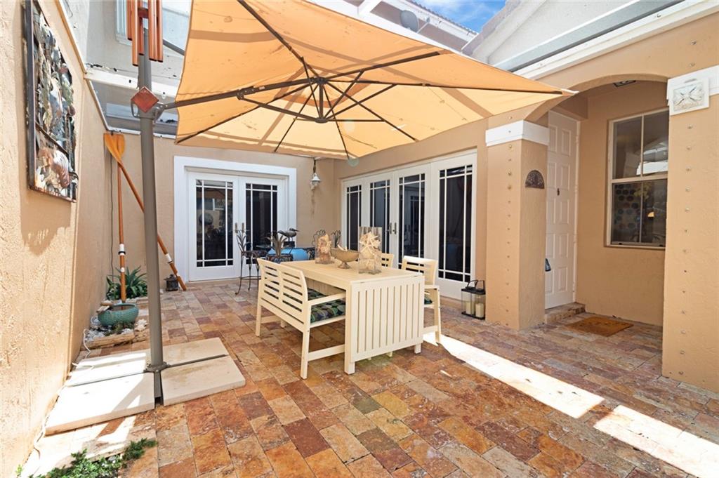 Surrounded by protected wetlands, West Lake Village stands alone in the East Side Real Estate Market. Enter the property through a screened courtyard of sealed tumbled stone pavers. Hardwood floors shine throughout the property. The eat in kitchen has been updated with new cabinets, granite counters, stainless appliances & a new backsplash. The living area is awash in light from the impact rated French doors. While the master suite is upstairs, there is a second master down, again with large, impact rated French doors opening to the courtyard. Oh, the master suite! Enter through French doors at the top of the landing. Vaulted ceilings, enormous walk in closet and master bath with both a roman tub and walk in shower.