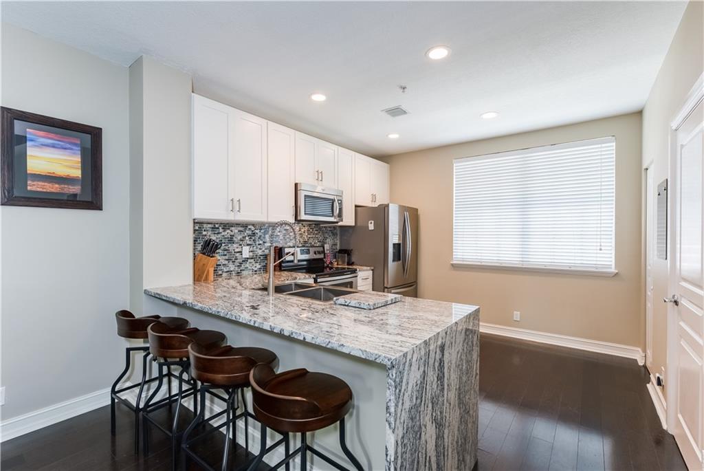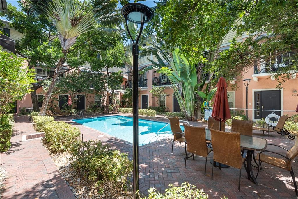 Desirable Flagler Village tri-level townhome. The home features 2 bedrooms, 2.5 bathrooms, 1 car garage and 1 outdoor parking space. The first floor has an office/den perfect for professionals who work from home. Dual master bedrooms with individual ensuites with granite and Italian porcelain tile. A/C unit completely replaced in 2018. Upgraded smart home features including Lutron lighting, Ring doorbell, interior and exterior video cameras with recording. Walkability to Las Olas Boulevard and Federal Highway. Impact sliders leading to balcony overlooking the lush tropical pool. HOA includes security monitoring, pool service, landscaping, insurance and roof. Great property for an Owner or Investor as the unit can be leased the first year. Pet friendly.