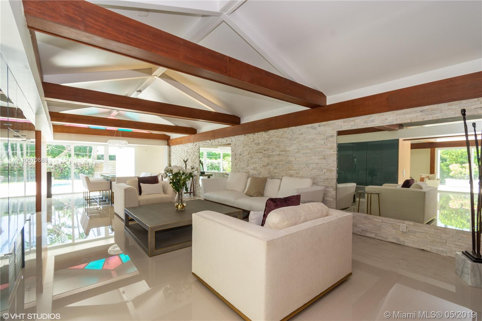 Police gated San Souci Estates home in the dynamic Nomi community. Spacious corner lot in gated Sans Souci Estates was designed by famous Architect Kenneth Treister and taken to the next level by Miami Architect. Ideal for entertaining with open floor plan, vaulted ceilings. bright & airy with glass doors leading to courtyard from every room. Skylights, working sculptural fireplace and new gourmet kitchen with marble quartzite counters and Thermador gas oven. Updated baths. Large family room and den. Fenced in yard with 40 foot pool with a spacious outdoor chill area. Plenty of room for further expansion and additions. I’ve been in the business for 30 years and, not to be cliché, this is a trophy property .