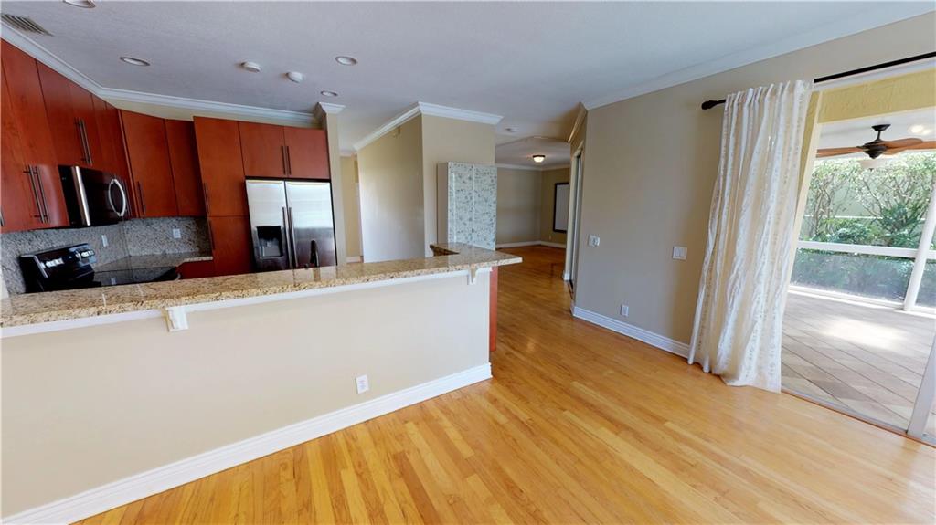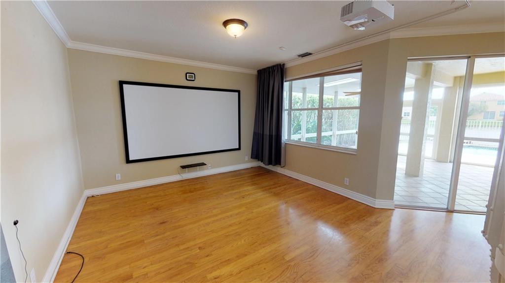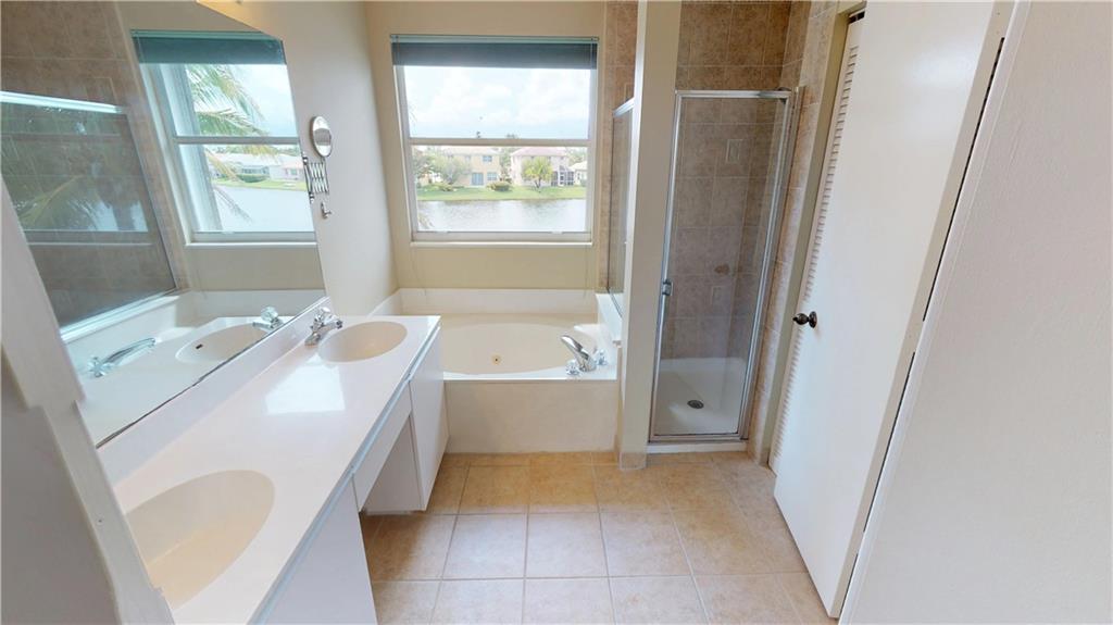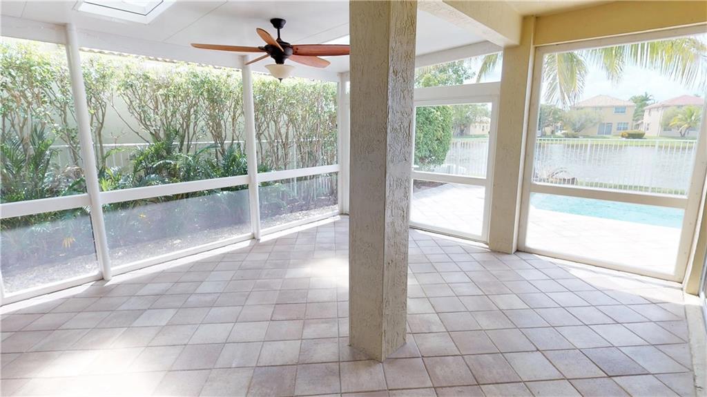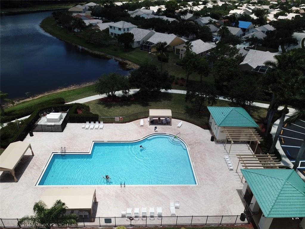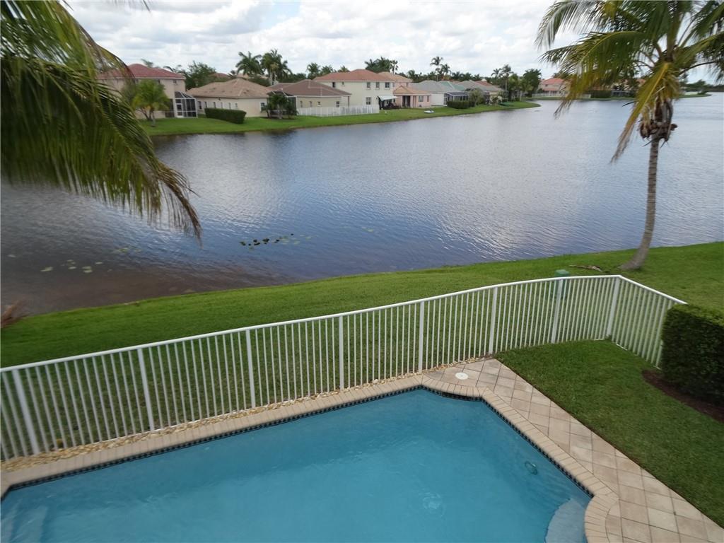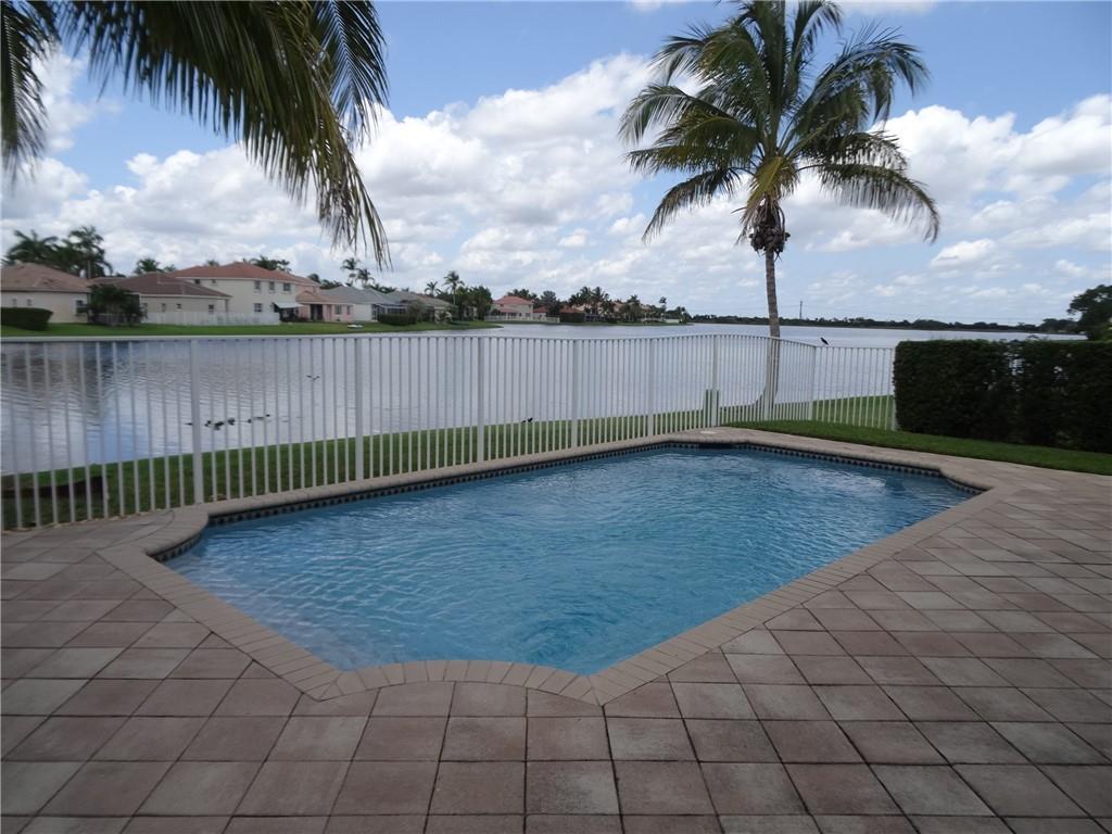 Open and airy 4 bed 2.5 baths with a lakefront view. Spacious screened porch that opens to a newly resurfaced pool. Wooden floors throughout. Kitchen includes granite counter tops, wooden cabinets and new SS appliances. Technology upgrades include Ring doorbell, Ecobee smart thermostat, and wired home theater. Accordion shutters 2nd floor. Located in The Falls, an amazing gated community that possesses A+ rated schools. This home is a must see!