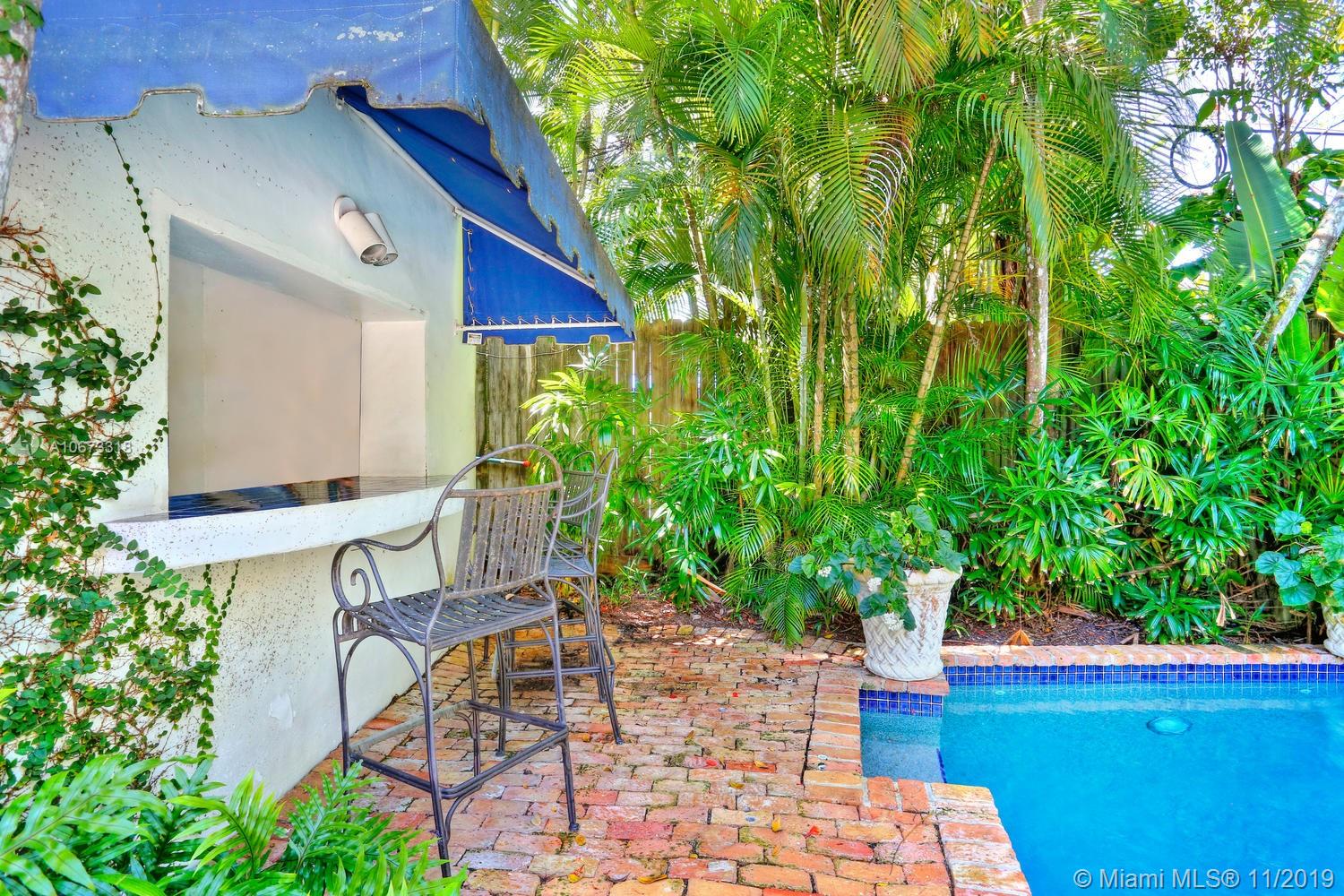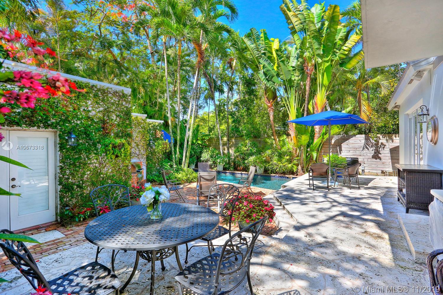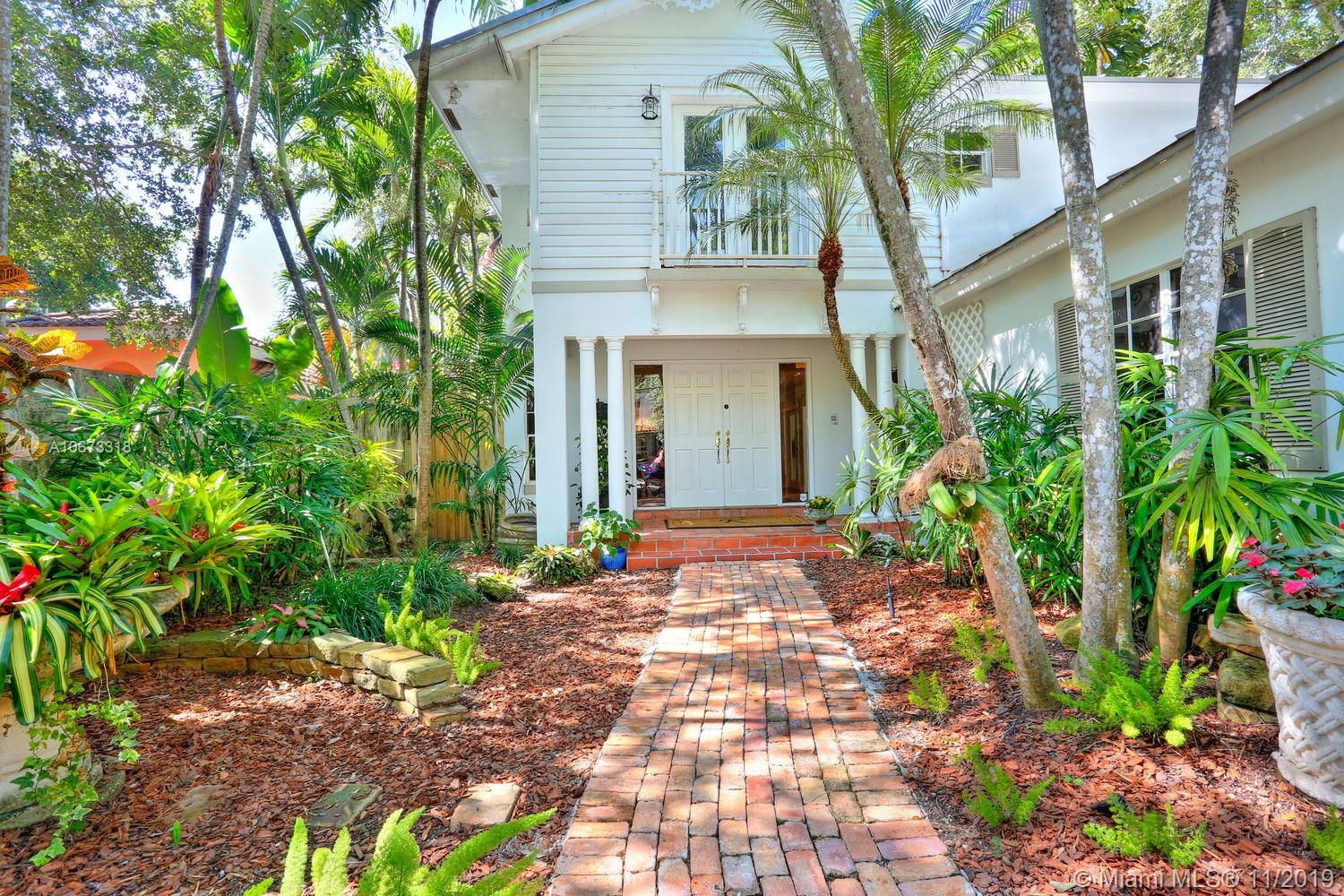Lovely Key West style home on a coveted & quiet cul-de-sac street in prestigious South Coconut Grove. “Irvington” is a small & neighborly community with it’s own private park nestled among towering oaks & a magical, verdant landscape. Entry foyer opens to light-filled living spaces featuring double-height ceilings, clerestory windows & French doors throughout that overlook bricked terraces & lush tropical gardens. Custom kitchen w/ white cabinetry, granite countertops & breakfast area; opens to expansive family room. Enjoy outdoor living & entertaining around the ultra-private pool in a tranquil setting. Detached 1BR/1BA guest cottage. Minutes to excellent schools; including Ransom, Carrollton & St.Hugh’s. Walk or bike to the Grove village center’s boutiques, cafes and bayfront parks.