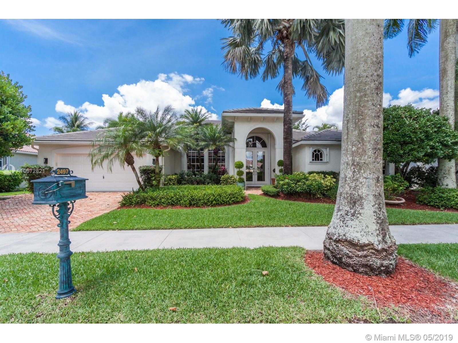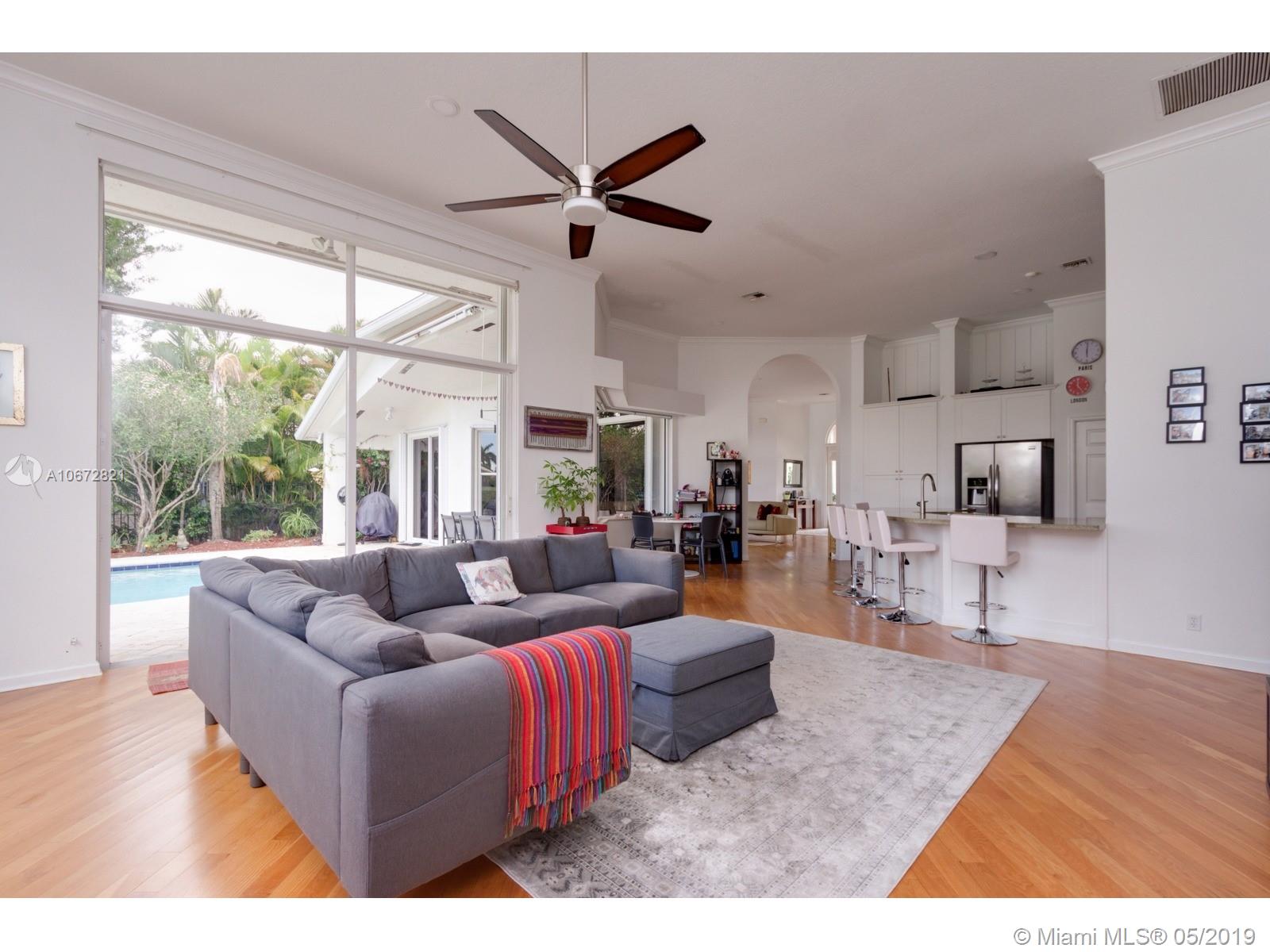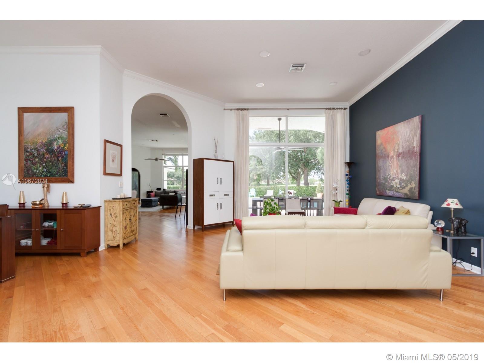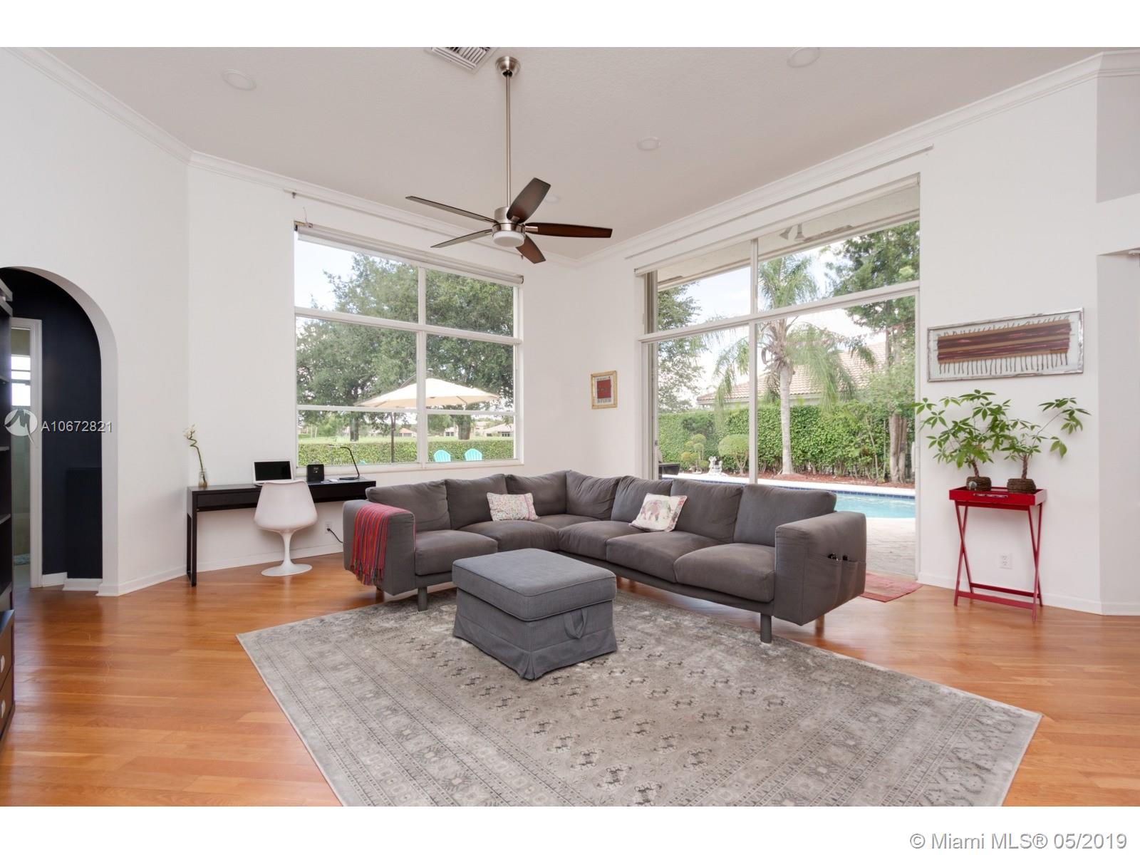 Captivating Luxury One-Story Single Family Home at Eagle Watch, Weston Hills Country Club. 4 bed 3 baths. Upon entering the house, enjoy the large spacious layout open concept with lots of natural light and high ceilings. Breathtaking views of Weston Hills golf course hole #2 and your private pool as it can be seen from almost anywhere in the home. Kitchen has large quartz counter-top and a little niche perfect for a breakfast table, with open windows to enjoy the view. Driveway entrance paved with brightening rustic Chicago brick. Hardwood floors and LED lights across the whole house. Renovated bathrooms. Recently replaced A/C units. Prestigious 3M Sun Control films on windows allow for utmost luminosity but trap heat for a cooler home. Remote control window shades in Family and Kitchen.