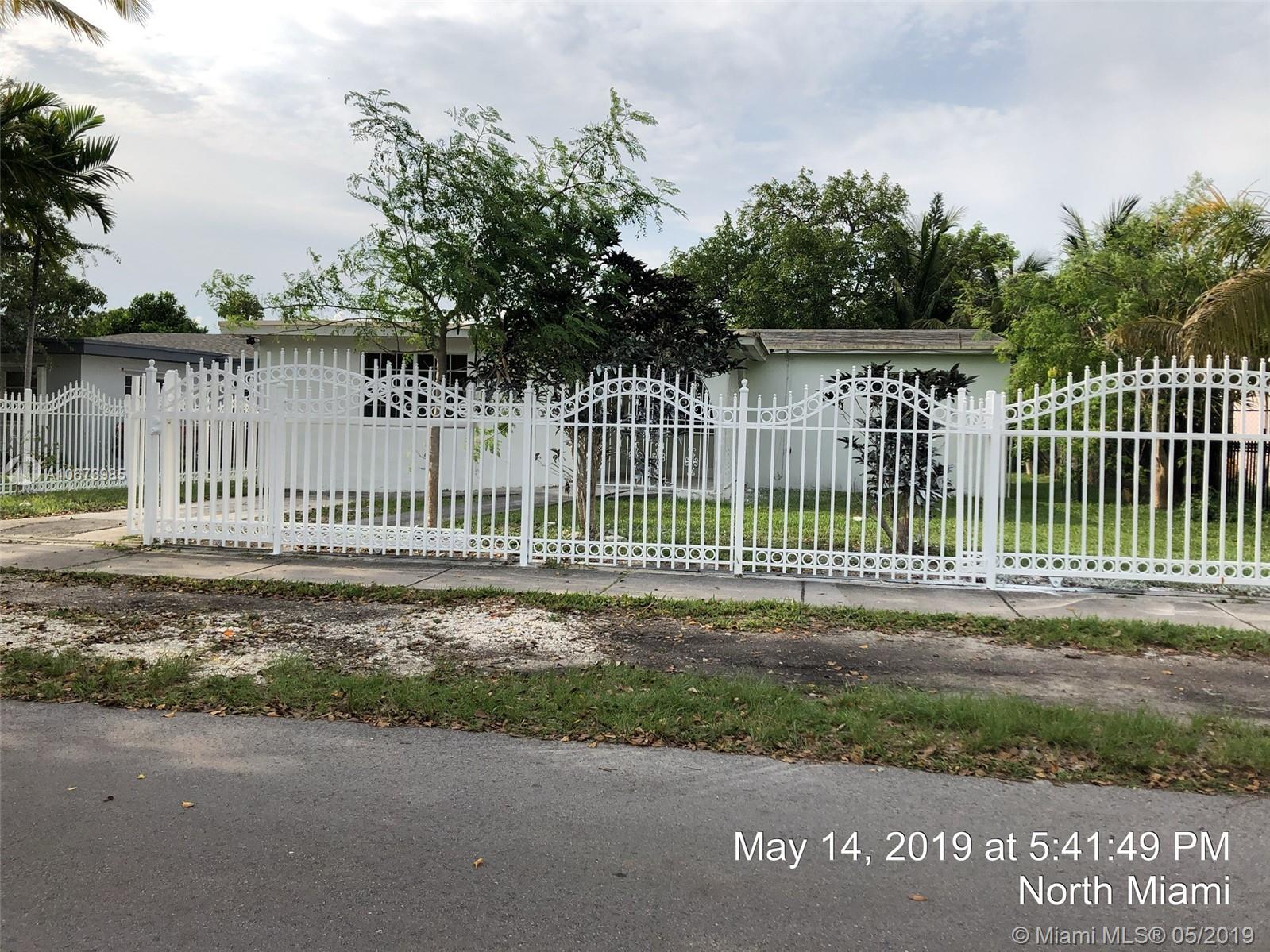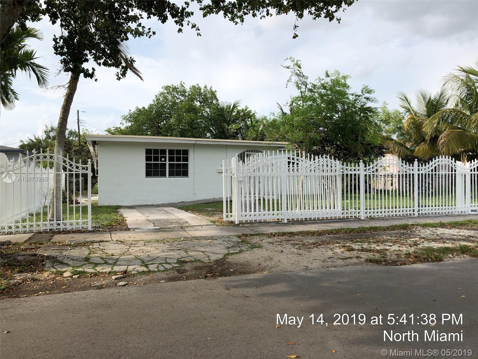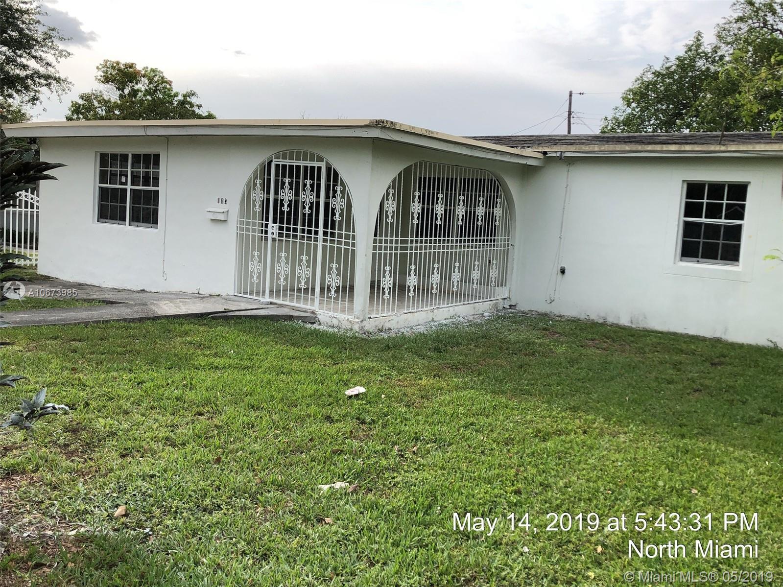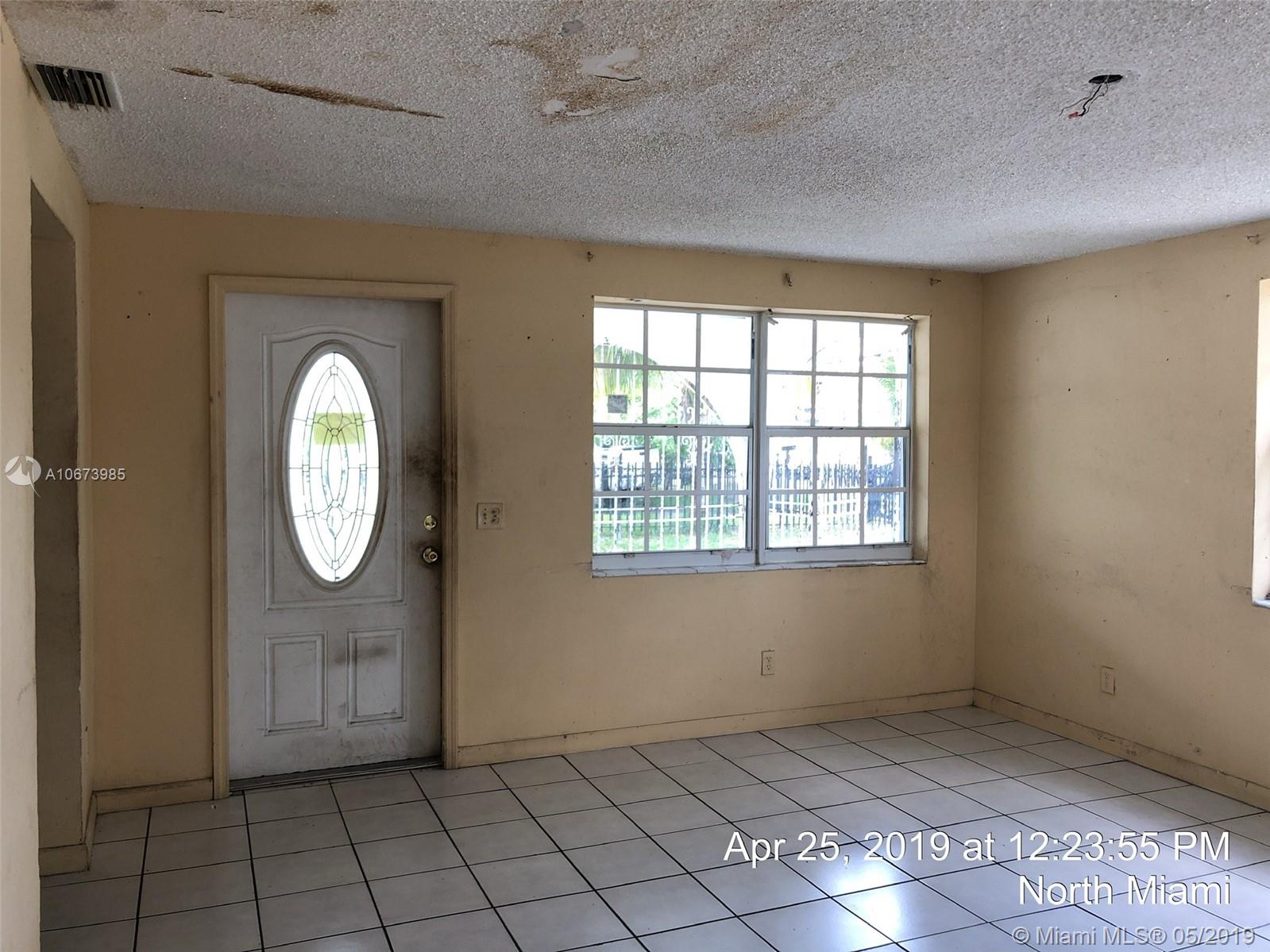 Investor' dreal- this is the one you have been looking for. Large bright, living room, tons of natural light. Dining area is open to kitchen leading to large garage accessed from rear. Beautiful yards, front porch, fully fenced. Fabulous location, quiet street, currently a 3 bed 2 bath and needs roof, AC, electrical, WDO treatment - cash buyers only due to condition. Sold AS-IS, buyer will be responsible for open permits and must obtain a Conditional Certificate of Re-Use from the City of North Miami. Call the city to learn the process before presenting offers. Offers considered after 5/23/19. IF THE PROPERTY IS ACTIVE IN THE MLS, IT IS ACTIVE. READ ATTACHMENTS AND BROKER REMARKS