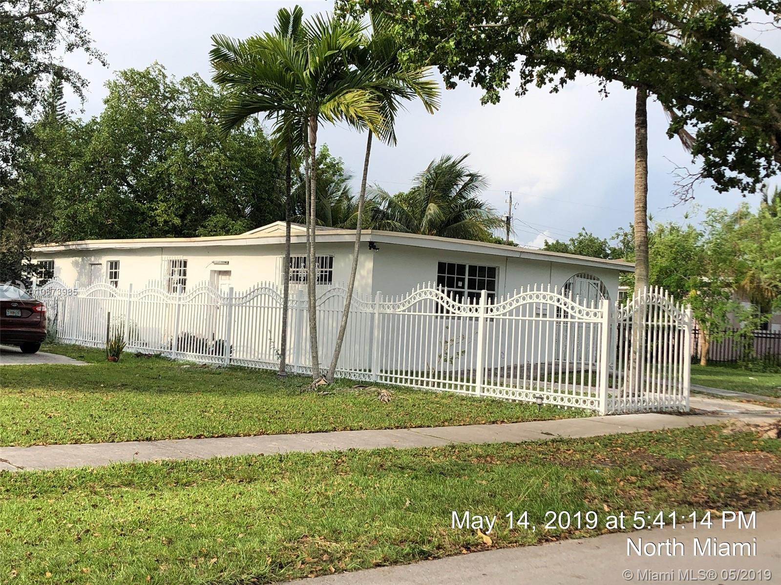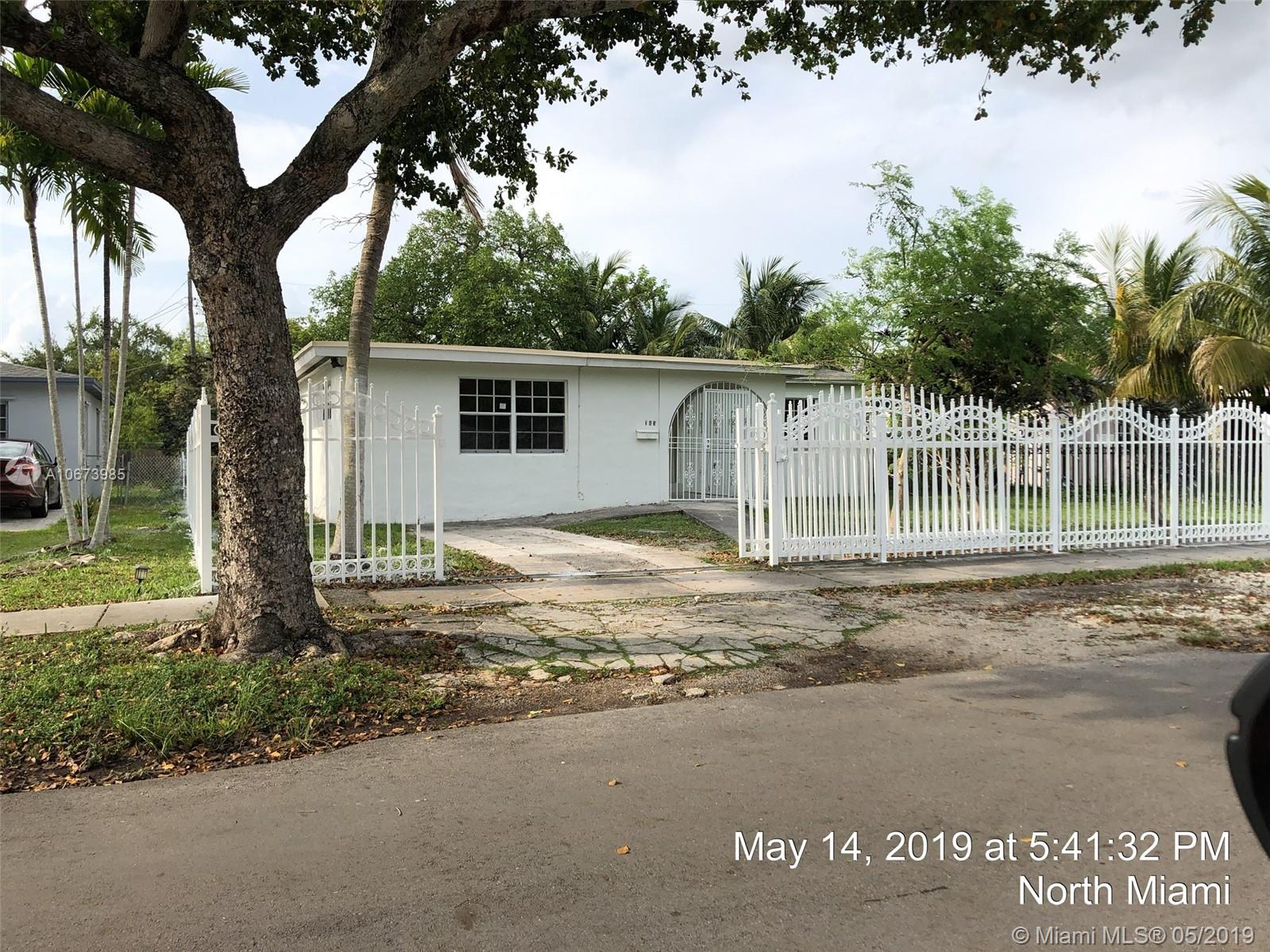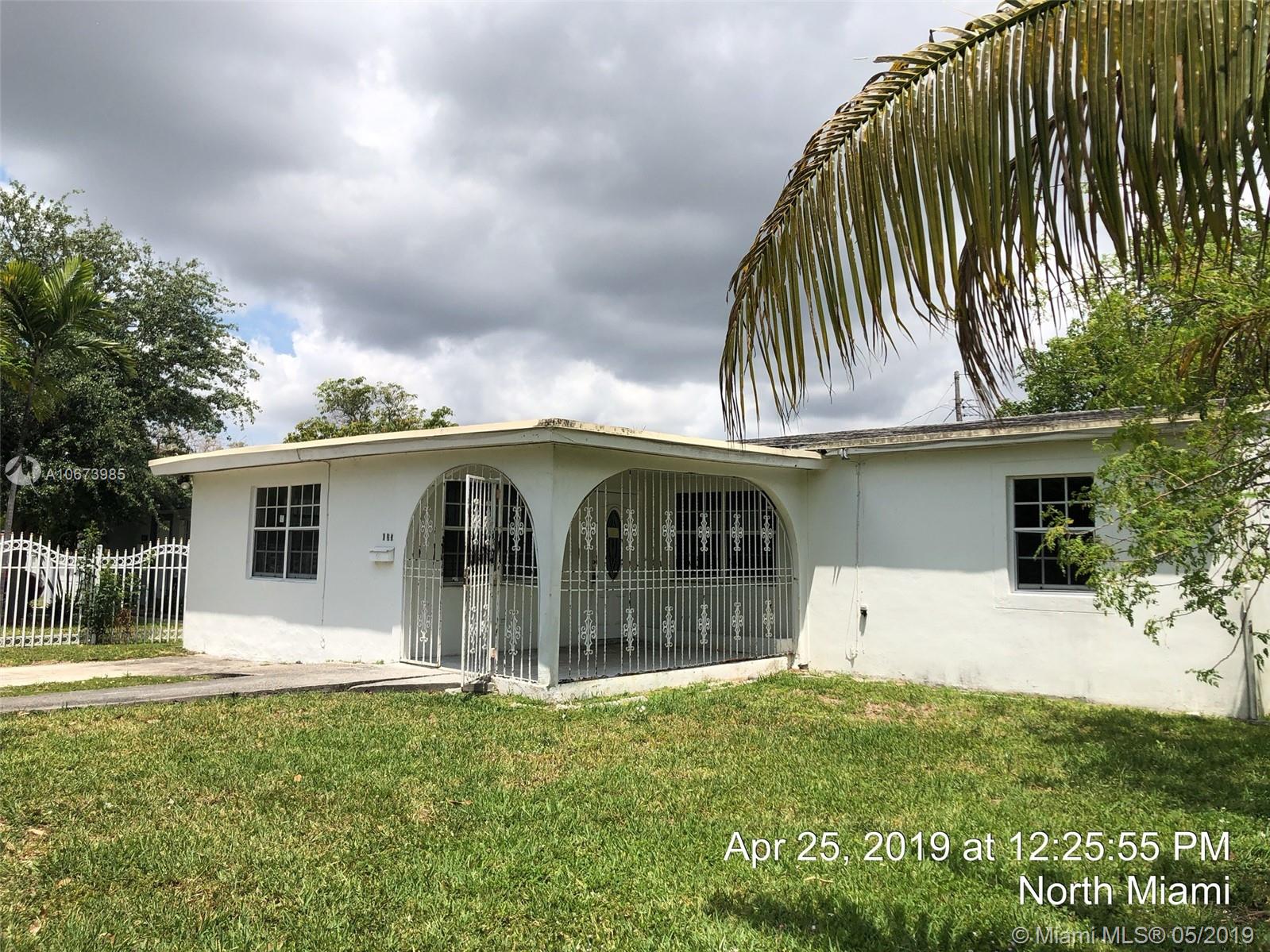 Investor' dreal- this is the one you have been looking for. Large bright, living room, tons of natural light. Dining area is open to kitchen leading to large garage accessed from rear. Beautiful yards, front porch, fully fenced. Fabulous location, quiet street, currently a 3 bed 2 bath and needs roof, AC, electrical, WDO treatment - cash buyers only due to condition. Sold AS-IS, buyer will be responsible for open permits and must obtain a Conditional Certificate of Re-Use from the City of North Miami. Call the city to learn the process before presenting offers. Offers considered after 5/23/19. IF THE PROPERTY IS ACTIVE IN THE MLS, IT IS ACTIVE. READ ATTACHMENTS AND BROKER REMARKS