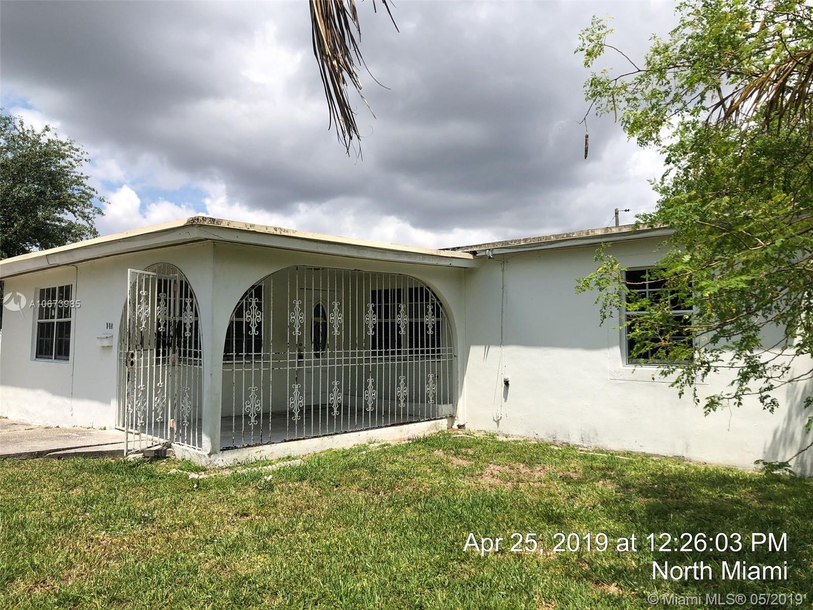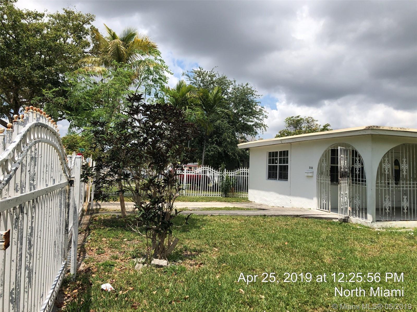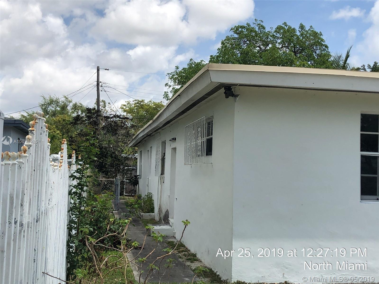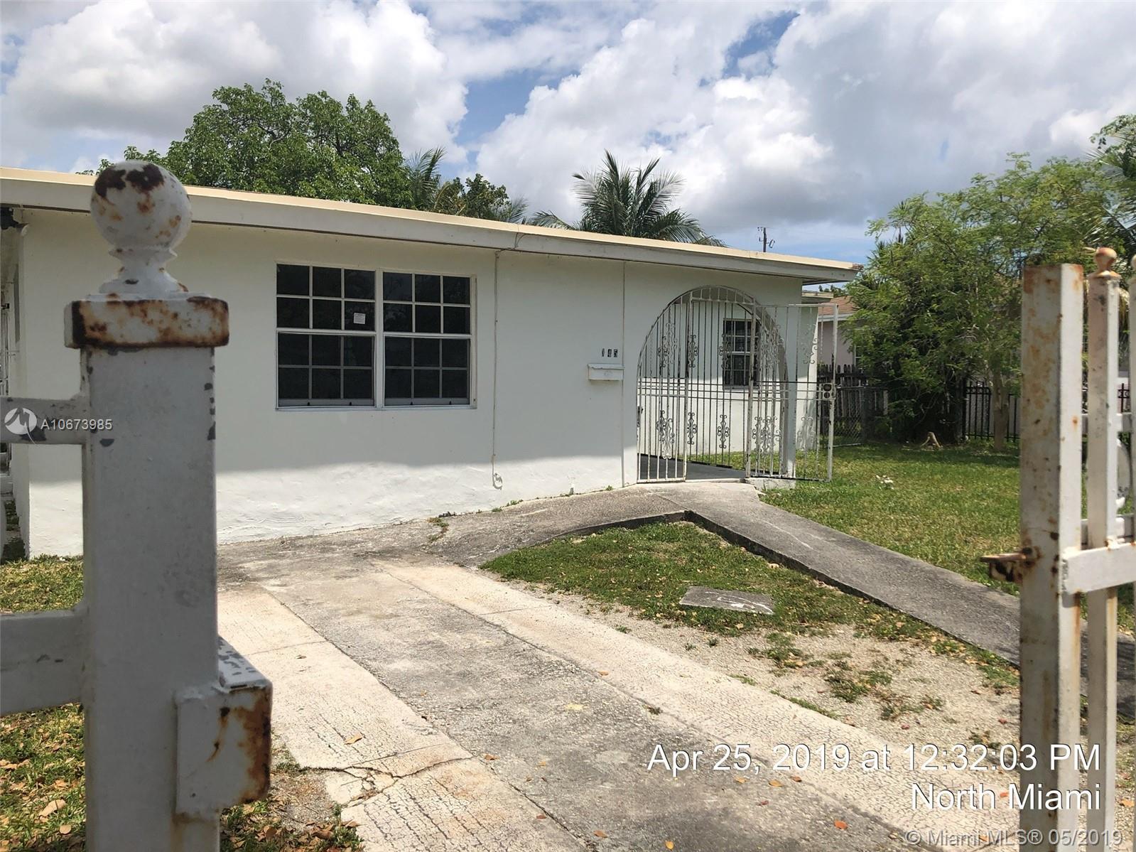 Investor' dreal- this is the one you have been looking for. Large bright, living room, tons of natural light. Dining area is open to kitchen leading to large garage accessed from rear. Beautiful yards, front porch, fully fenced. Fabulous location, quiet street, currently a 3 bed 2 bath and needs roof, AC, electrical, WDO treatment - cash buyers only due to condition. Sold AS-IS, buyer will be responsible for open permits and must obtain a Conditional Certificate of Re-Use from the City of North Miami. Call the city to learn the process before presenting offers. Offers considered after 5/23/19. IF THE PROPERTY IS ACTIVE IN THE MLS, IT IS ACTIVE. READ ATTACHMENTS AND BROKER REMARKS