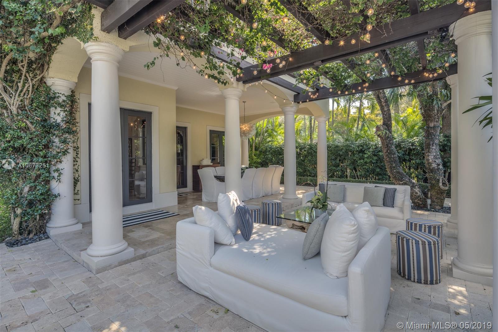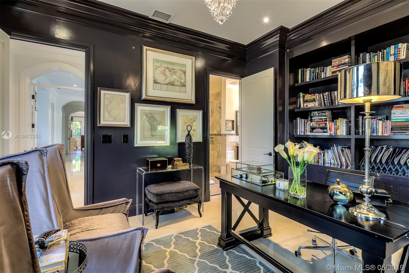 Elegant two story home perfectly situated between downtown Coral Gables, Coconut Grove and South Miami. Features 6 bedrooms, 5.5 baths, two car garage. Pool with Jacuzzi spa, two large terraces and patio pergola. Home fully gated with video surveillance system, pool heater, generator, double AC Units, top of the line finishes including 2 x 2 limestone floors, gourmet island kitchen with custom solid wood cabinets, granite counter tops, gas range, and appliances by Subzero and Wolf. Impact french doors and casement windows. Professional exterior landscape design. All interior design and décor by Fine Line Furniture. No detail has been left out of this stunning, perfectly maintained, one of a kind home.