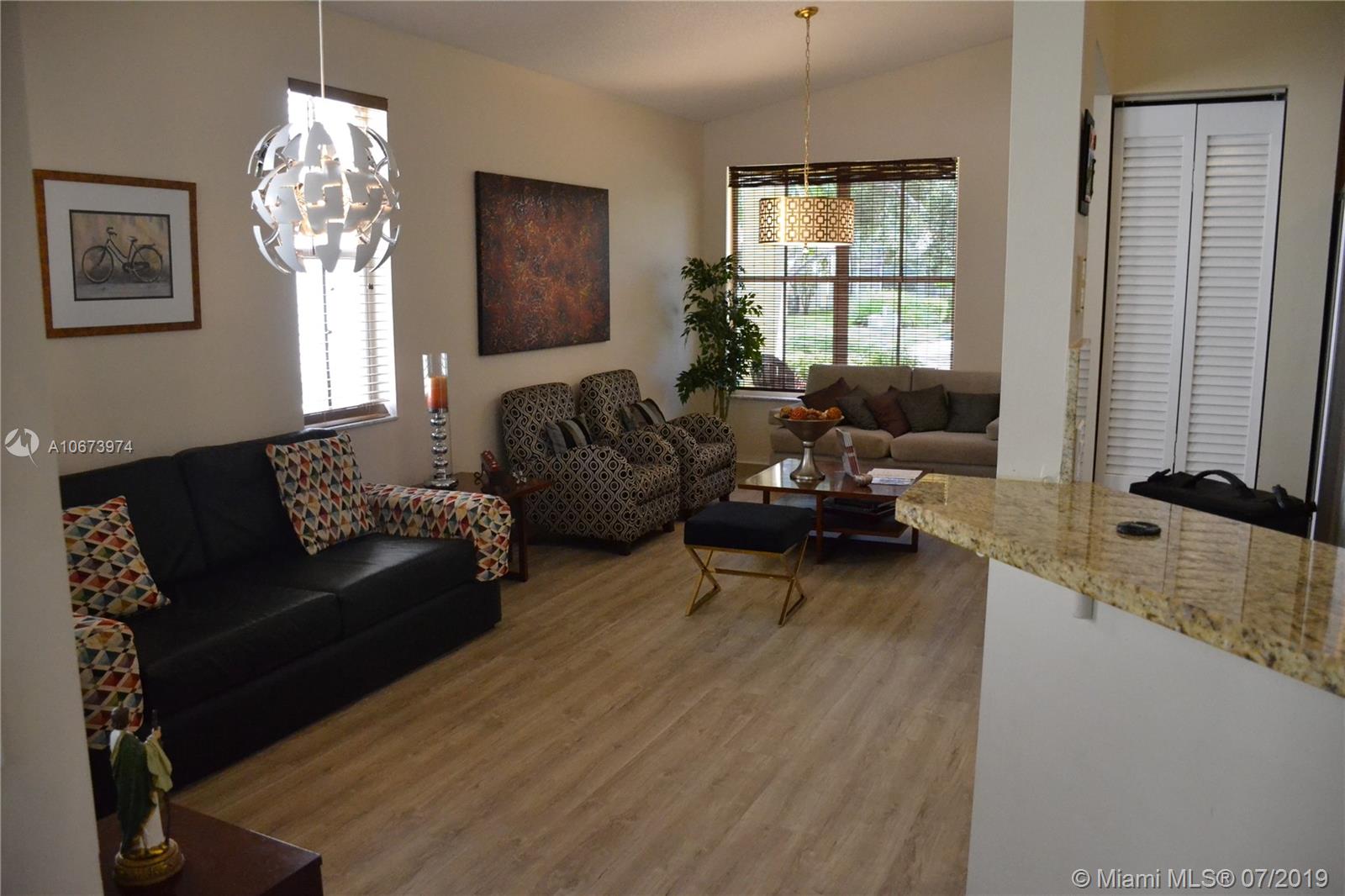 Location, Location and great schools too! This amazing 3 bedroom, 2 bath home is waiting for you and your family. Updated kitchen and baths. RECENTLY INSTALLED BRAND NEW VINYL floors throughout with lots of natural light. Hurricane shutters and french doors to screen patio, private yard and hot tub. 2-car garage area has additional storage closets. Living room and dining room chandilers do not convey. This home is perfect for any family.