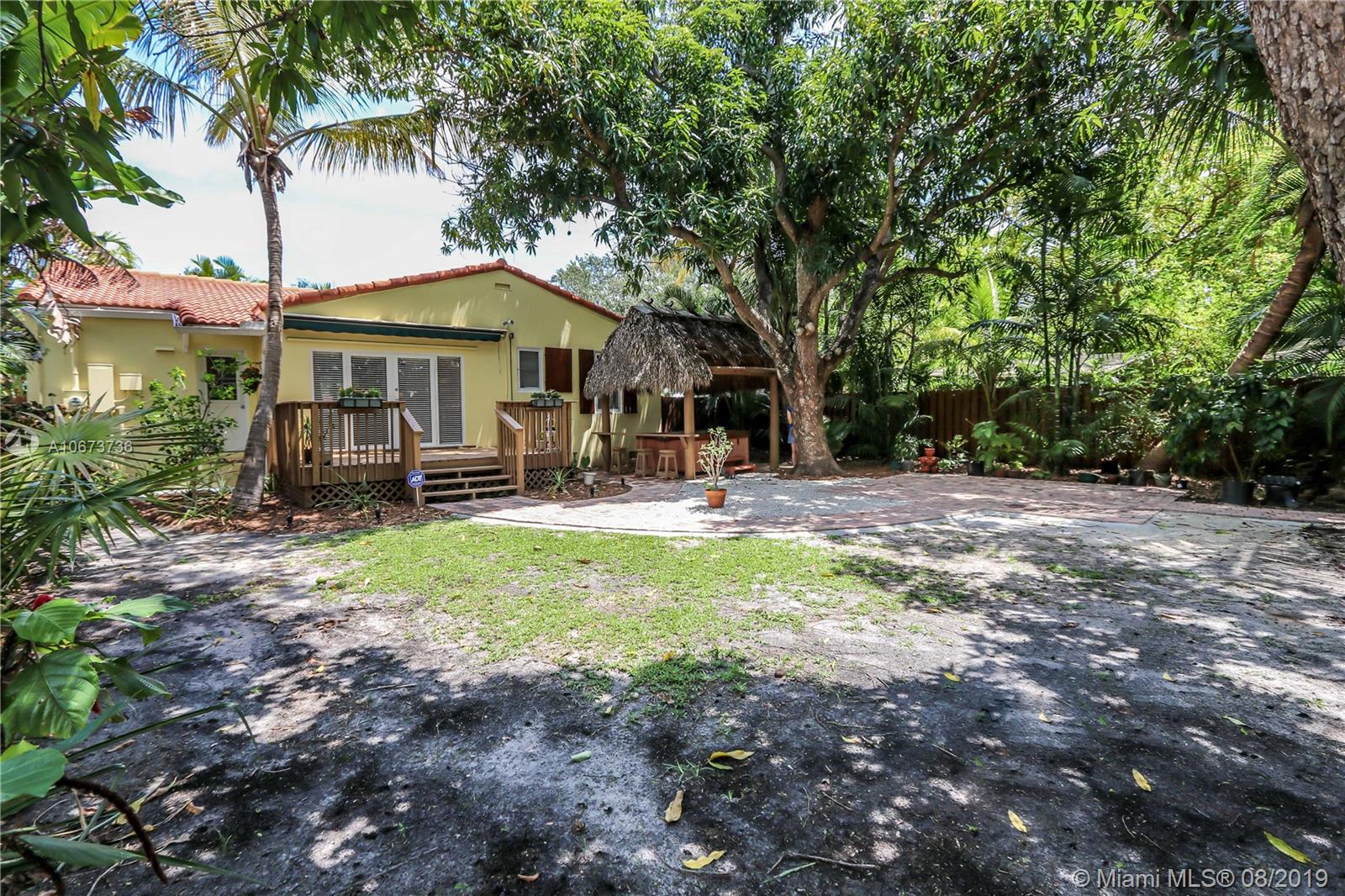 Charming 3 bed/2 bath/1 car garage in East Hollywood. Original refinished Oak Wood floors & Dade County Pine Wood floors in kitchen. LG stainless steel appliances: double door fridge, gas stove, electric oven & microwave. Laundry room, wide open over-sized living room & formal dining room w/Chicago brick flooring. Two built-in shelves in living room. Master bedroom: Lrg bathroom w/pantry & walk-in closet. Blinds on all windows. Outside-perfect for entertaining incl: wood deck, Gazebo & Jacuzzi tub (newer pump). Great size fenced in backyard. Room for a pool. Beautiful tropical foliage;1 banana, 2 mango & many pineapple plants. Front covered pavered patio. Termite service maintenance. Tankless gas water heater. New a/c installed 5/19. Minutes to Downtown Hollywood, Young Cir & beach.
