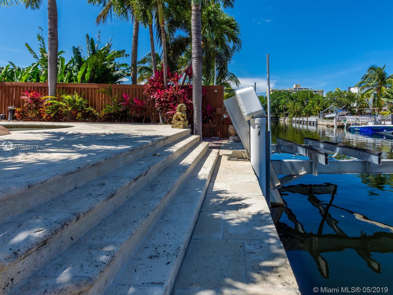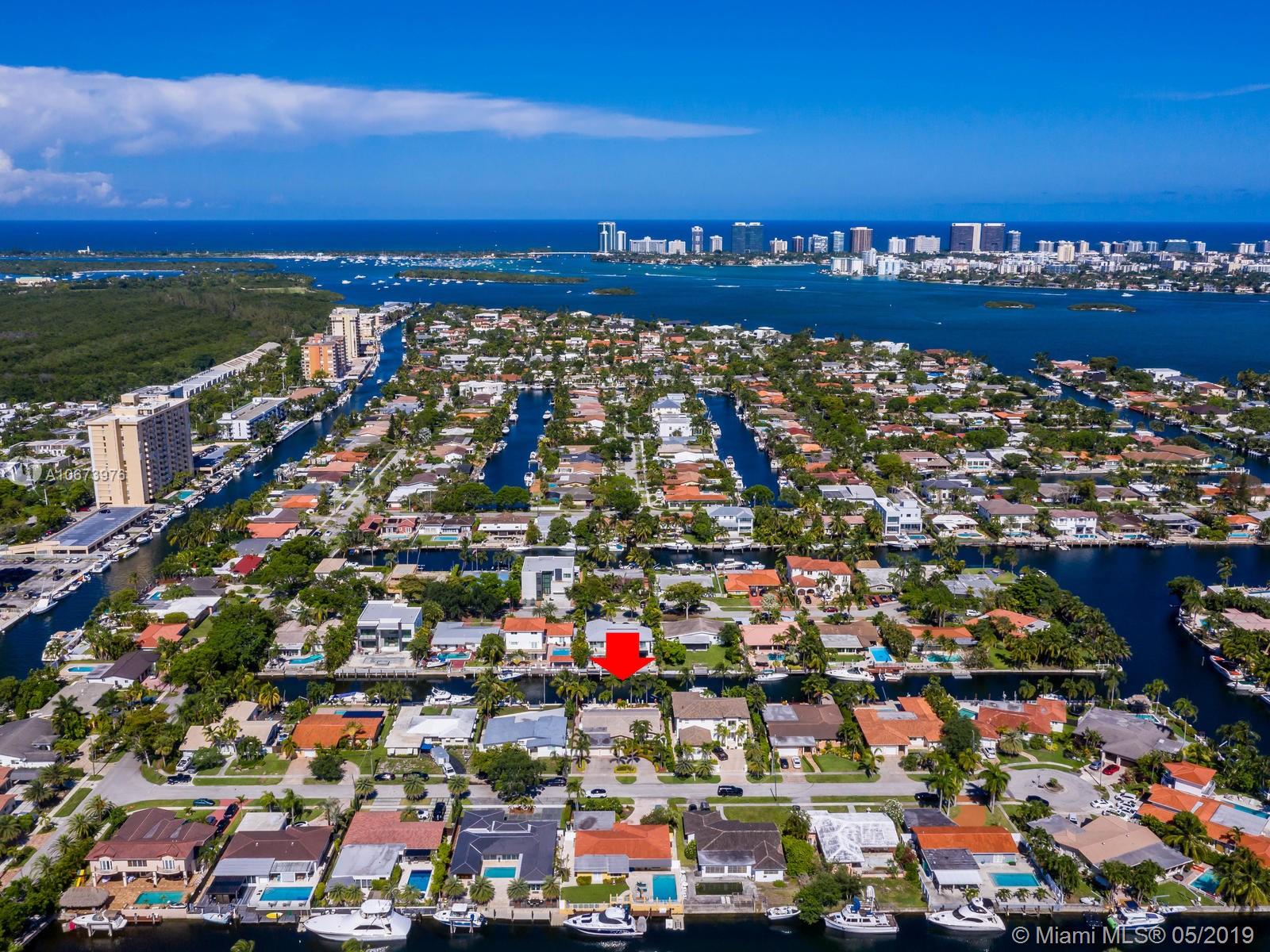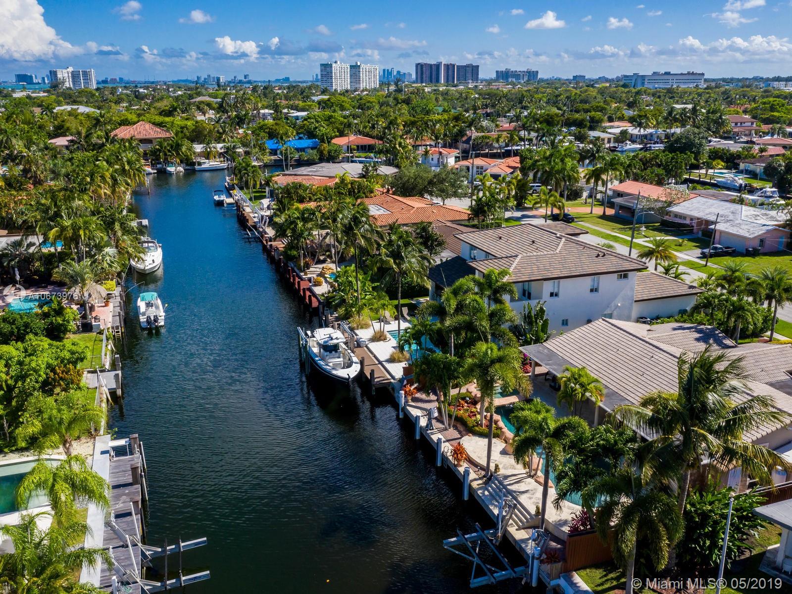 Stunning waterfront home located on a quiet cul-de-sac in the exclusive 24 hour guarded Keystone Point. This beautiful 3 bed/2.5 bath + den home features impact windows/sliding doors to provide maximum light with views of pool and waterways throughout. Inside you will find an open gourmet kitchen with plenty of counter space featuring Sub-Zero and Wolf brand appliances. Home also includes HD camera system, air conditioned 2-car garage, newly installed purified water softener system and california closets. Step outside and enjoy the large covered patio overlooking a one of a kind oversized custom pool. This boater’s dream home offers 75 ft of dock space and includes a boat lift on an ocean access canal with no bridges to the bay. Close to Bal Harbour, beaches and much more.