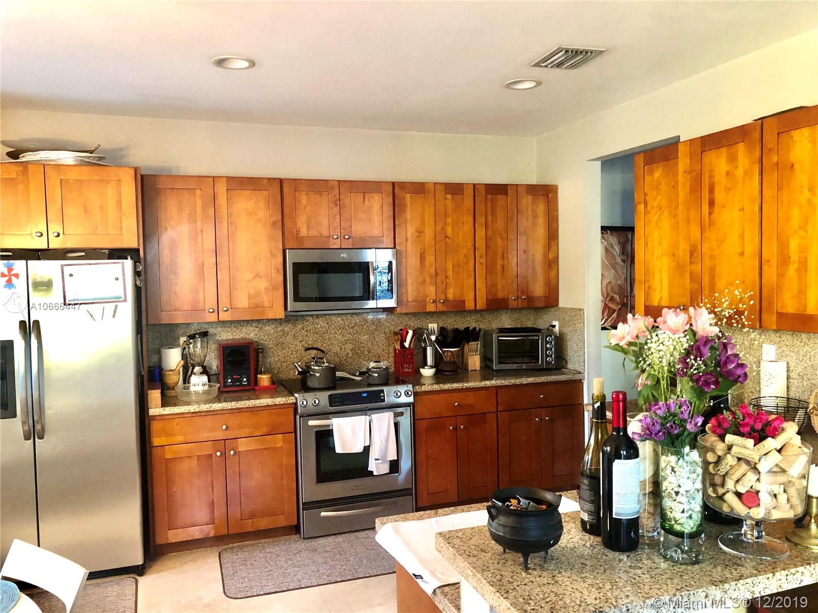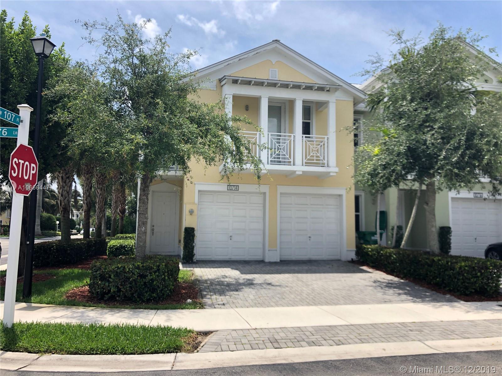Beautiful corner unit at The Reserve at Doral East. It has 4 bedrooms, 3.5 bathrooms, spacious kitchen with stainless steel appliances. All bedrooms are conveniently located in the second floor. Master Bedroom has a splendid balcony. All rooms have wood built-in closets. Tile on the first floor and carpet on the second floor. Spacious backyard. Community offers great amenities including; gym, swimming pool and an elegant clubhouse, kids playground & mini soccer field. It is conveniently located in an exclusive area; minutes away from local restaurants, supermarkets, entertainment and more. Fast access to FL's Turnpike & 826